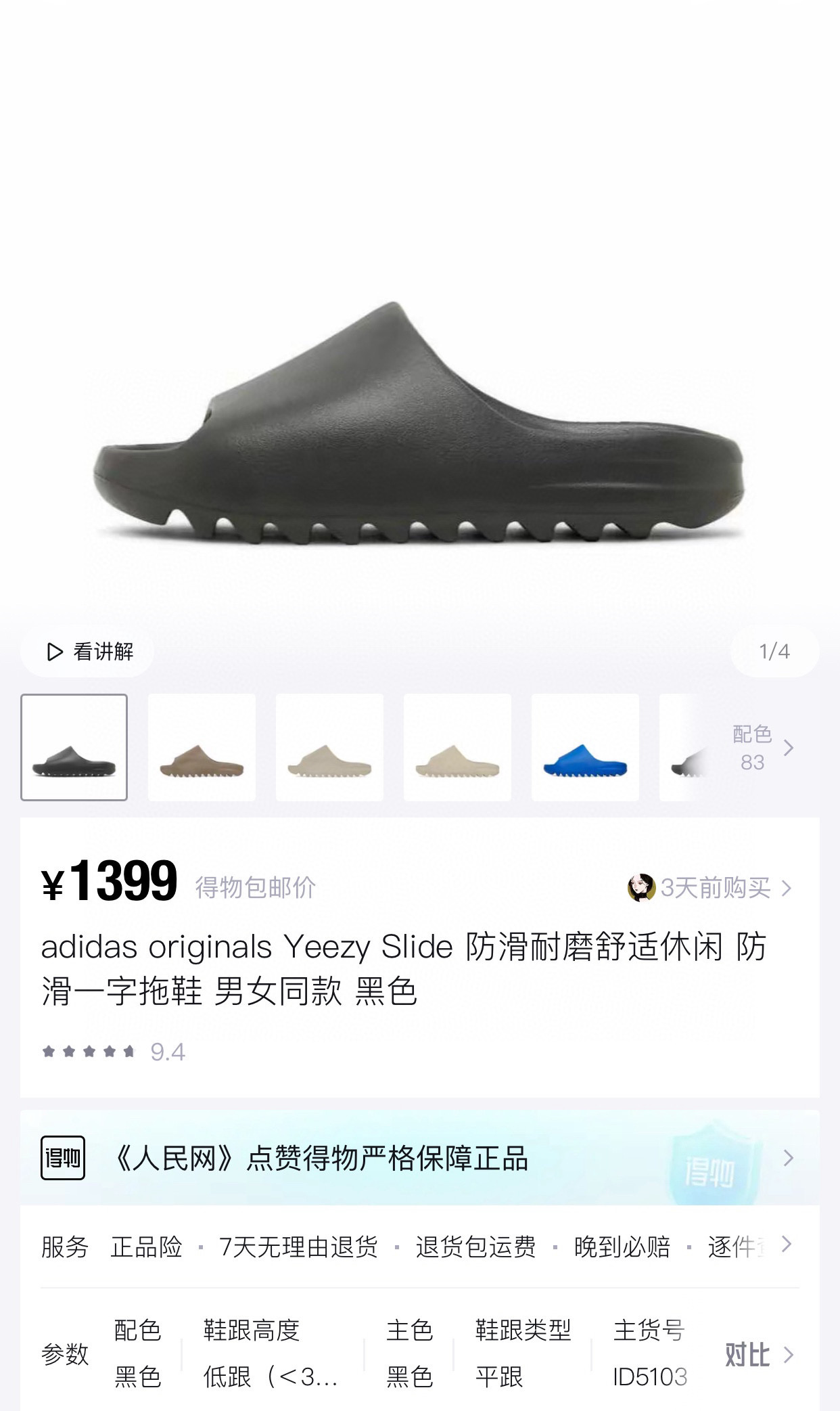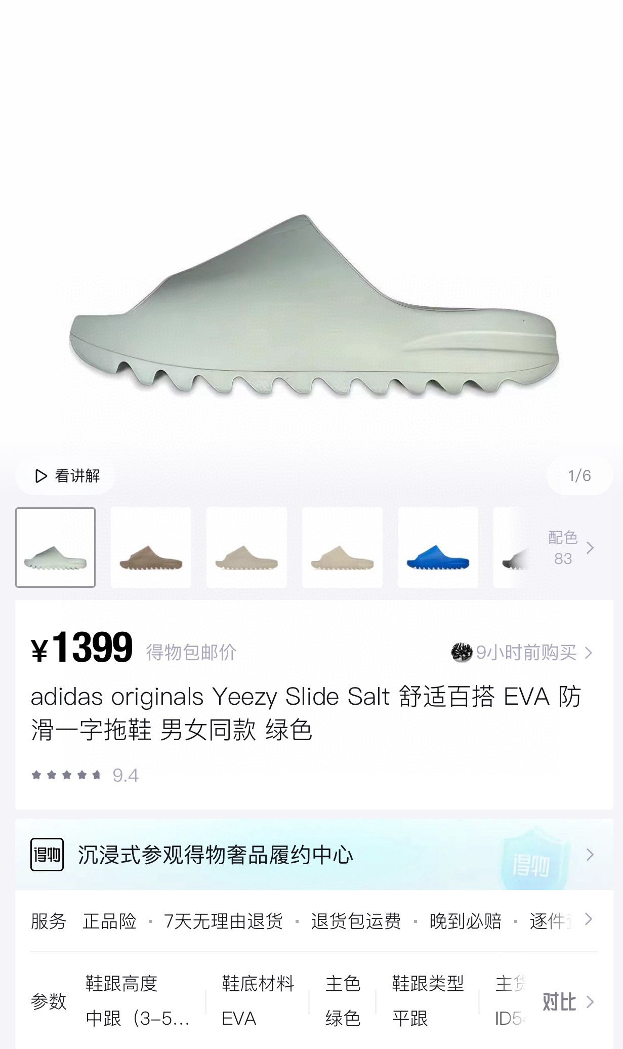 拍大一码!!光面和雾面一共22个配色! AD Yeezy 静音eva经典一字拖鞋 男女同款