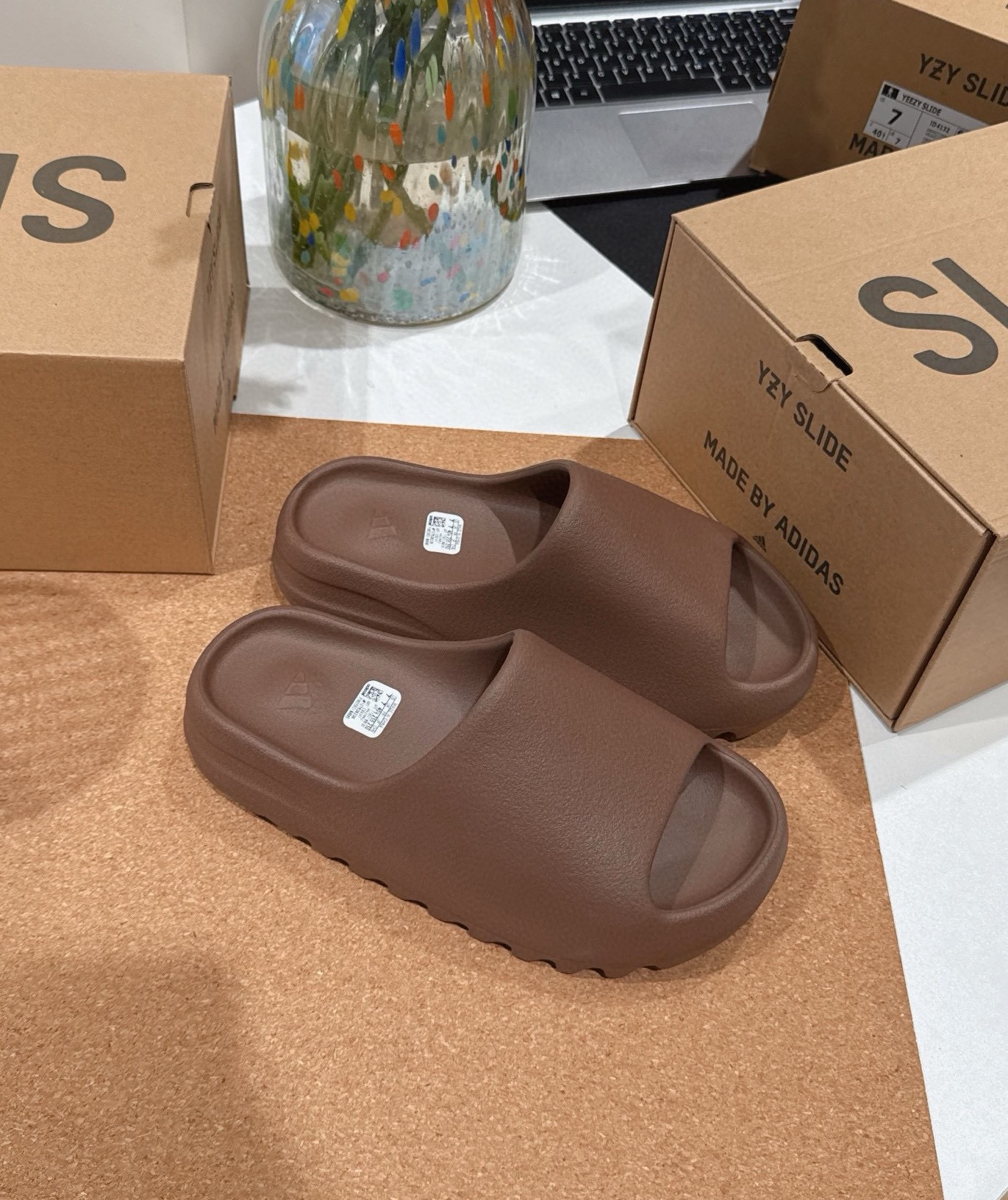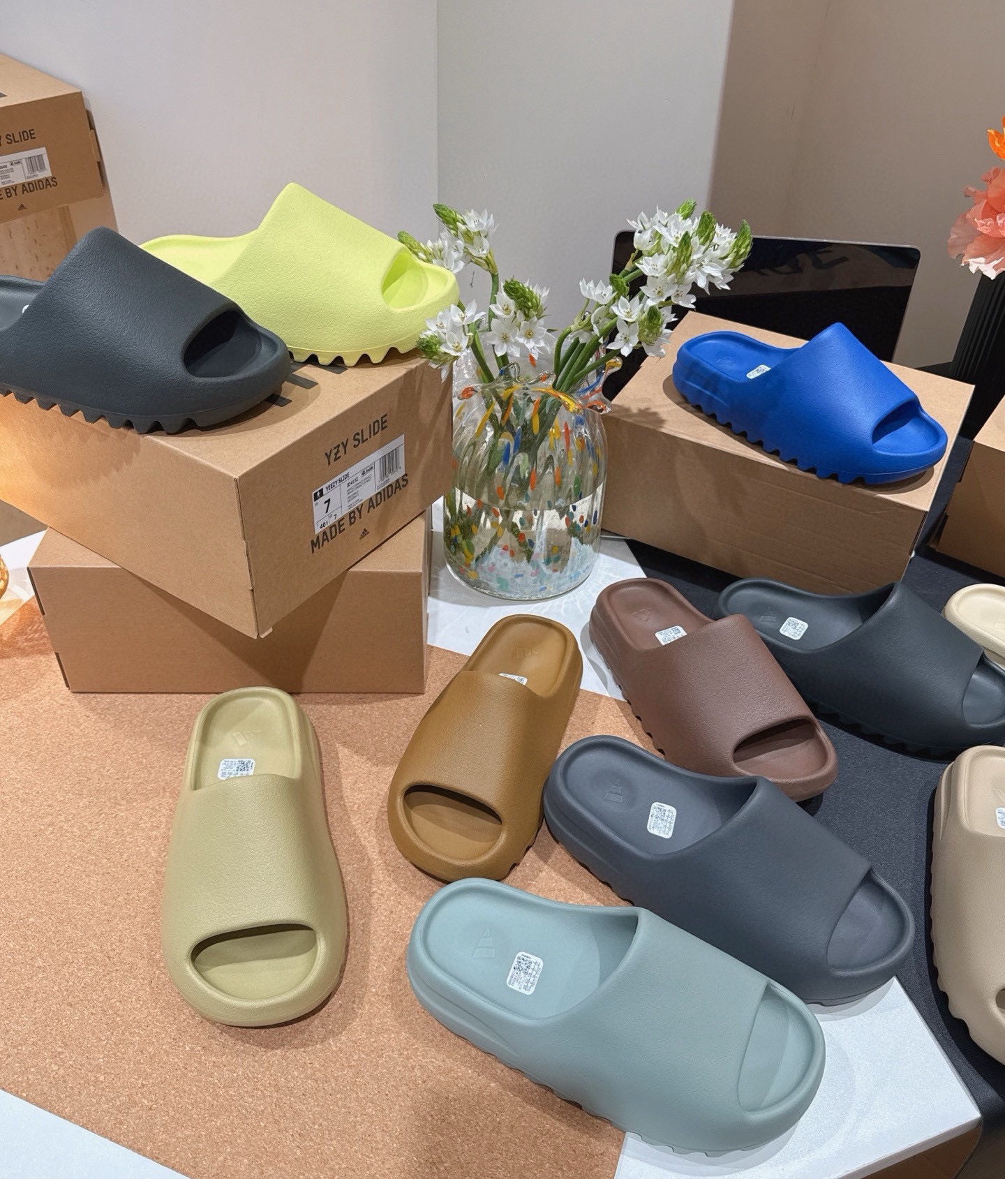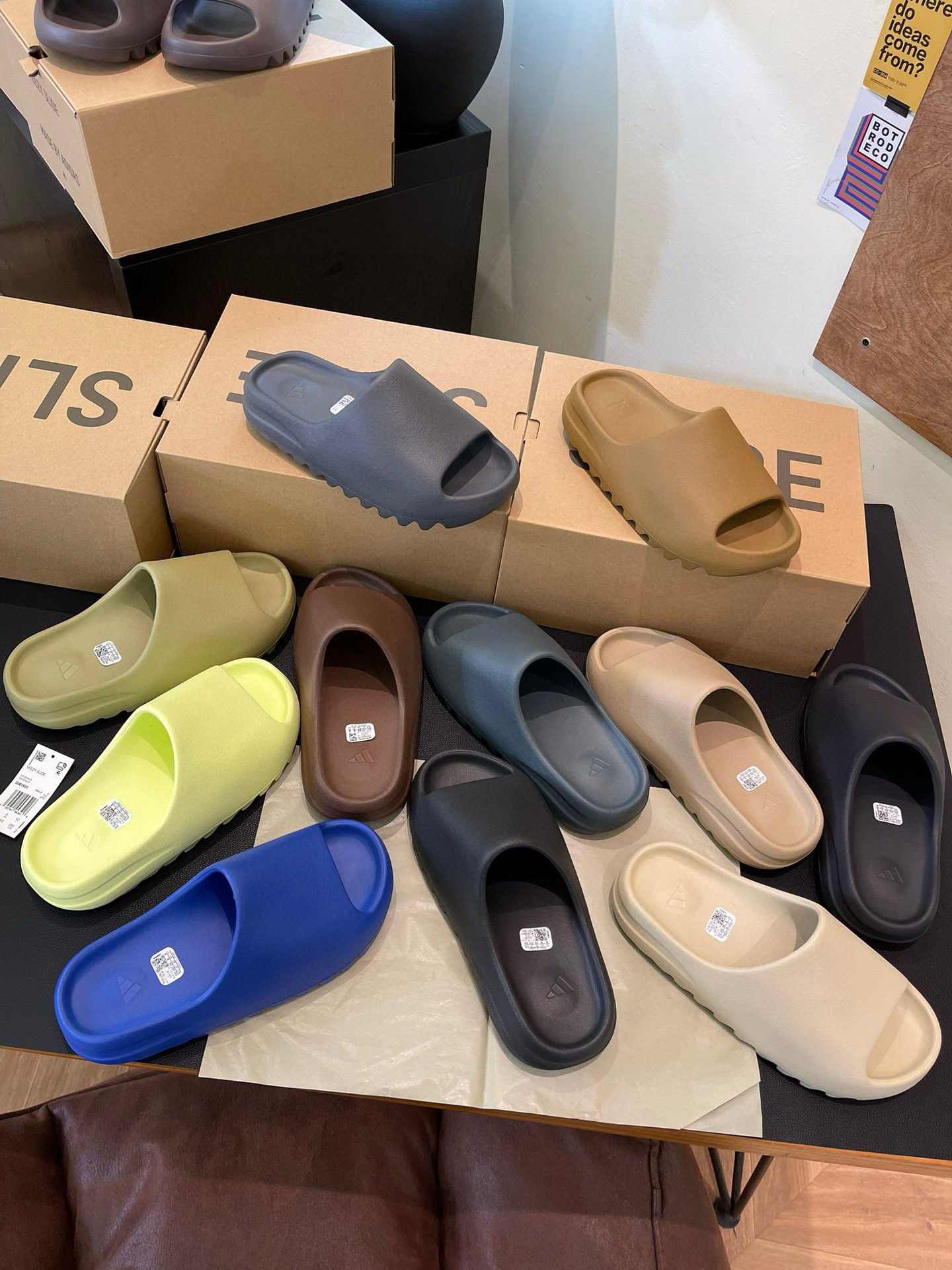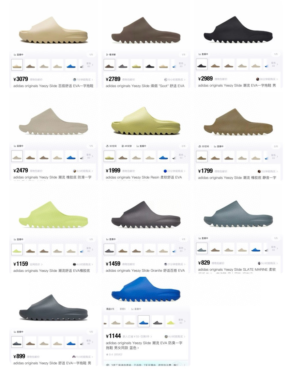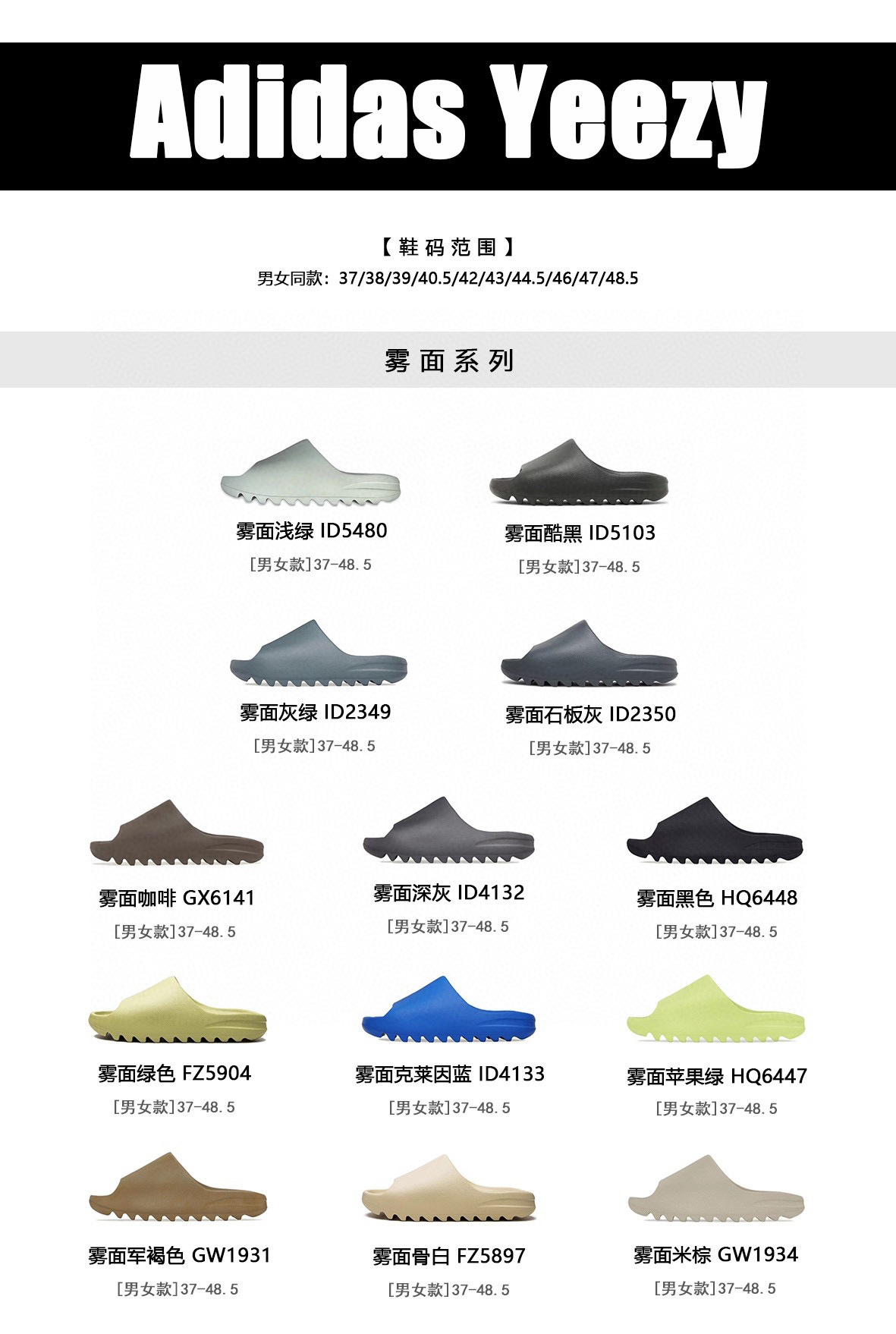 光面和雾面一共22个配色! AD Yeezy 静音eva经典一字拖鞋 男女同款