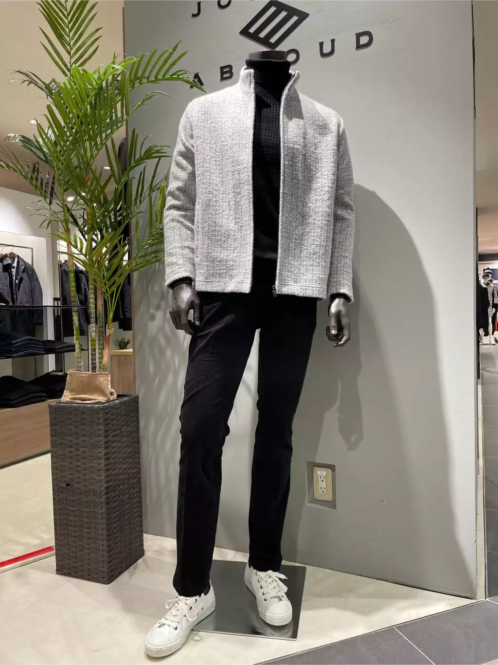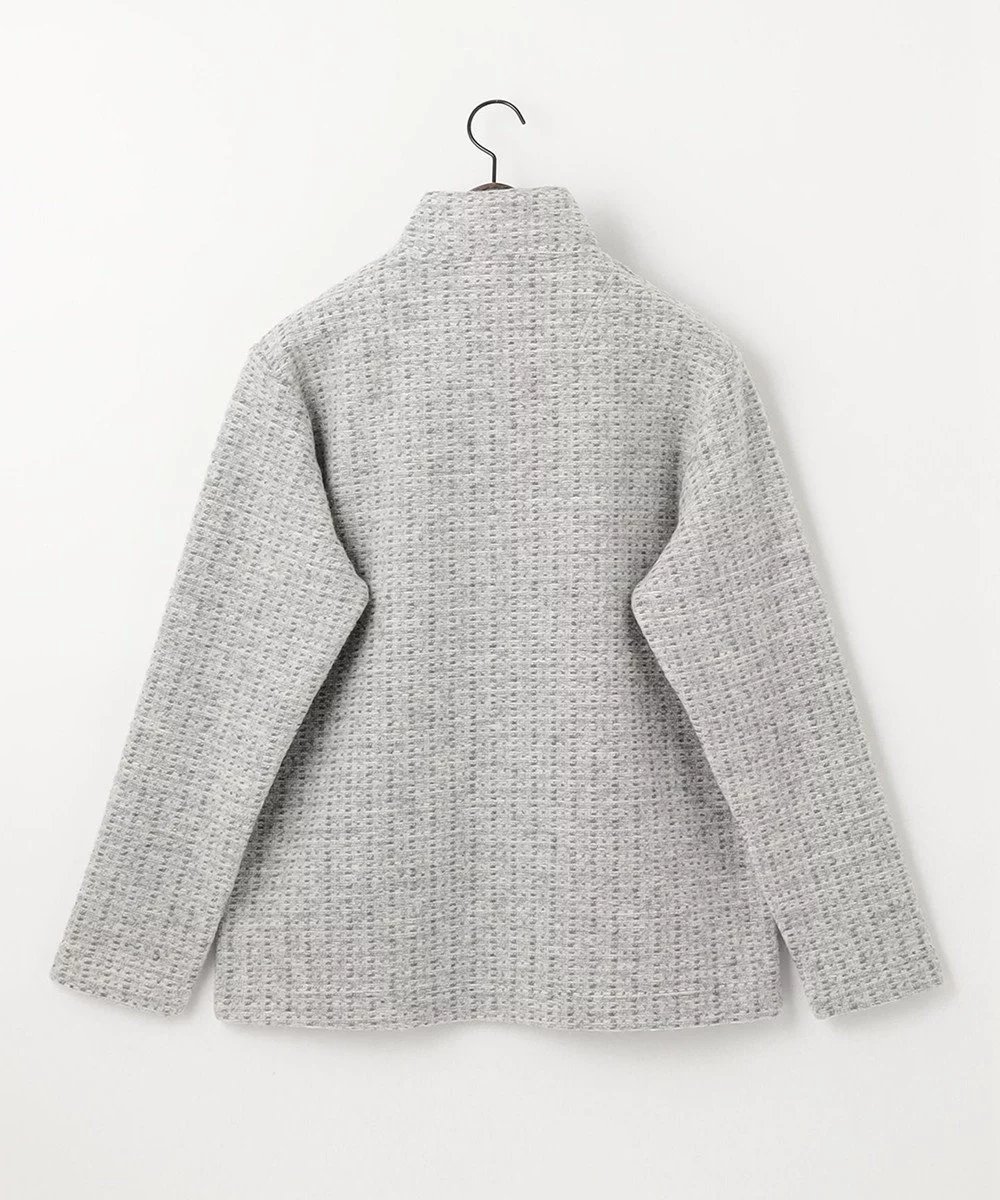 羊毛混纺平纹针织面料制成的拉链夹克衫,采用回缝和拉毛工艺制成蟒蛇皮。 重量轻,保温性好,采用三色纱线提花针织,颜色深。 背面面料平整,袖子易穿,穿着舒适。 此外,衣领和面料的衬里均采用 100% 纯棉平纹针织面料,手感舒适。