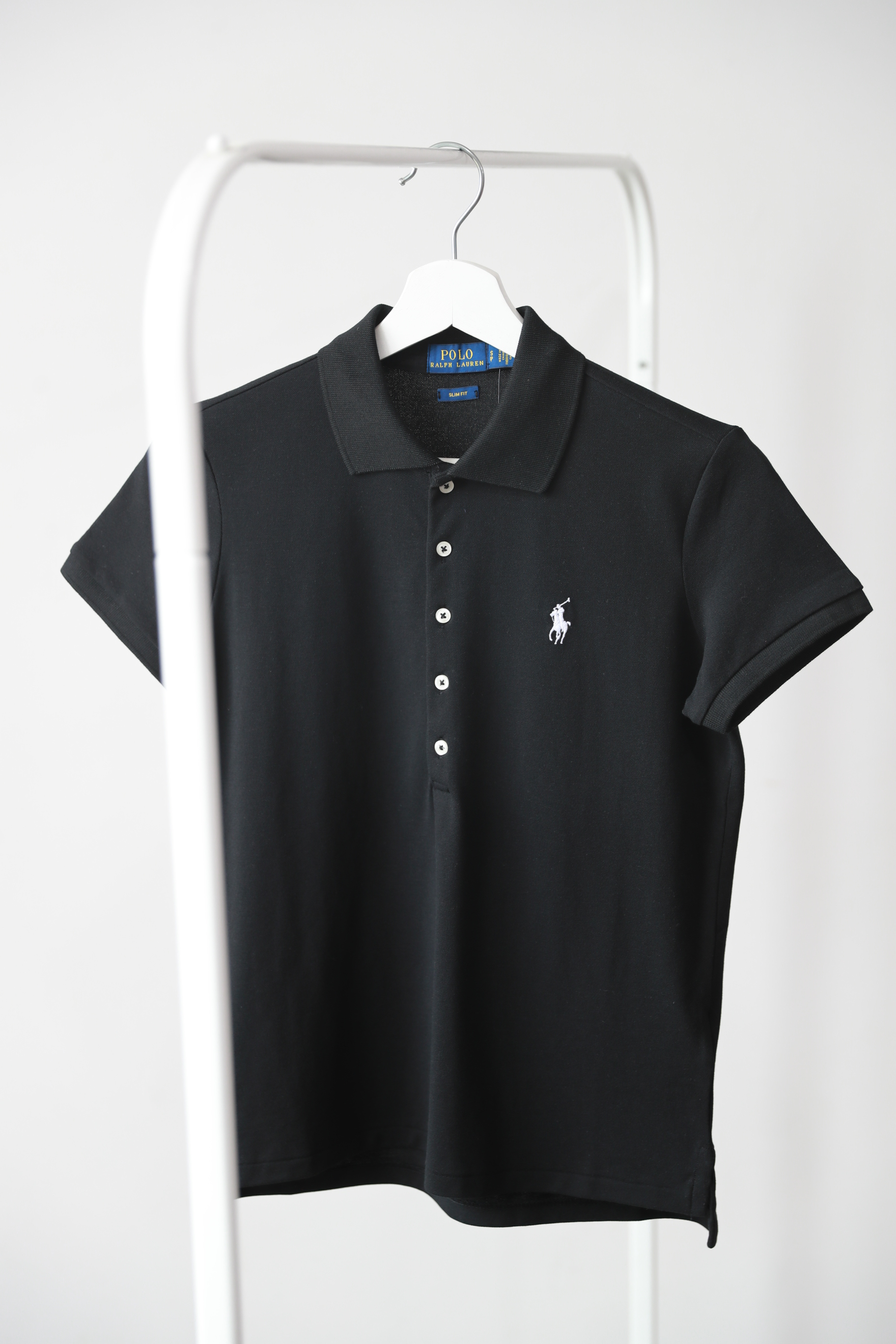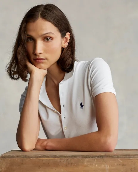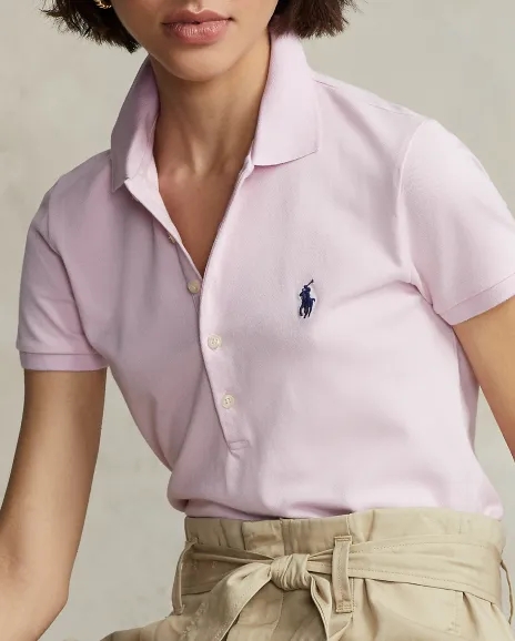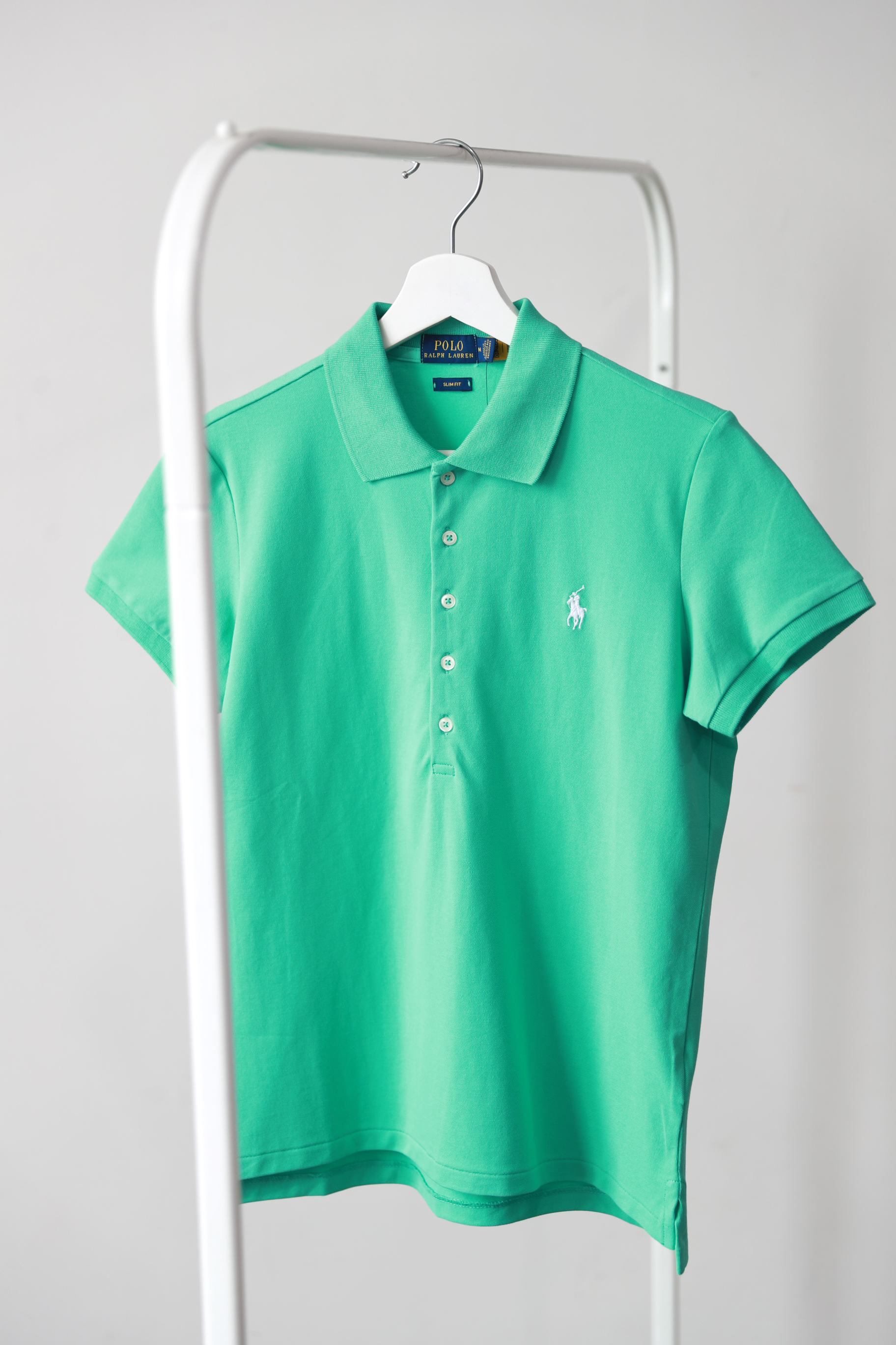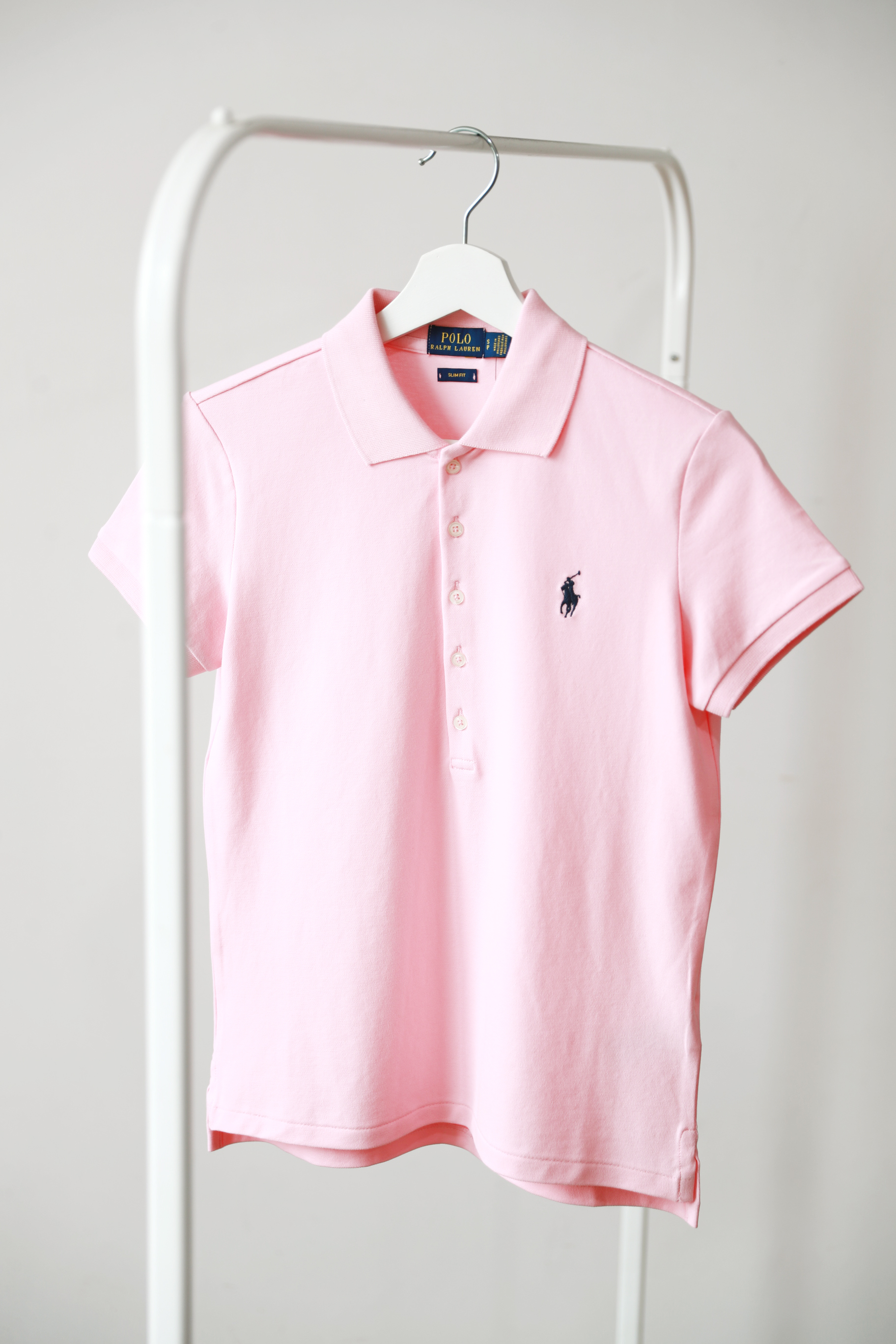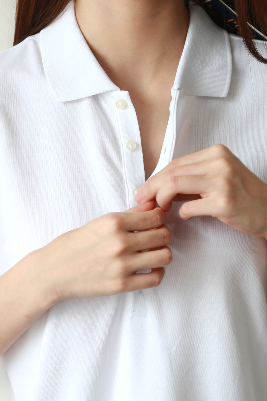 清冷感polo衫。r家小标刺绣粒扣设计慵懒显瘦翻领polo衫女J051630