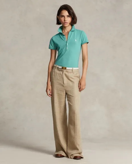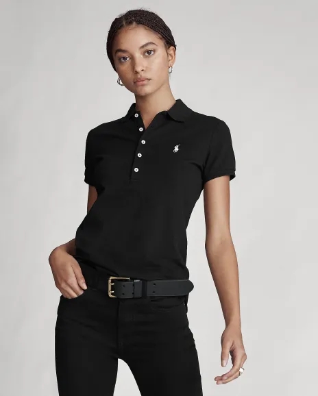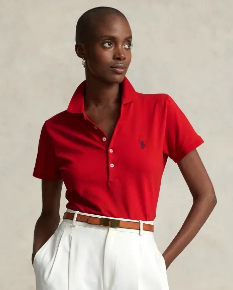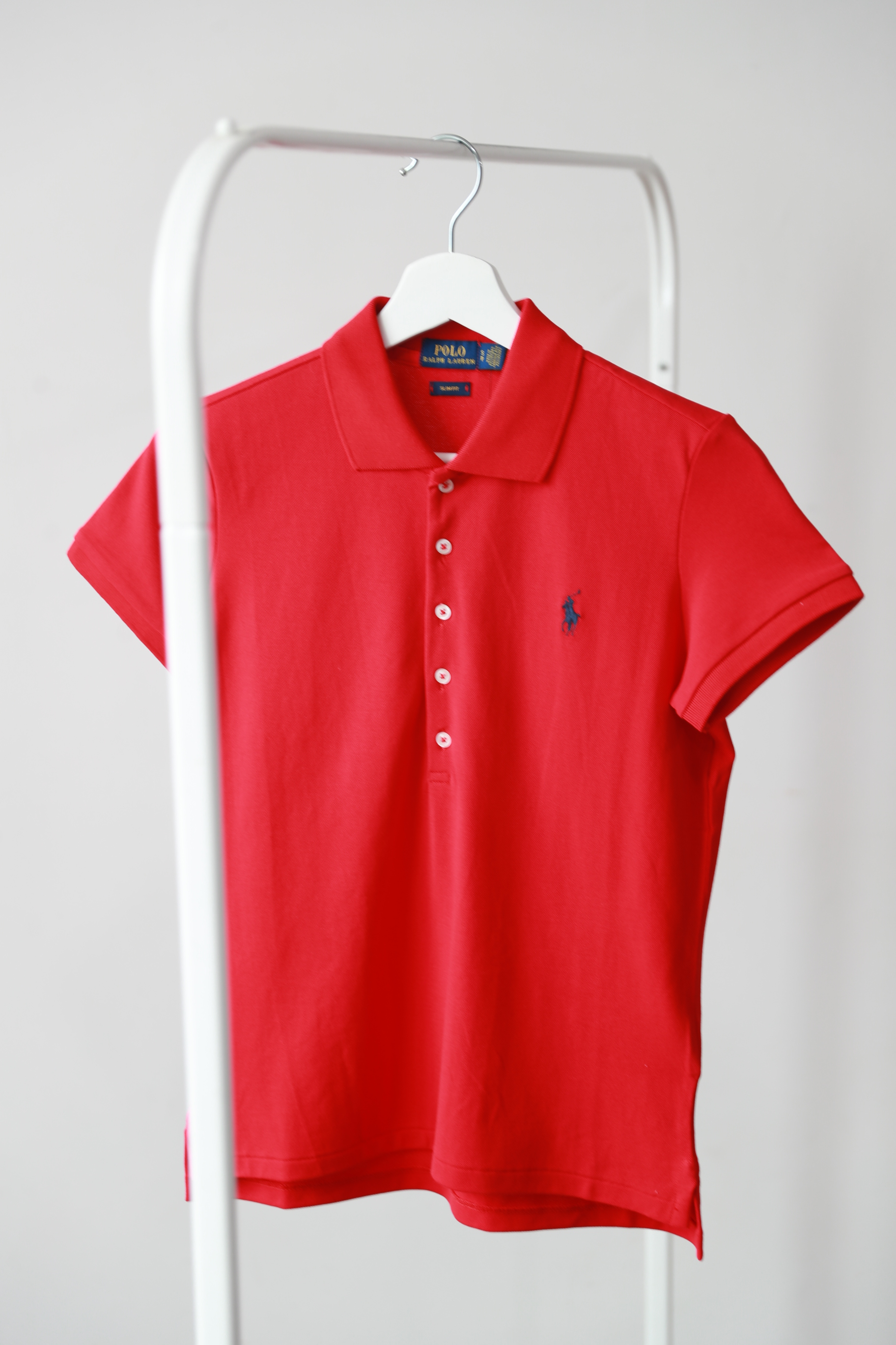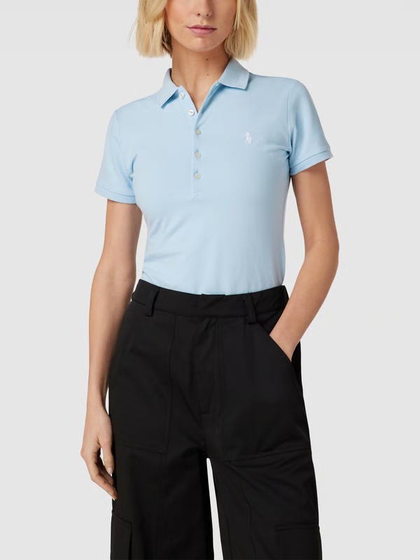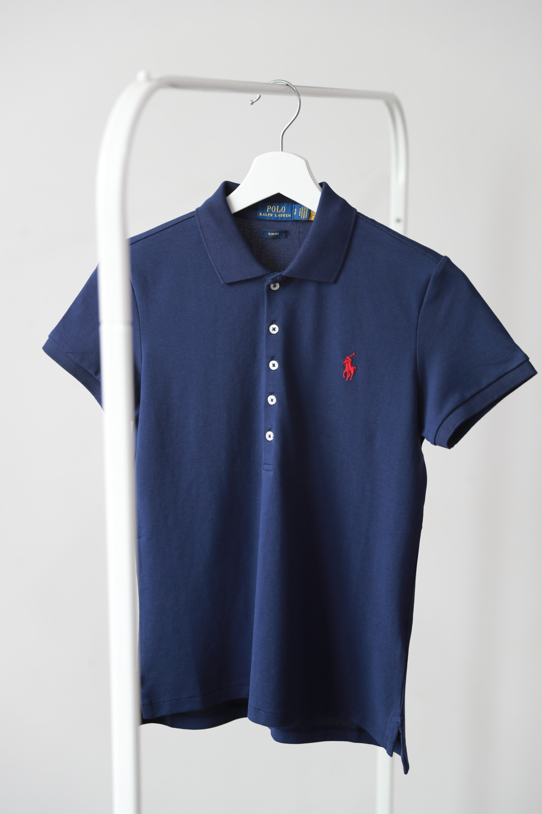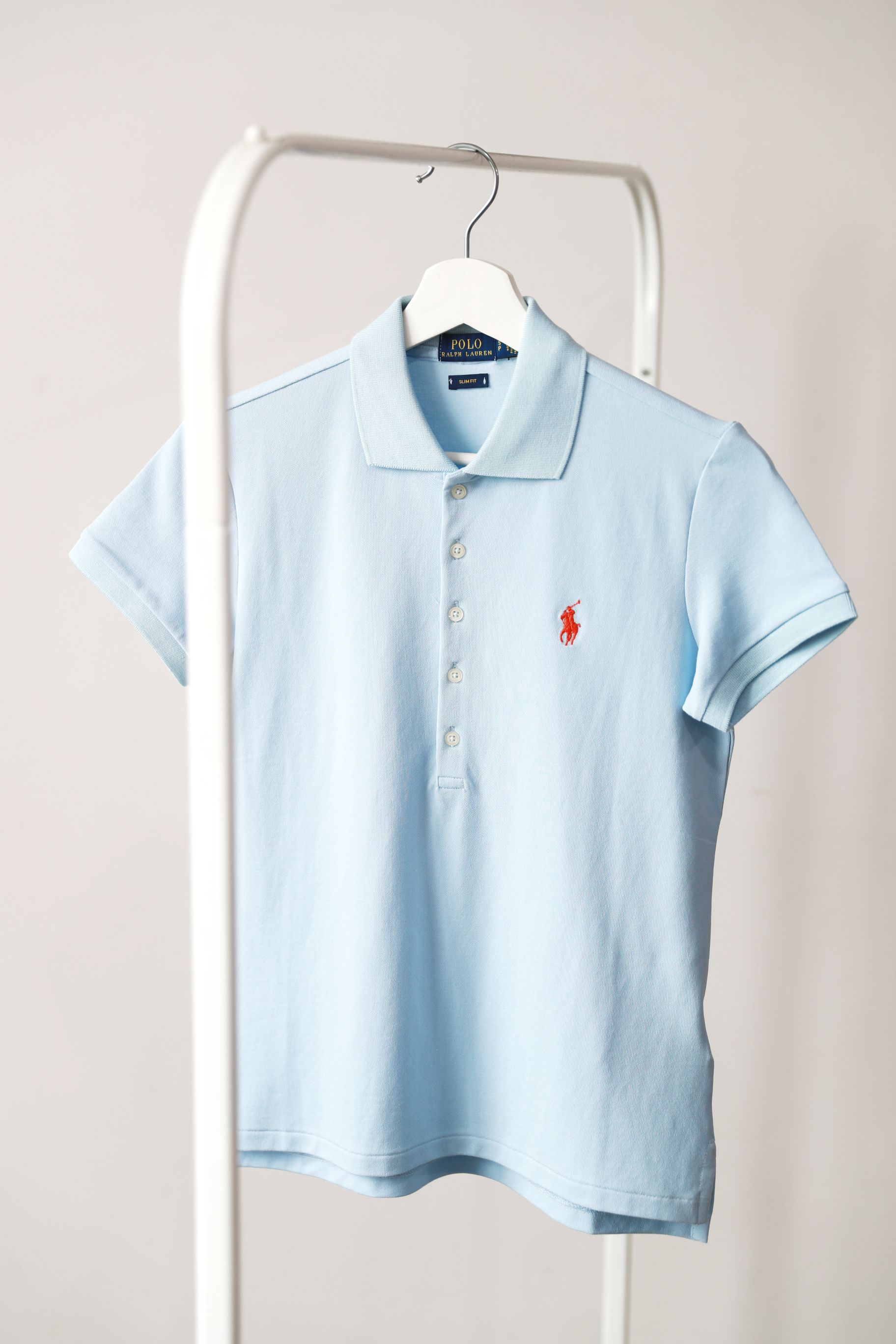 清冷感polo衫。r家小标刺绣粒扣设计慵懒显瘦翻领polo衫女J051630