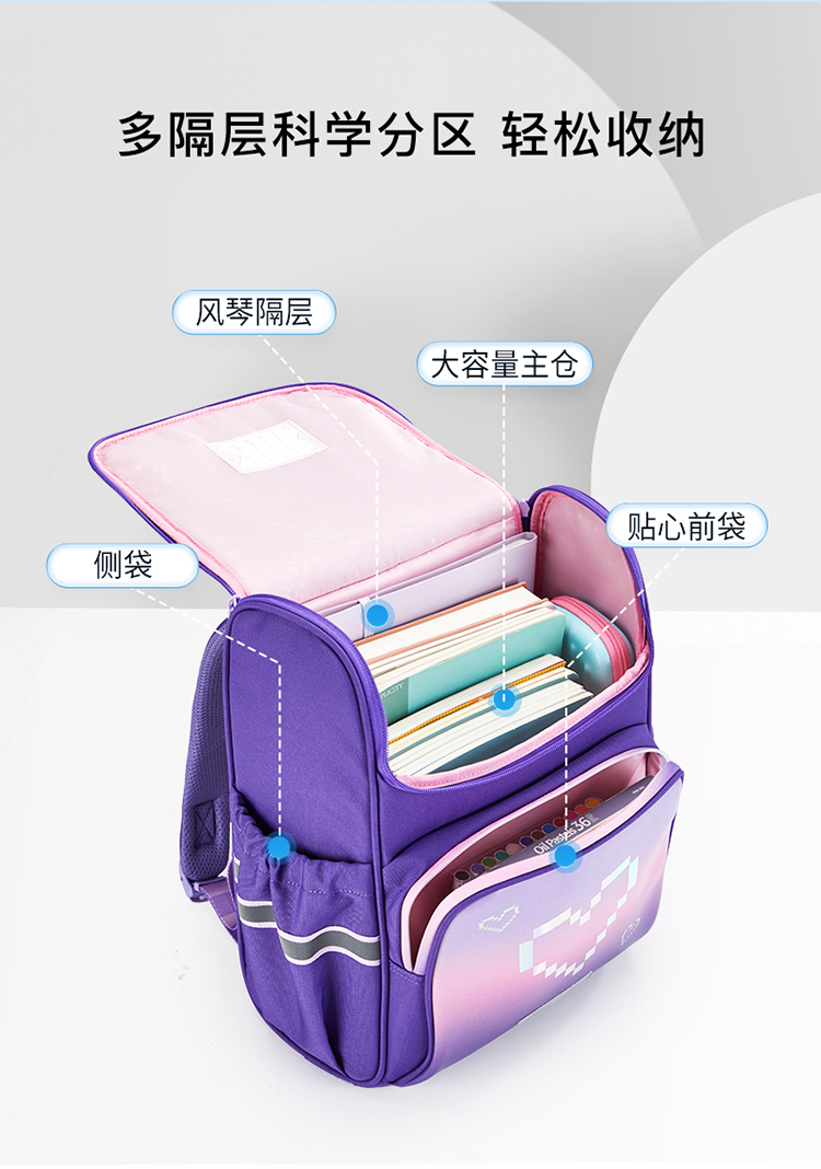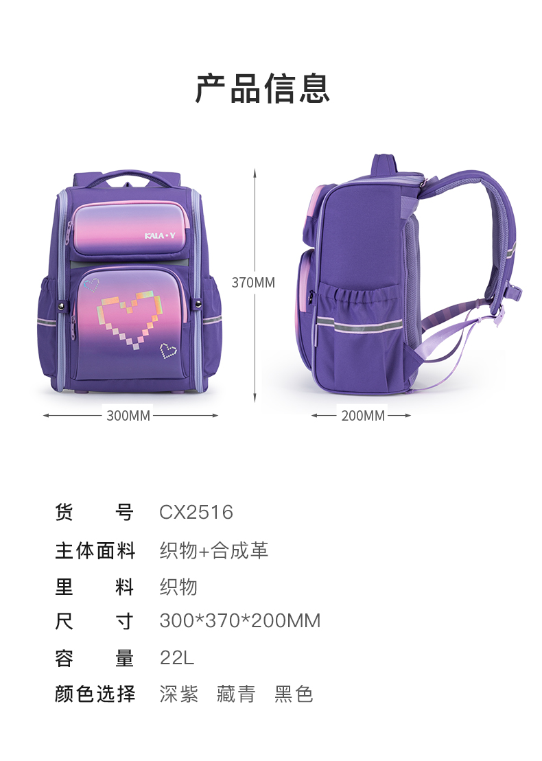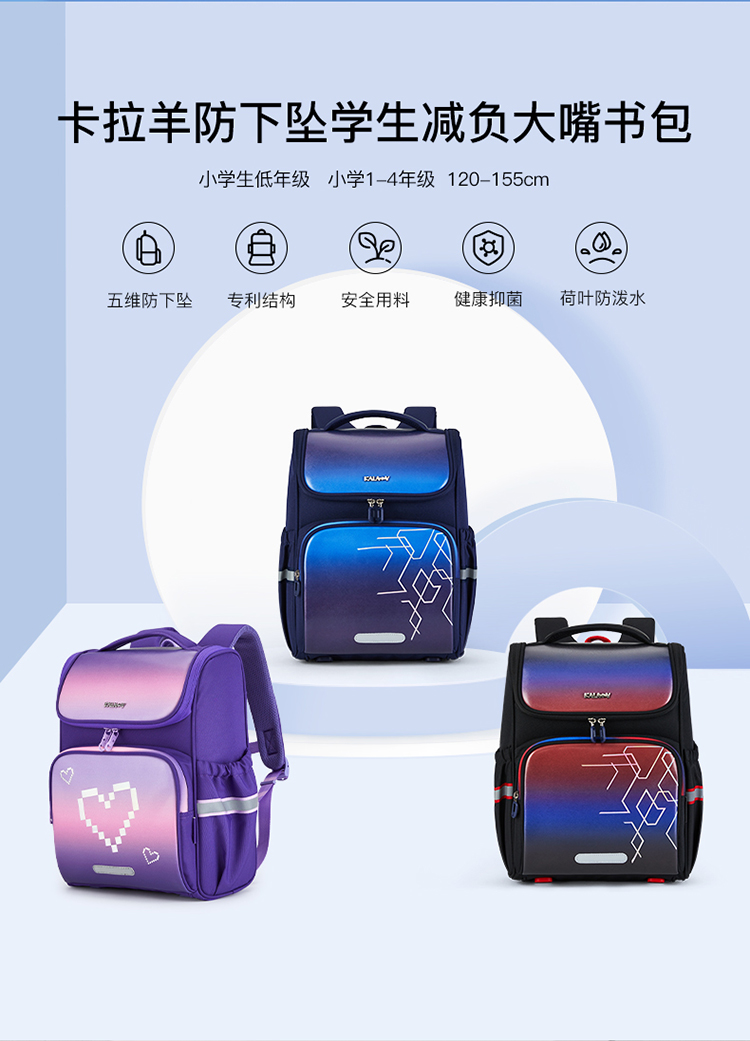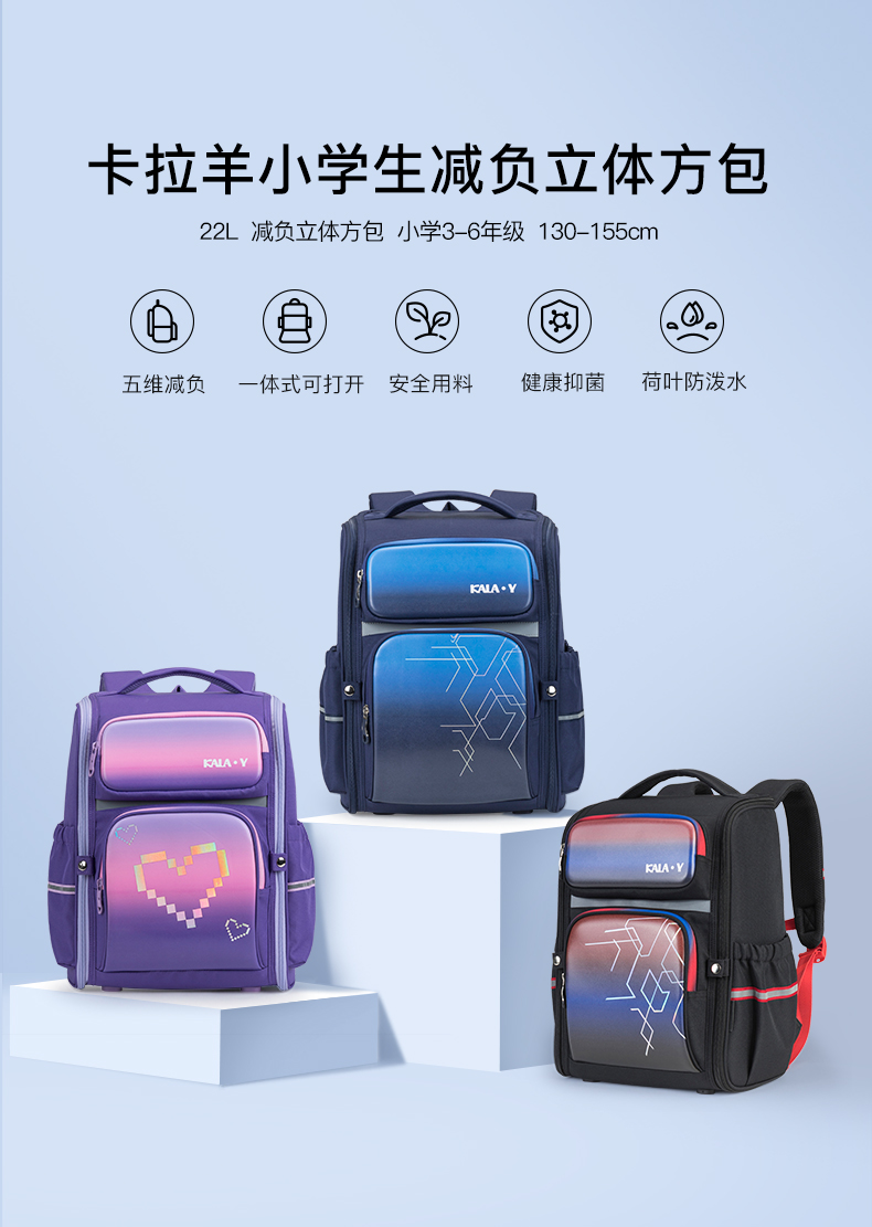 卡拉羊1-6年级18L/22L五维减负防下坠大嘴书包 超光速 CX2184+CX2516