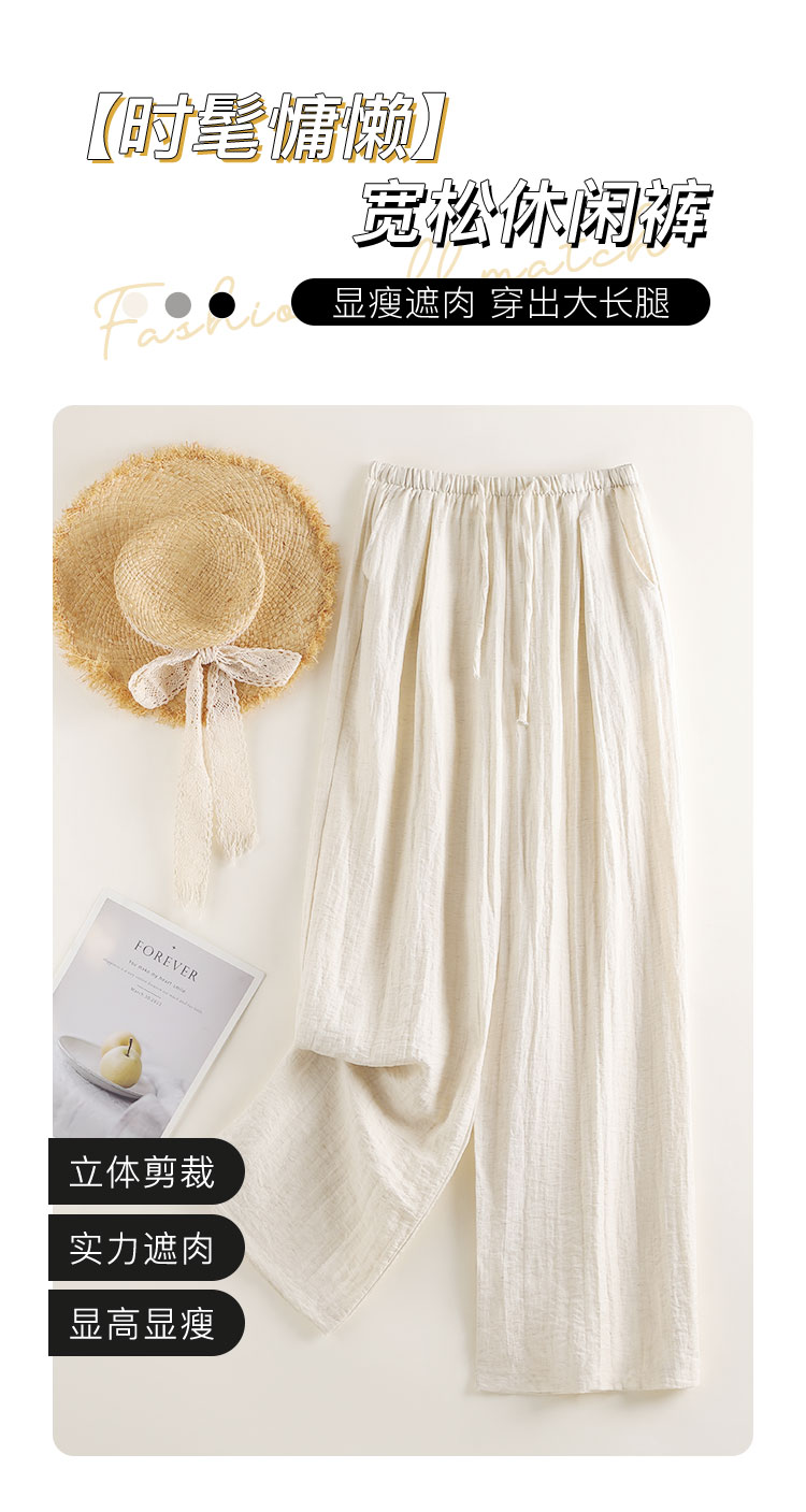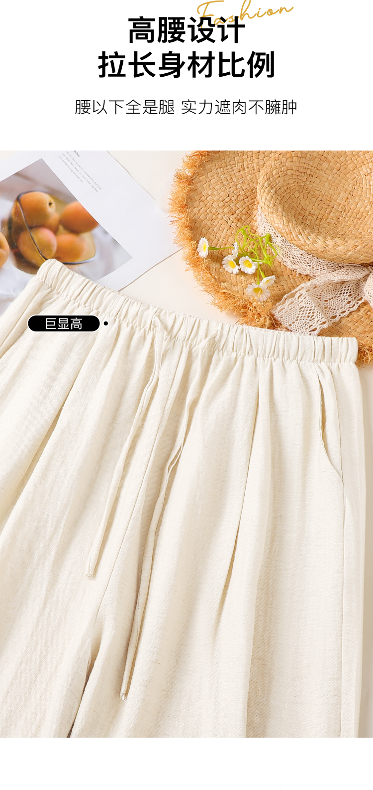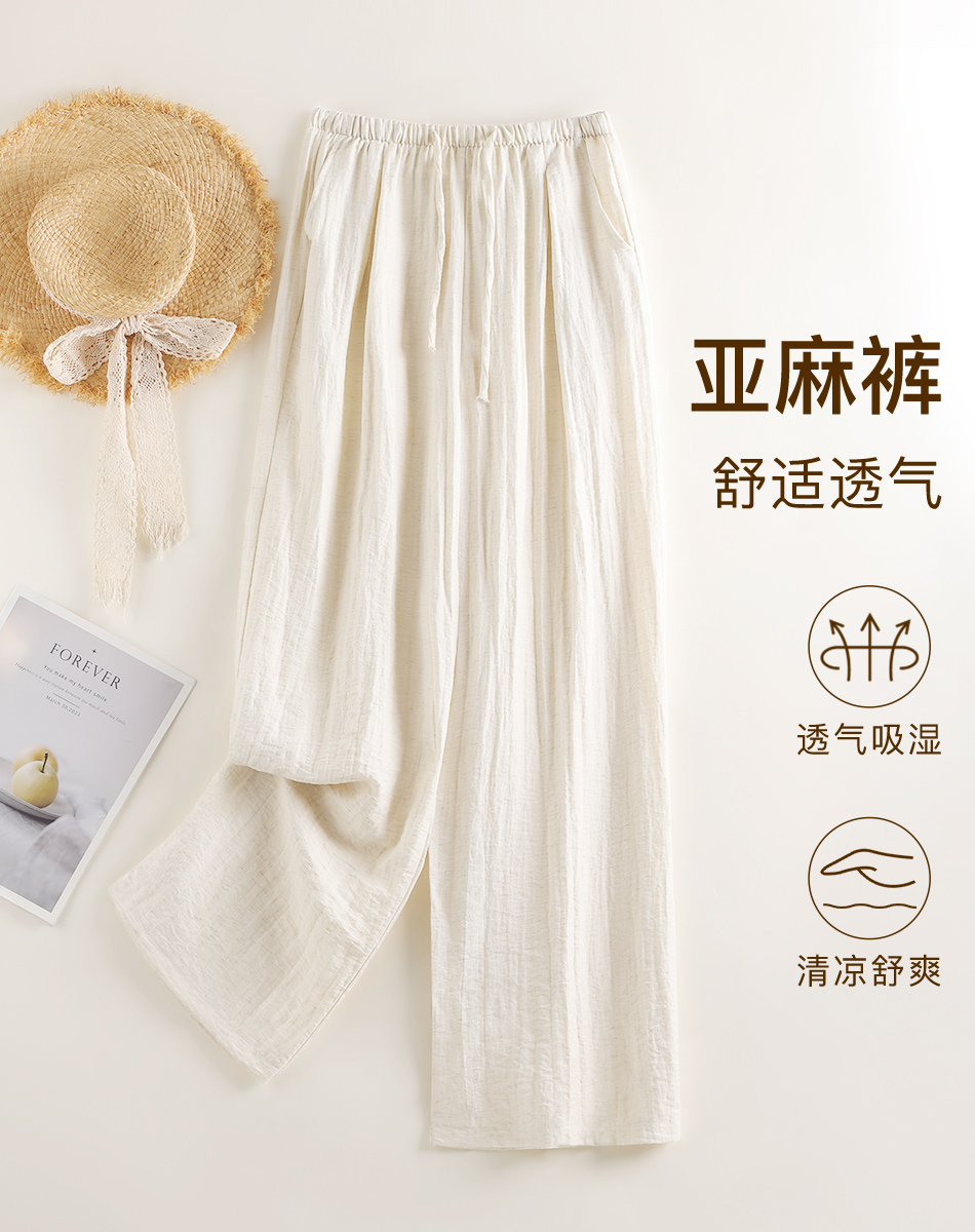 【透气亚麻裤】夏季薄款高腰显瘦阔腿裤长裤女宽松舒适轻盈不闷汗H1550初夏休闲裤