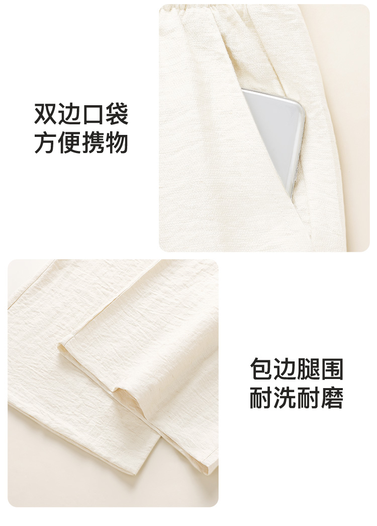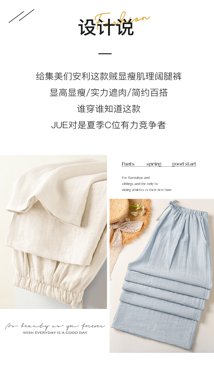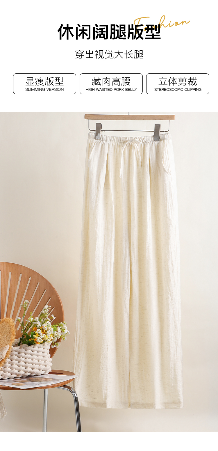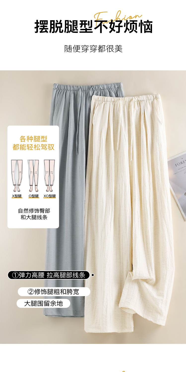 【透气亚麻裤】夏季薄款高腰显瘦阔腿裤长裤女宽松舒适轻盈不闷汗H1550初夏休闲裤
