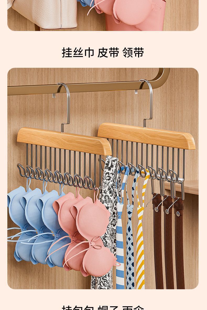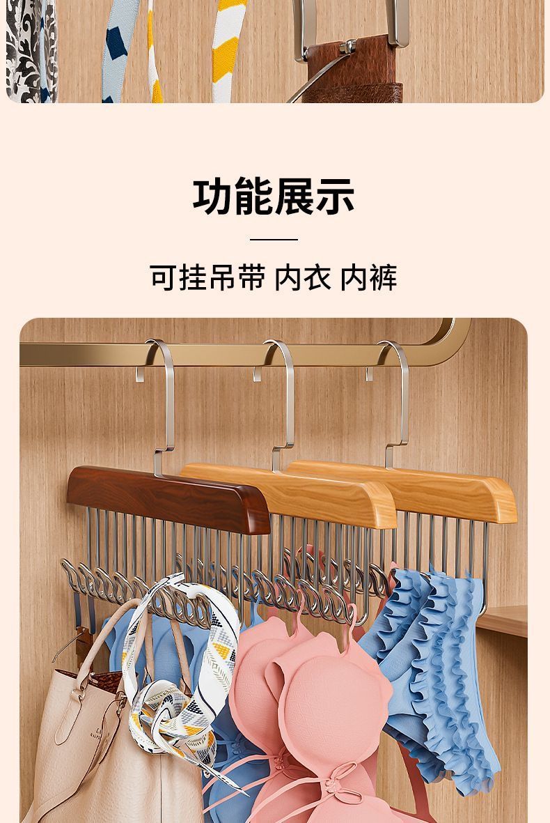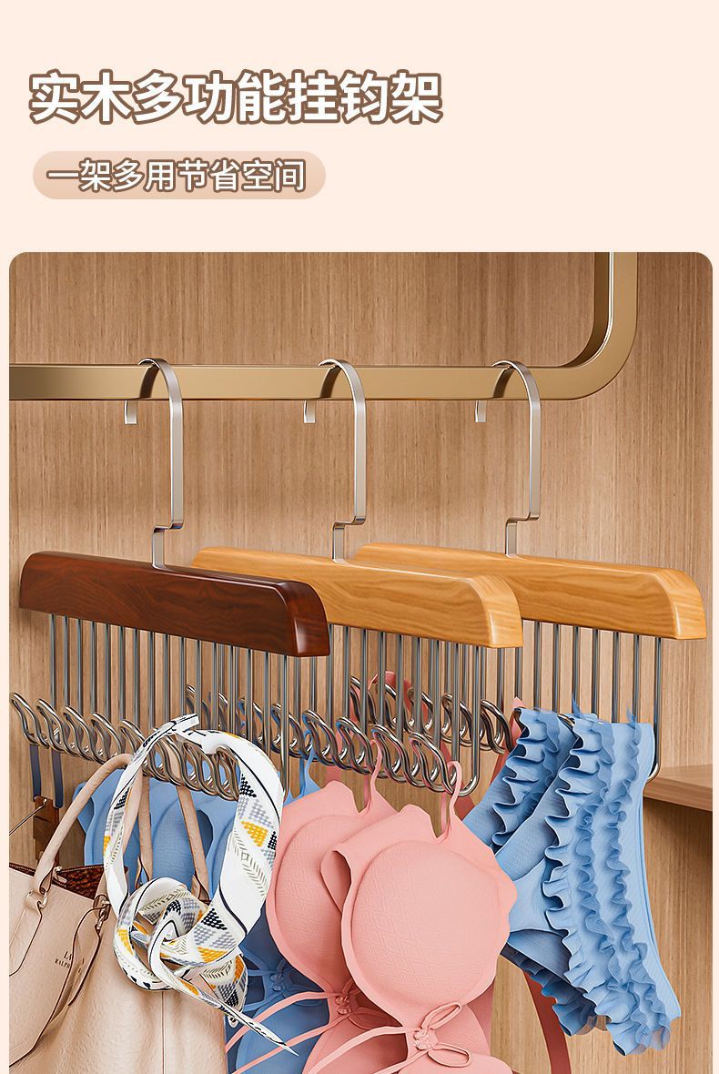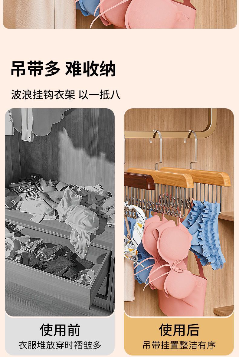 【买一送一】木质吊带衣架家用宿舍实木挂钩多功能内衣衣架波浪晾衣架收纳神器