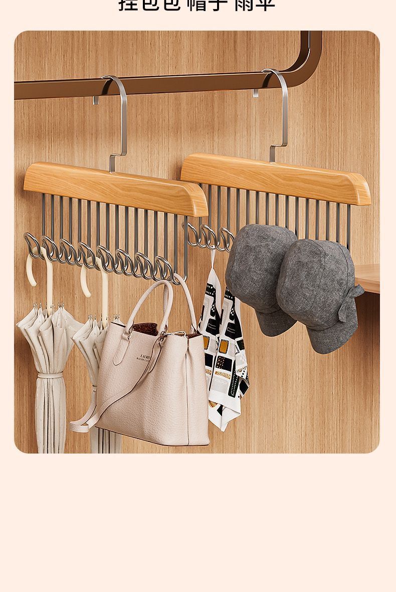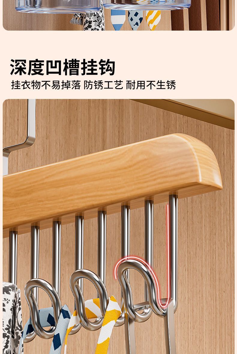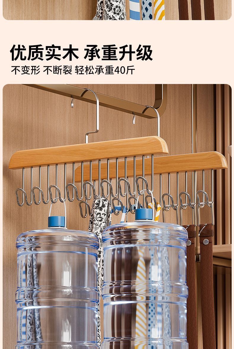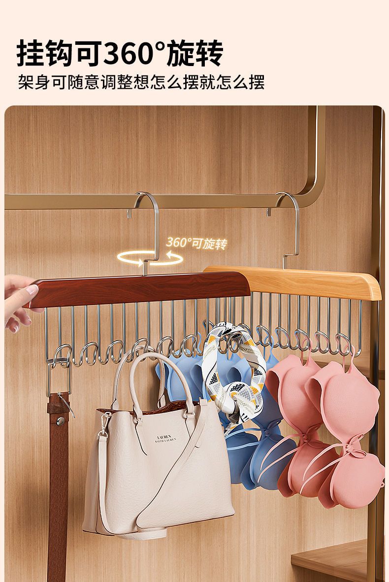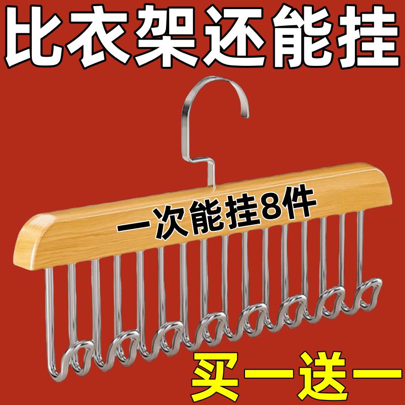 【买一送一】木质吊带衣架家用宿舍实木挂钩多功能内衣衣架波浪晾衣架收纳神器