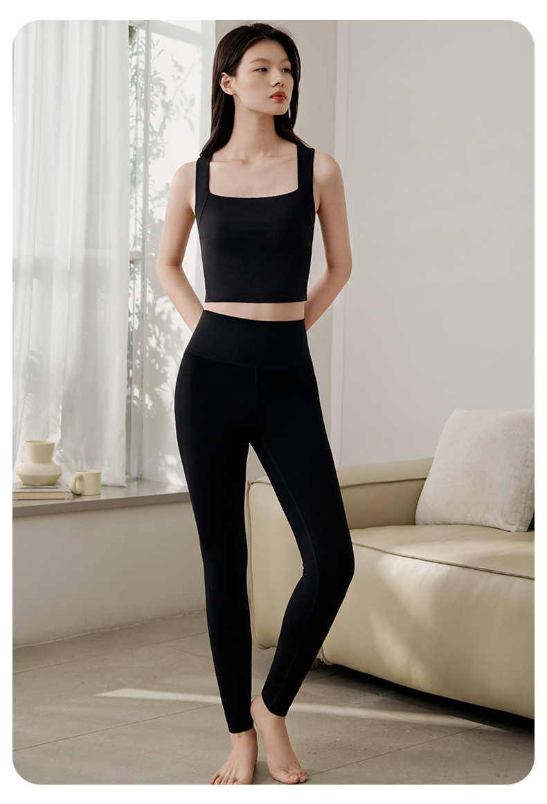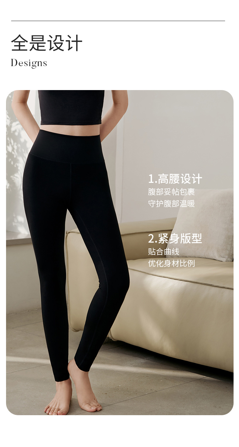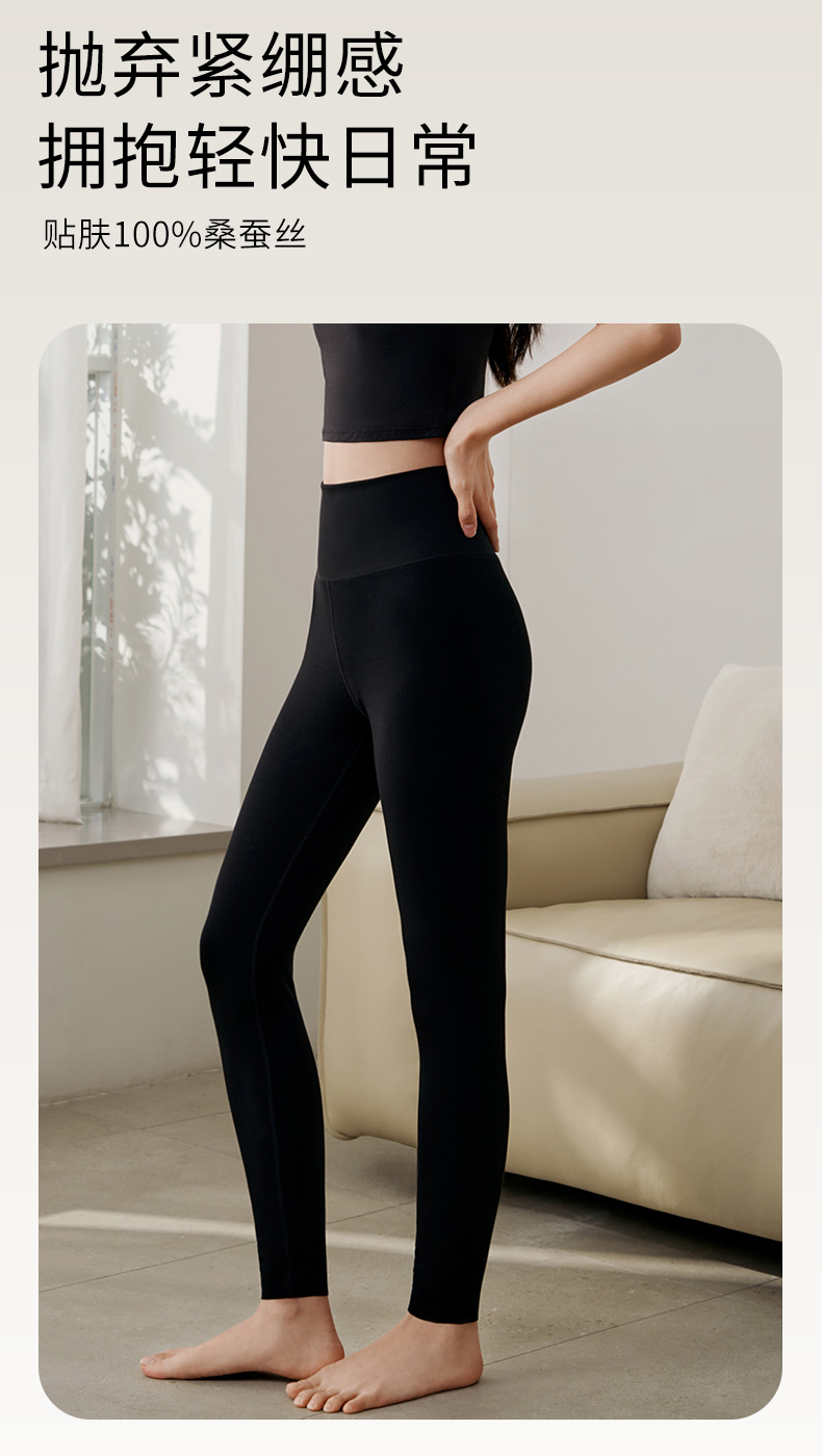 金三塔桑蚕丝高腰打底裤女纯色莫代尔弹力提臀保暖裤秋冬运动长裤 NZFFD902
