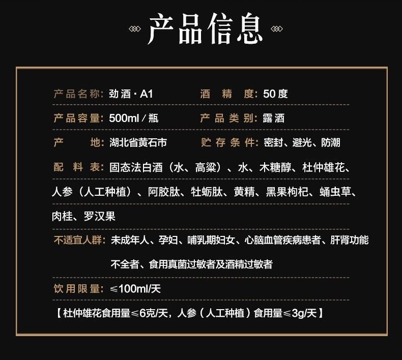 劲牌 A1 50度 500ml 草本药材酒 露酒 自饮小酌 聚餐 商务接待 送礼 送长辈