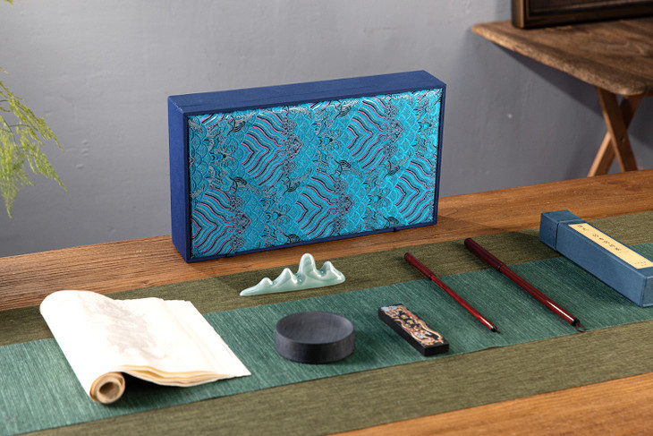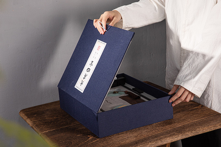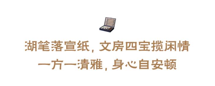 笔墨纸砚静躺盒中,构一番闲暇之境,文人情思流淌,自有人生一乐。