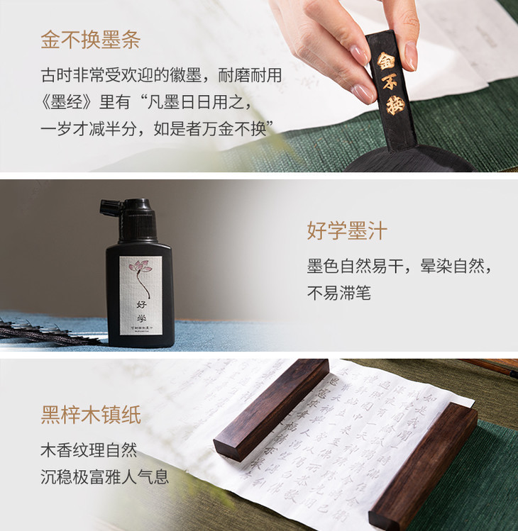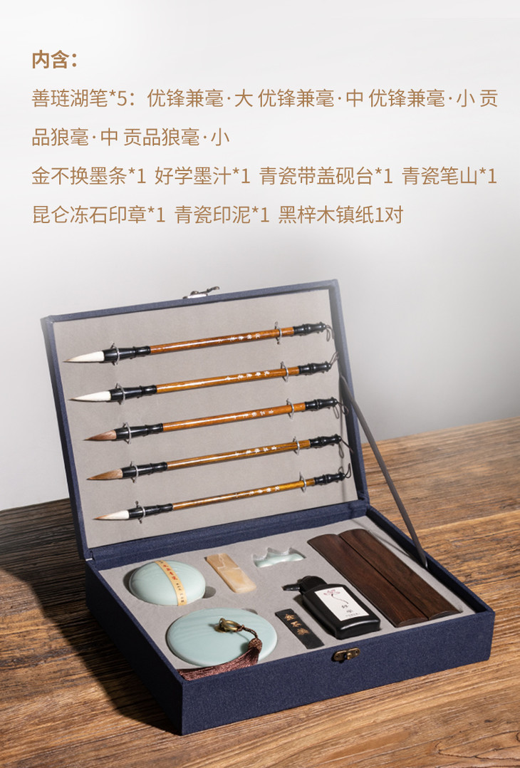 对毛笔字感兴趣、想要入门书画界的朋友,选择这套性价比超高的文房礼盒,非常合适。