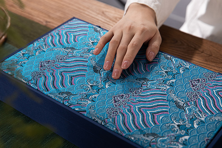 锦缎礼盒上,如意云纹、波浪纹交织,迎面而来的祥瑞之气,一见便欢喜倾心。