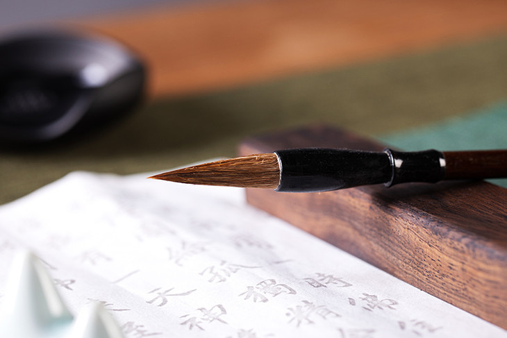 善琏湖笔以红木为笔杆,沉稳古朴,红褐色纹理流畅,更显灵动美,使毛笔整体大气雅致。