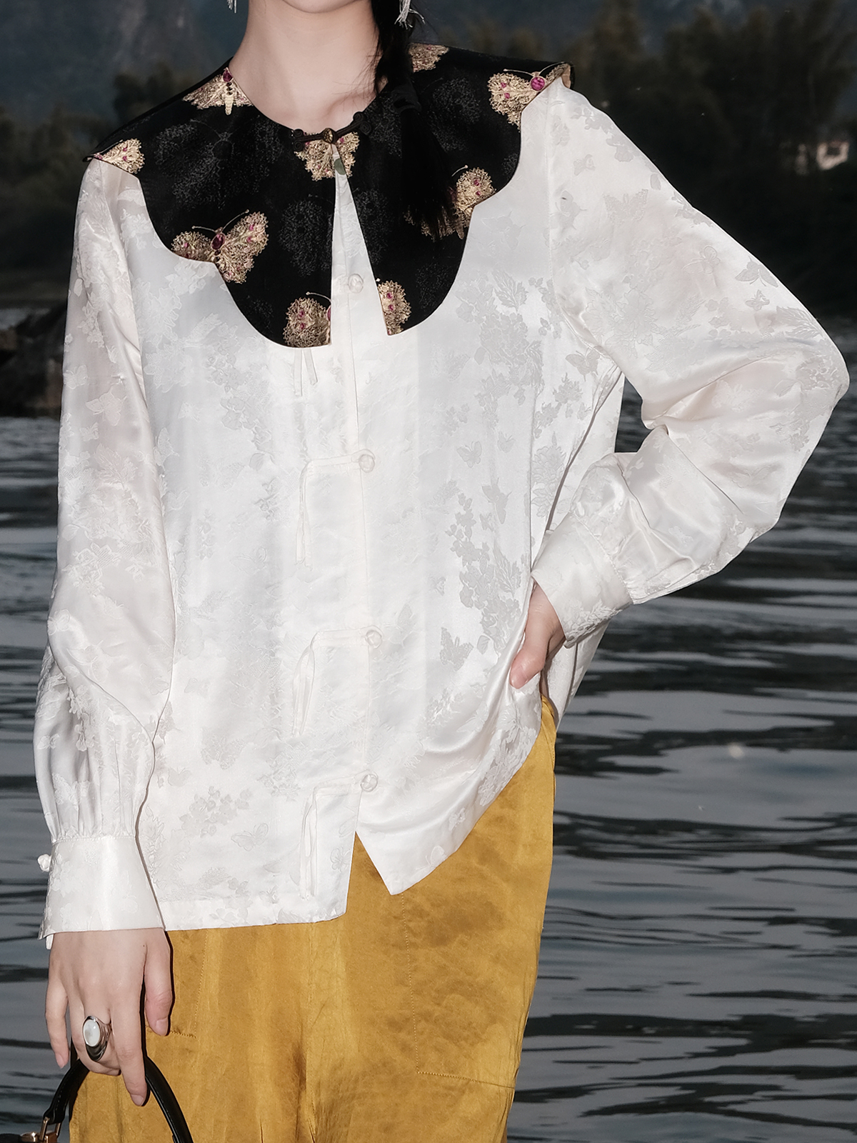 盛唐牡丹| 珍珠白真丝竹子纹偏襟上衣