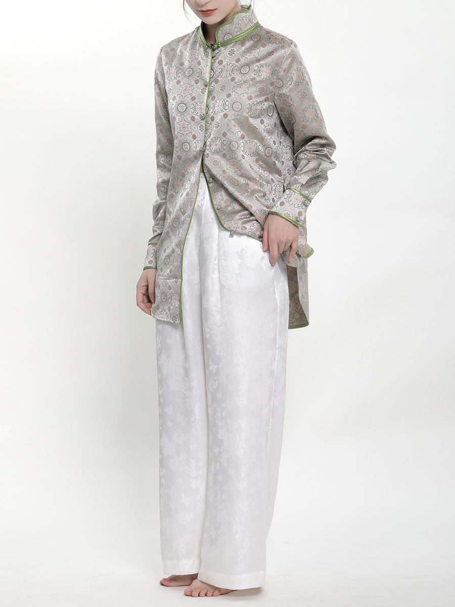 盛唐牡丹 |真丝提花阔腿裤珍珠白平腰版 (蝶恋花纹样)
