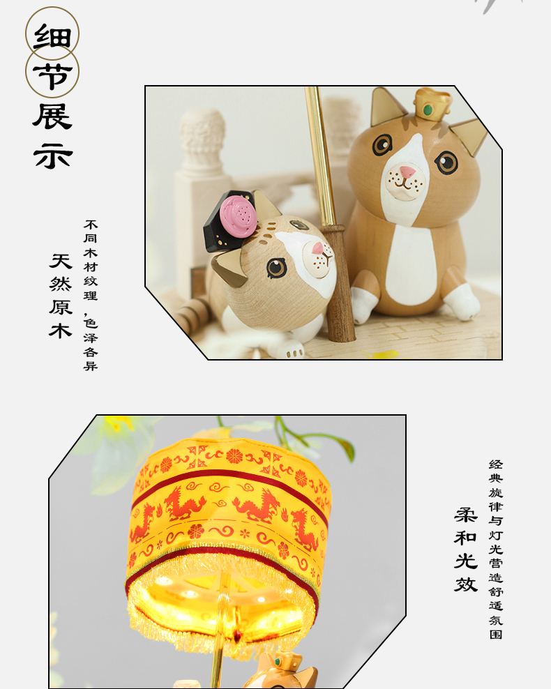 木制家居猫咪伞灯