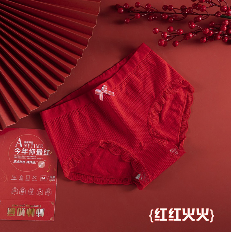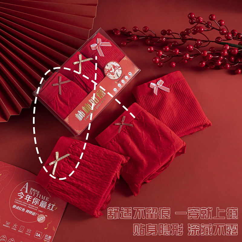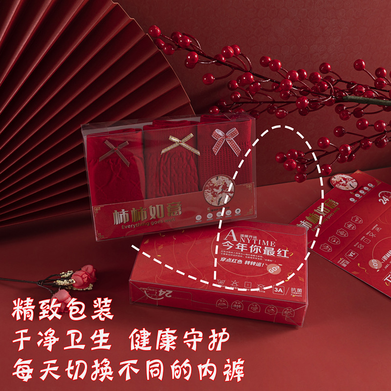 【新年穿好运❗️柿柿如意内裤礼盒套装】喜庆又吉祥,穿上它,幸福满满❗️新款大红色本命年女结婚喜事新年转运无痕无缝透气中腰三角裤子,蛇年新年礼盒年货礼盒