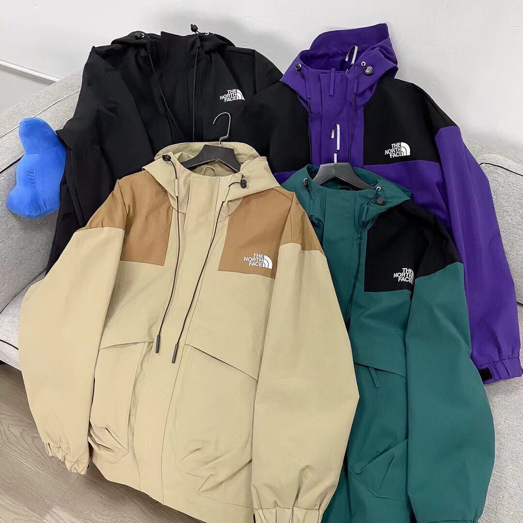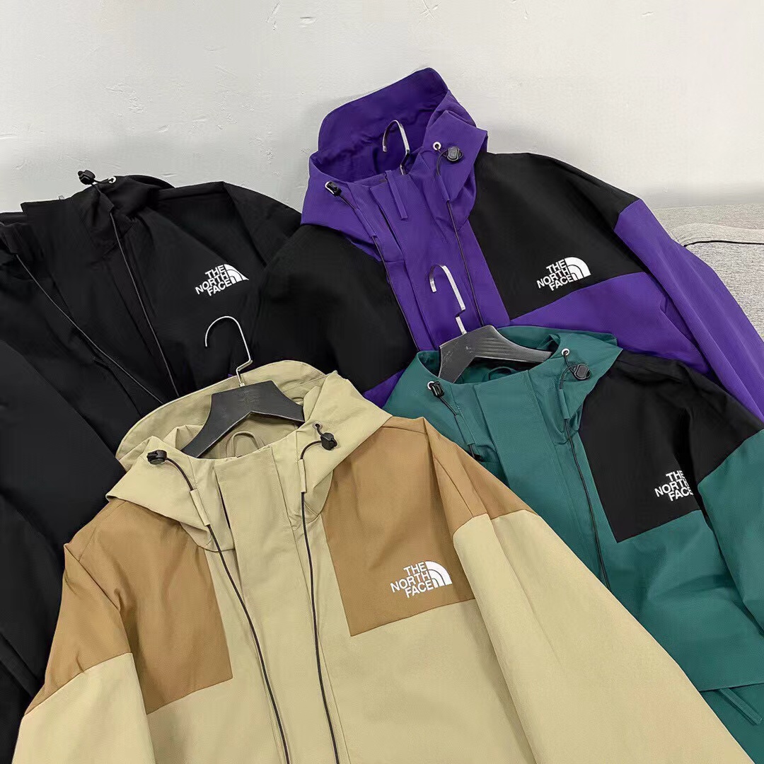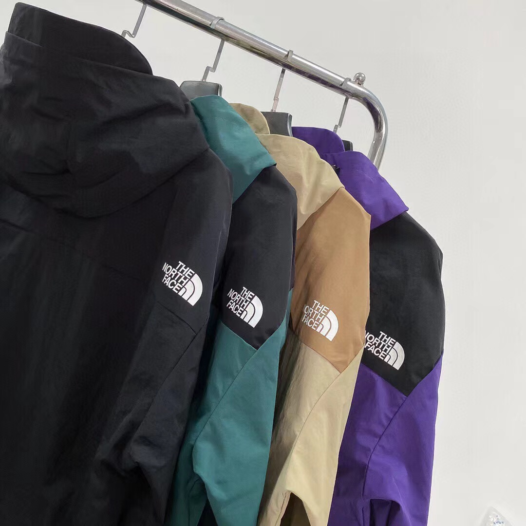 双色拼接冲锋衣 外套情侣款 采用出口级聚酯纤维加密防风歪布 防水涂层无惧春季雨天气!可调节袖口&连帽细节给你算无遗漏的潮流!胸口印花logo 三标齐全
