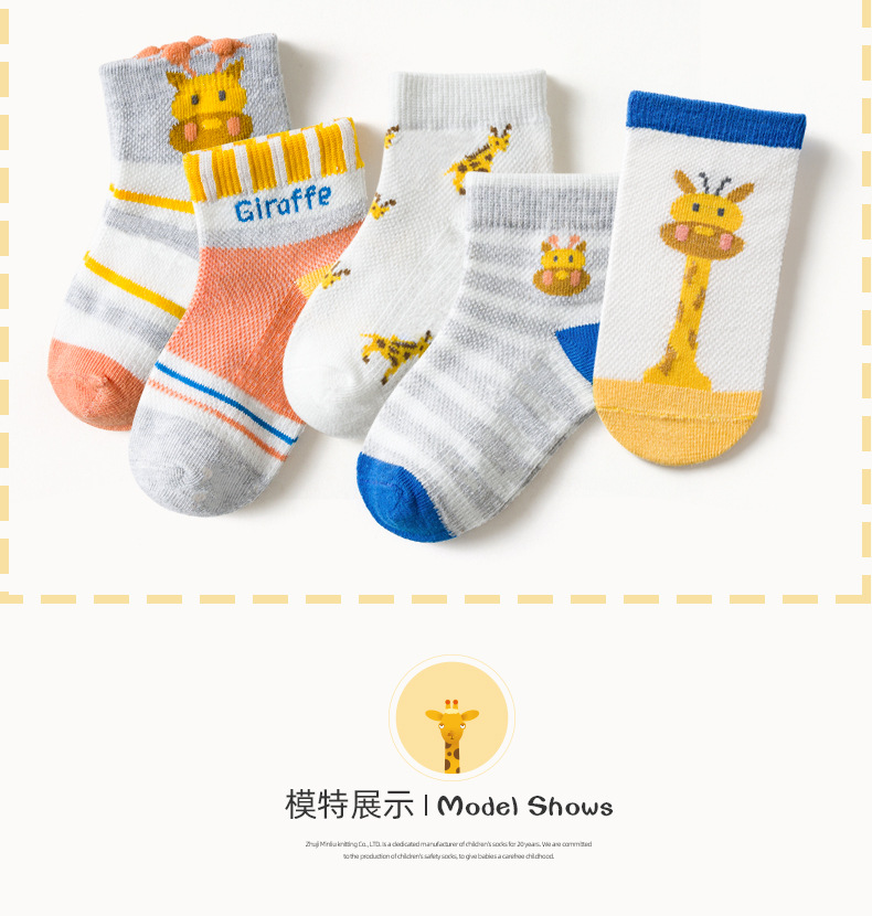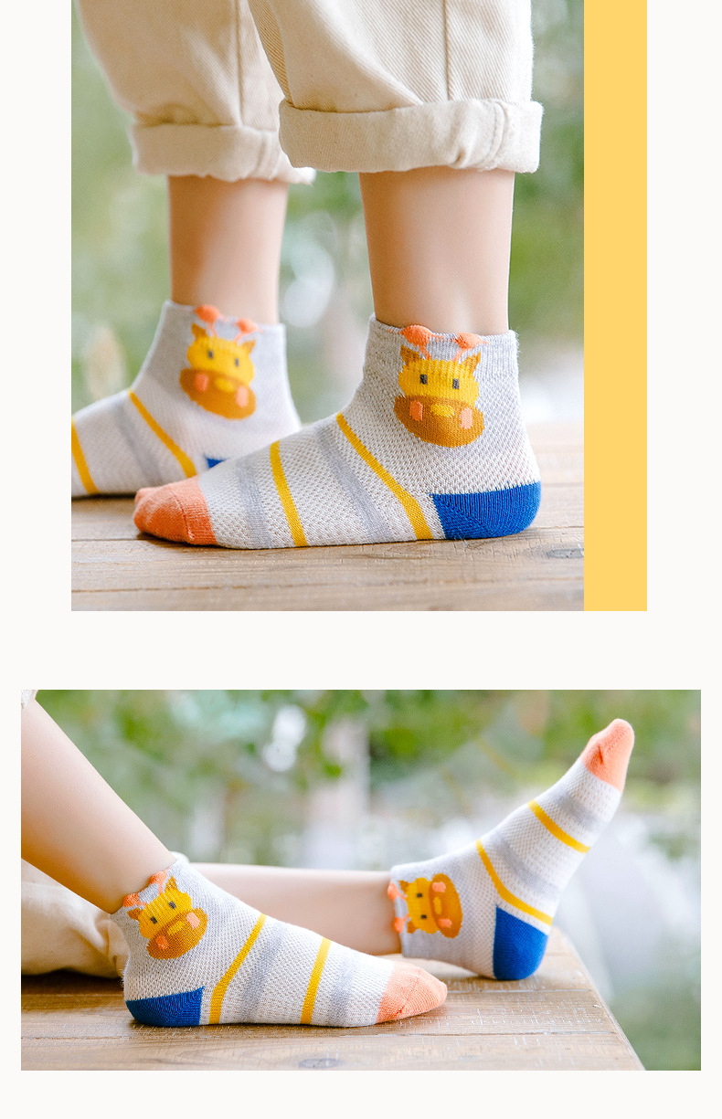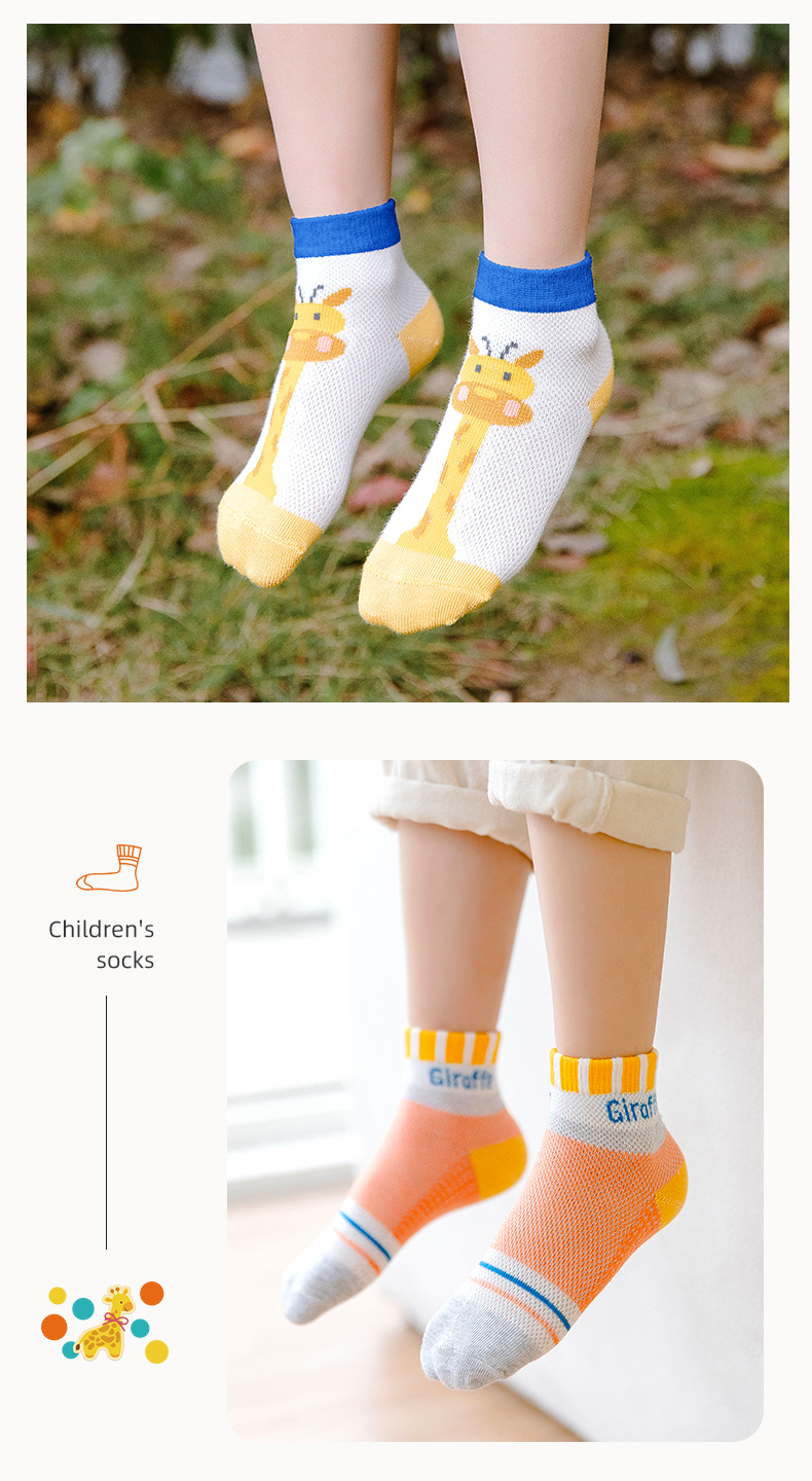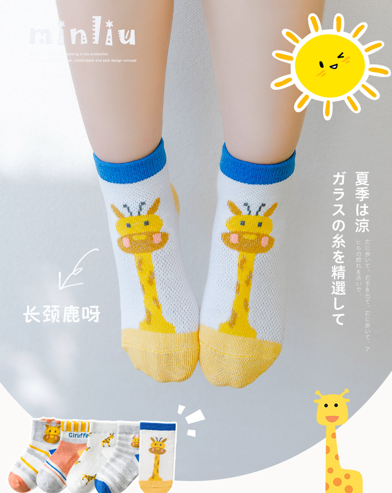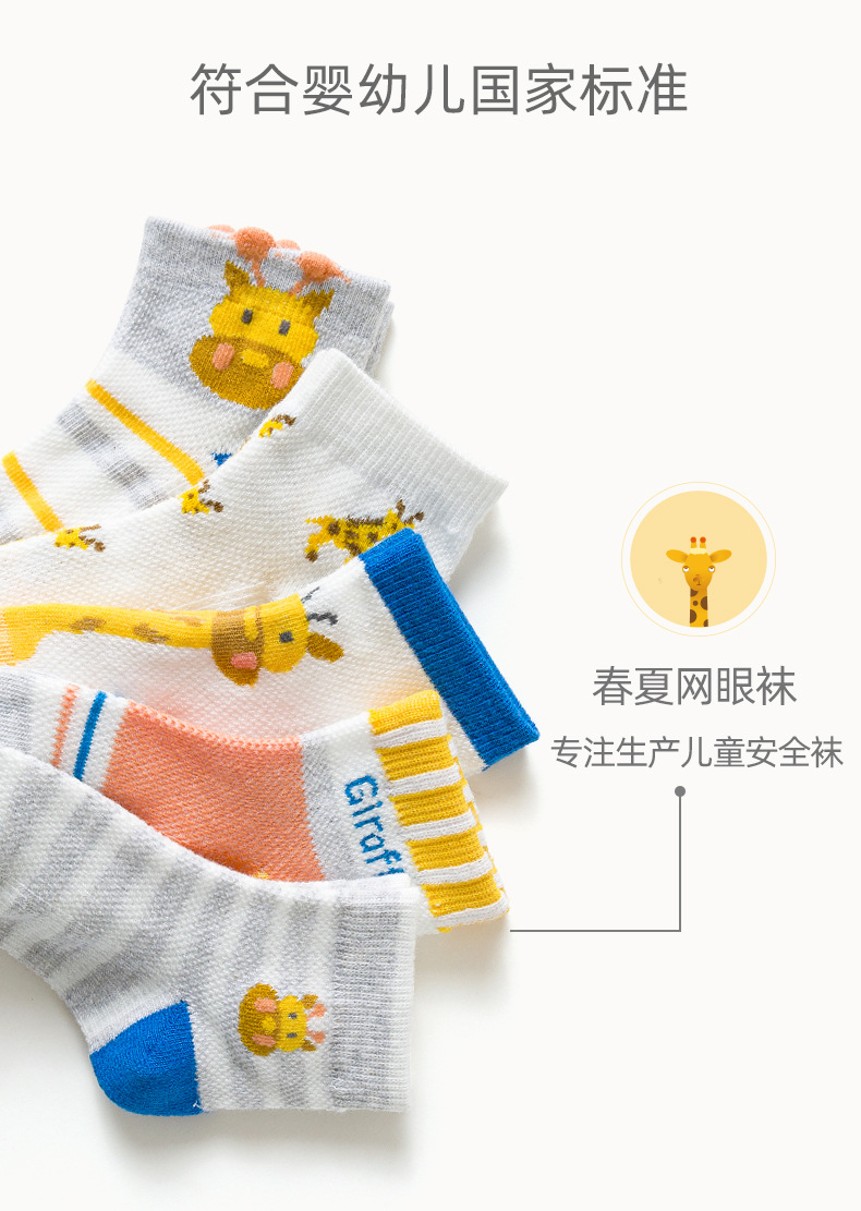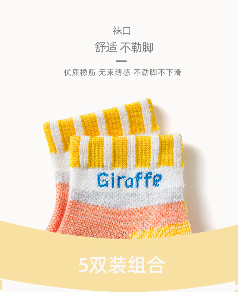 【母婴】5双装 春夏网眼短袜卡通撞色长颈鹿童袜男女中大童宝宝袜子