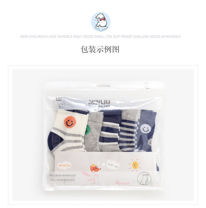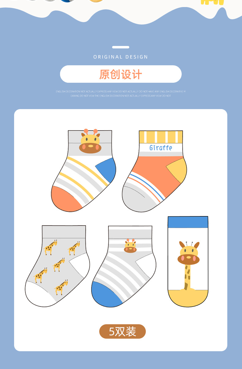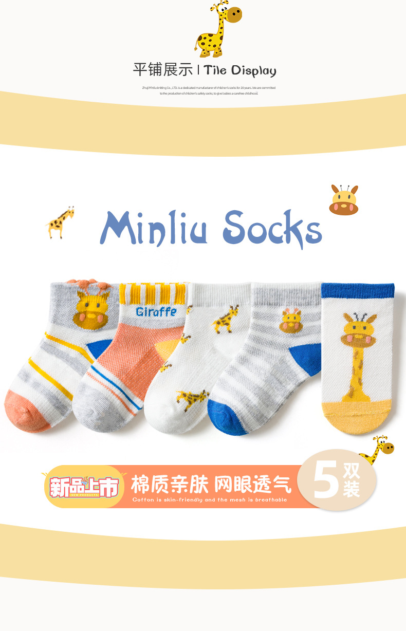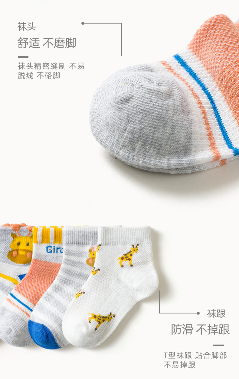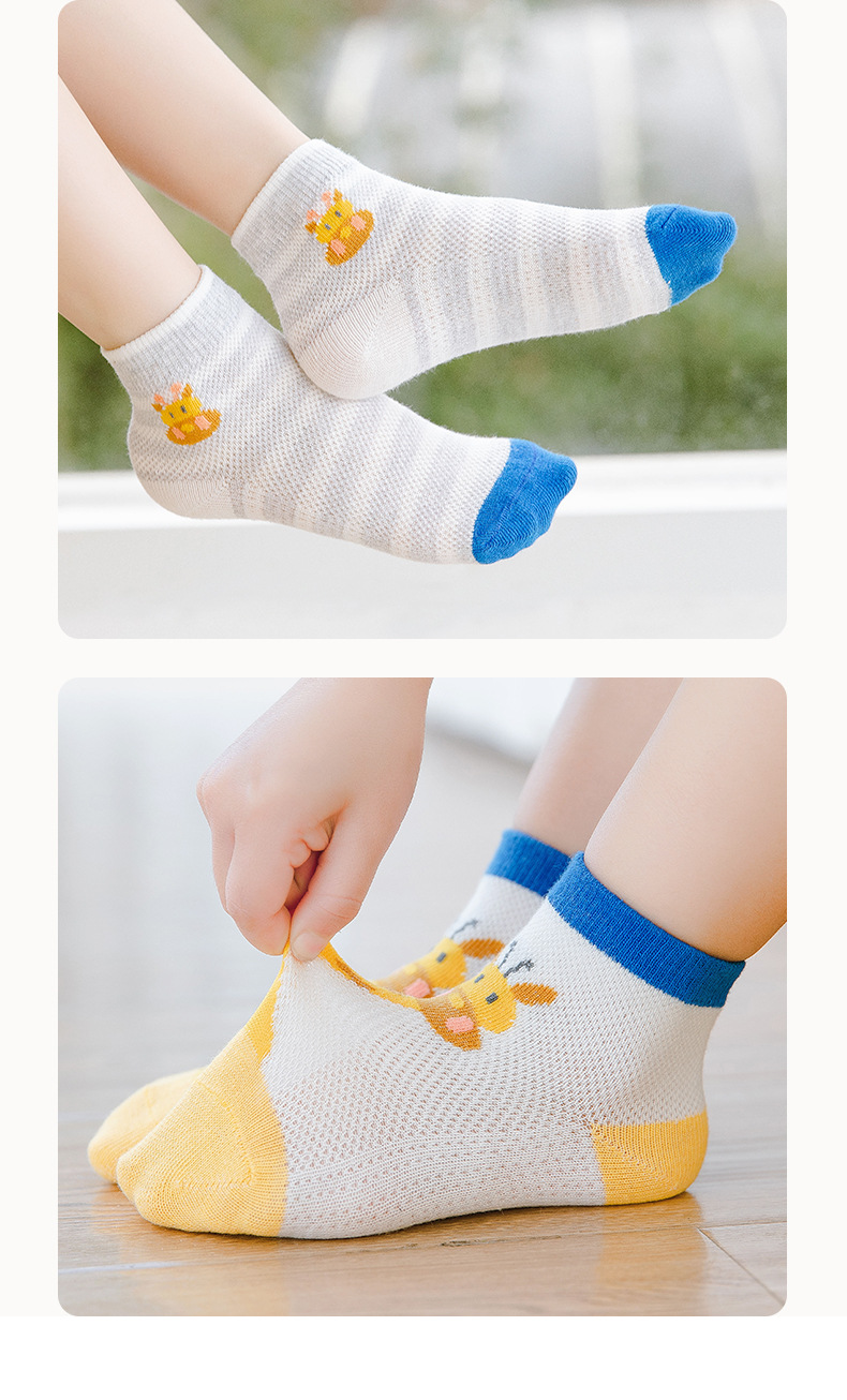 【母婴】5双装 春夏网眼短袜卡通撞色长颈鹿童袜男女中大童宝宝袜子