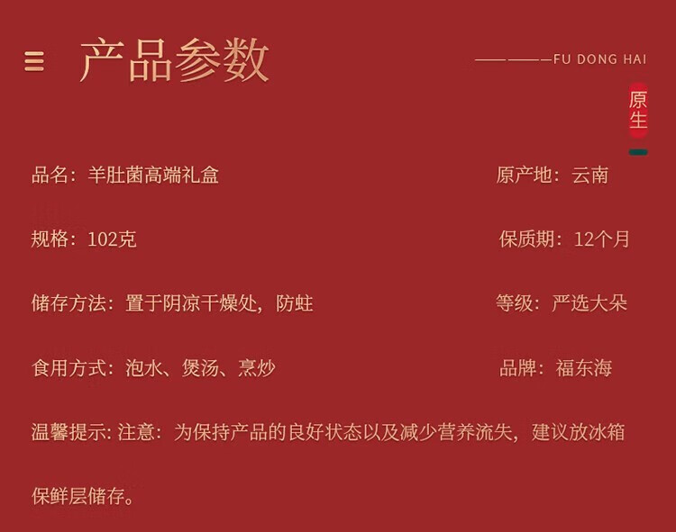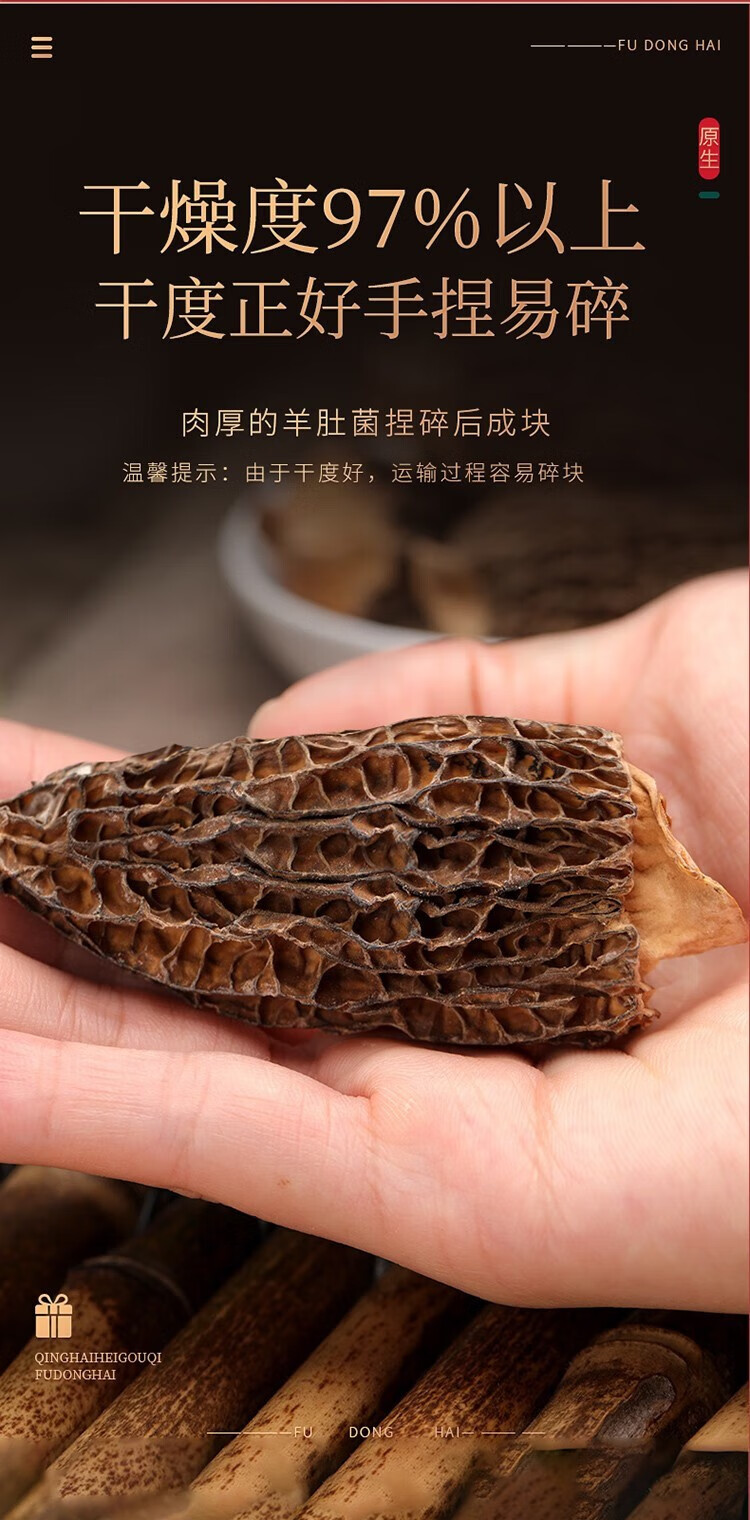 福东海 羊肚菌102克 云南特产菌菇山珍干货姬松茸伴侣送礼滋补品