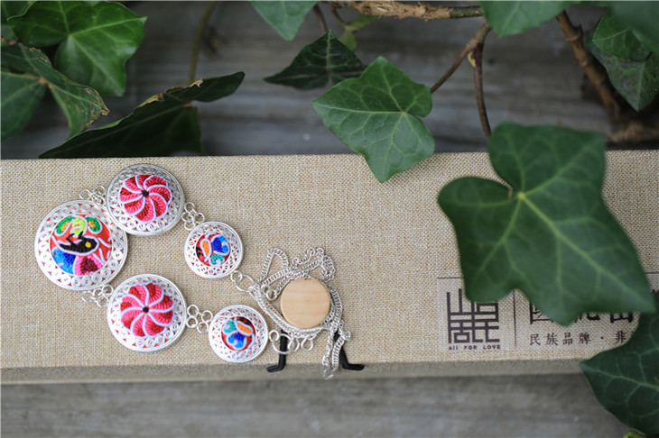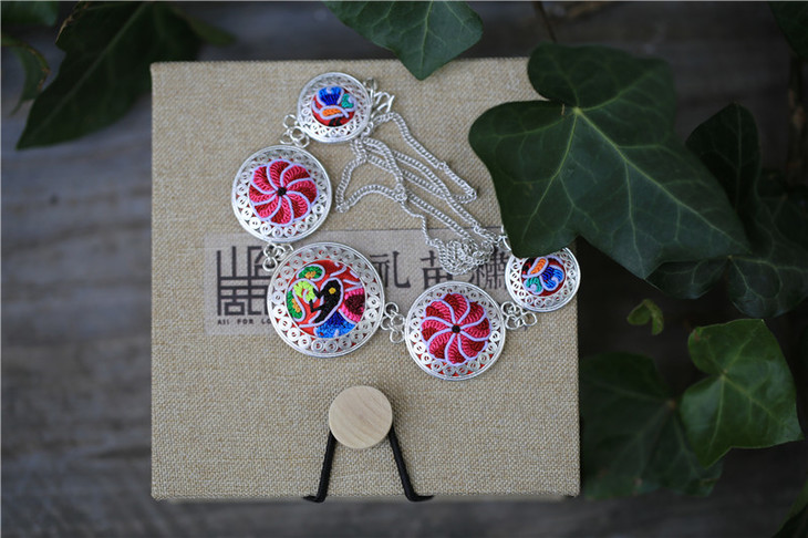 名称:手工绣花苗银项链—蜜福