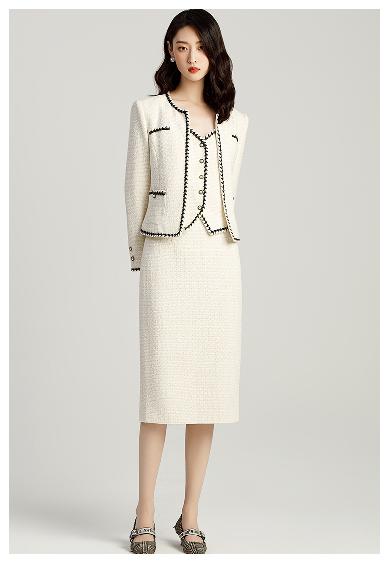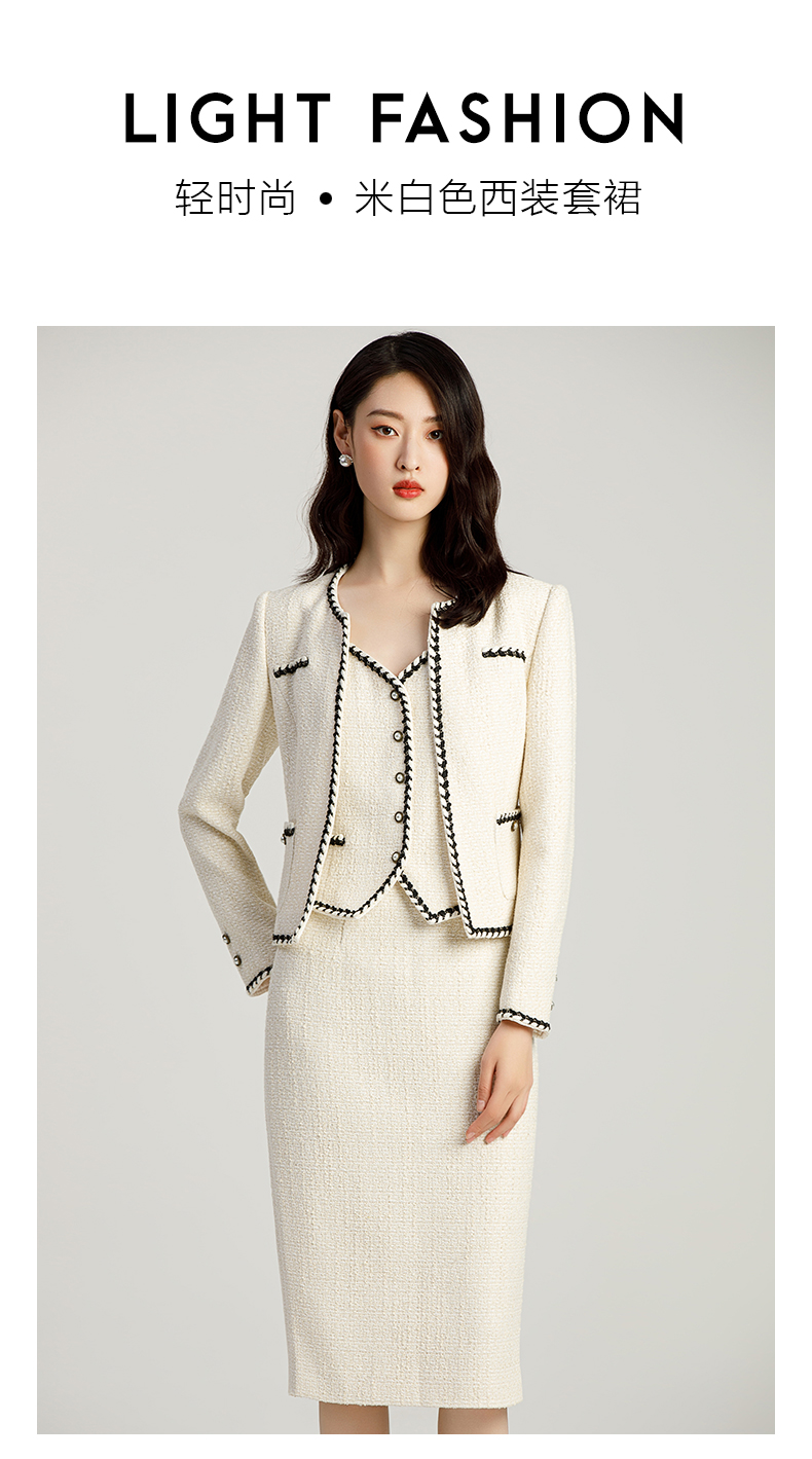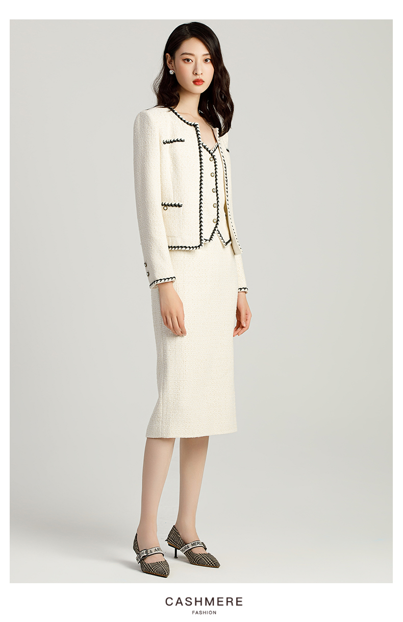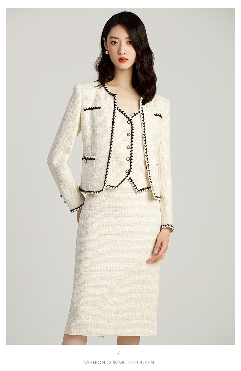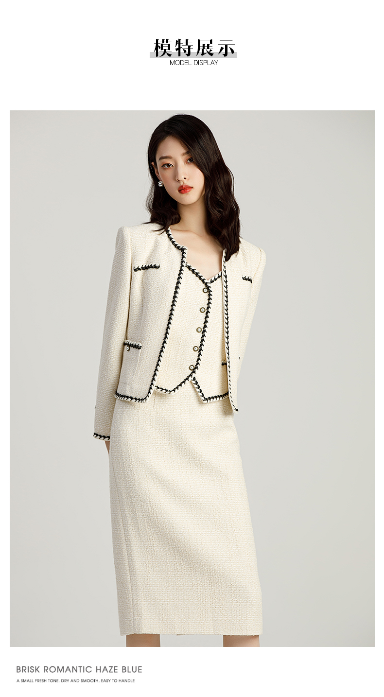 AD名媛范套装女小香风三件套上班服气质女神范法式短外套半身裙