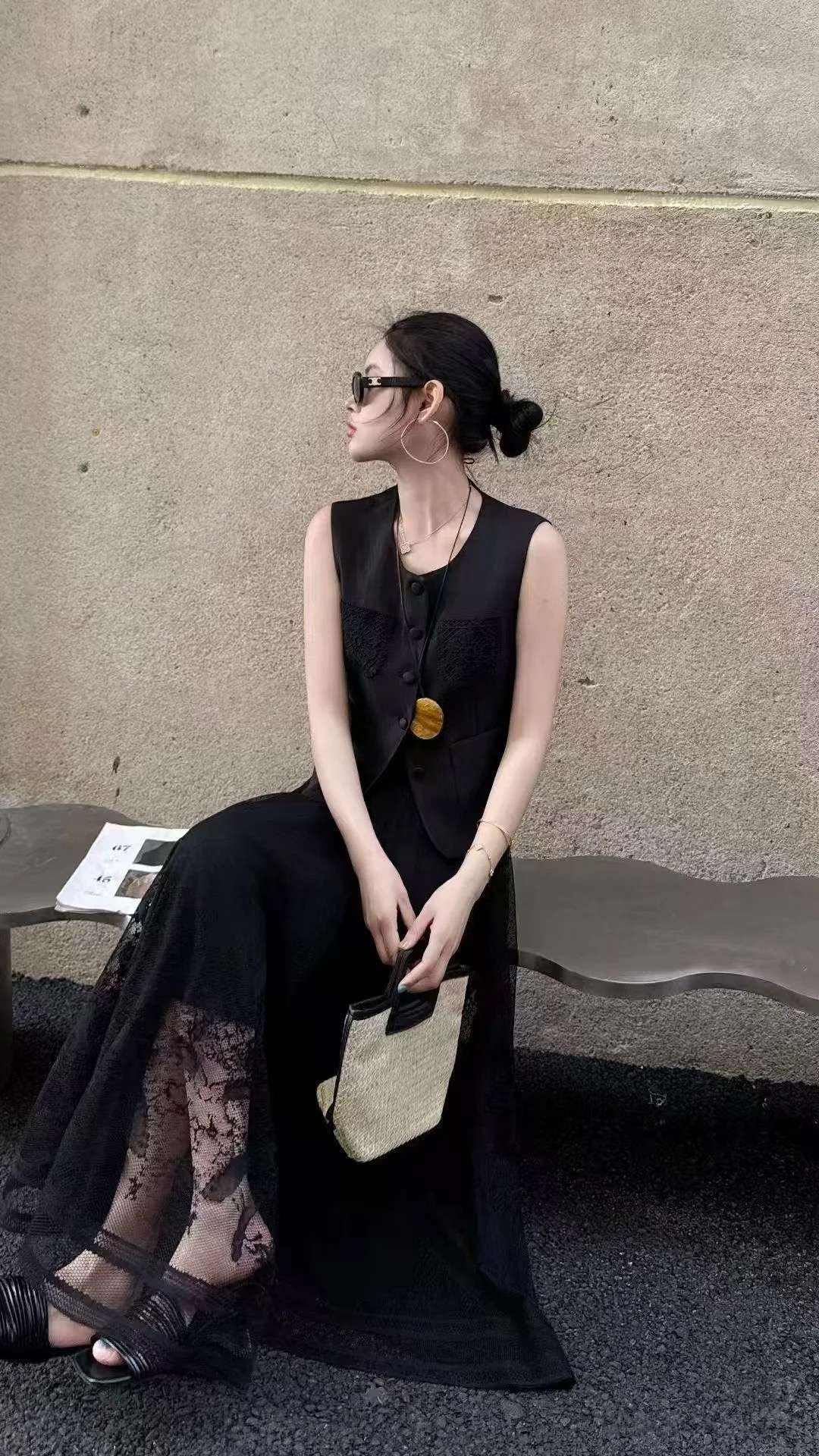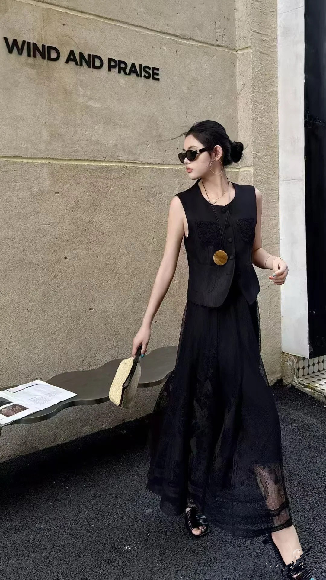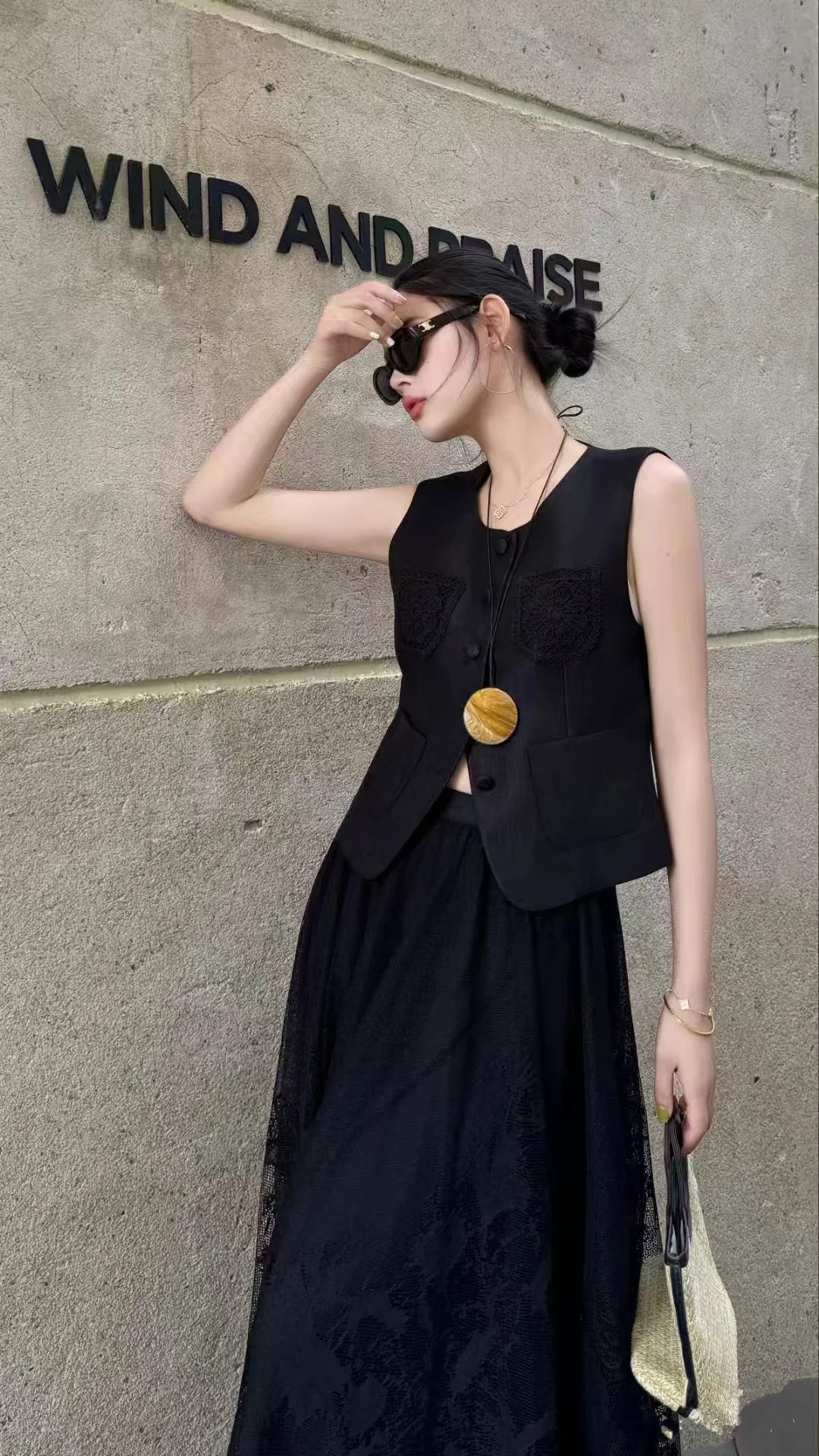 松紧腰蕾丝半身裙SZ2B55-漆黑
