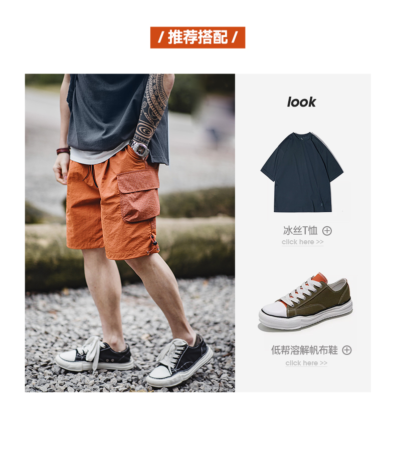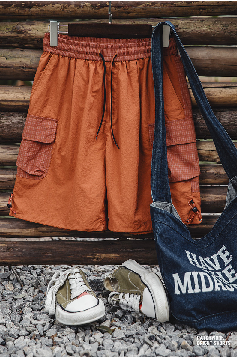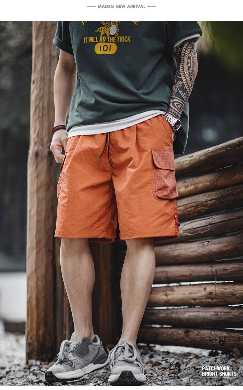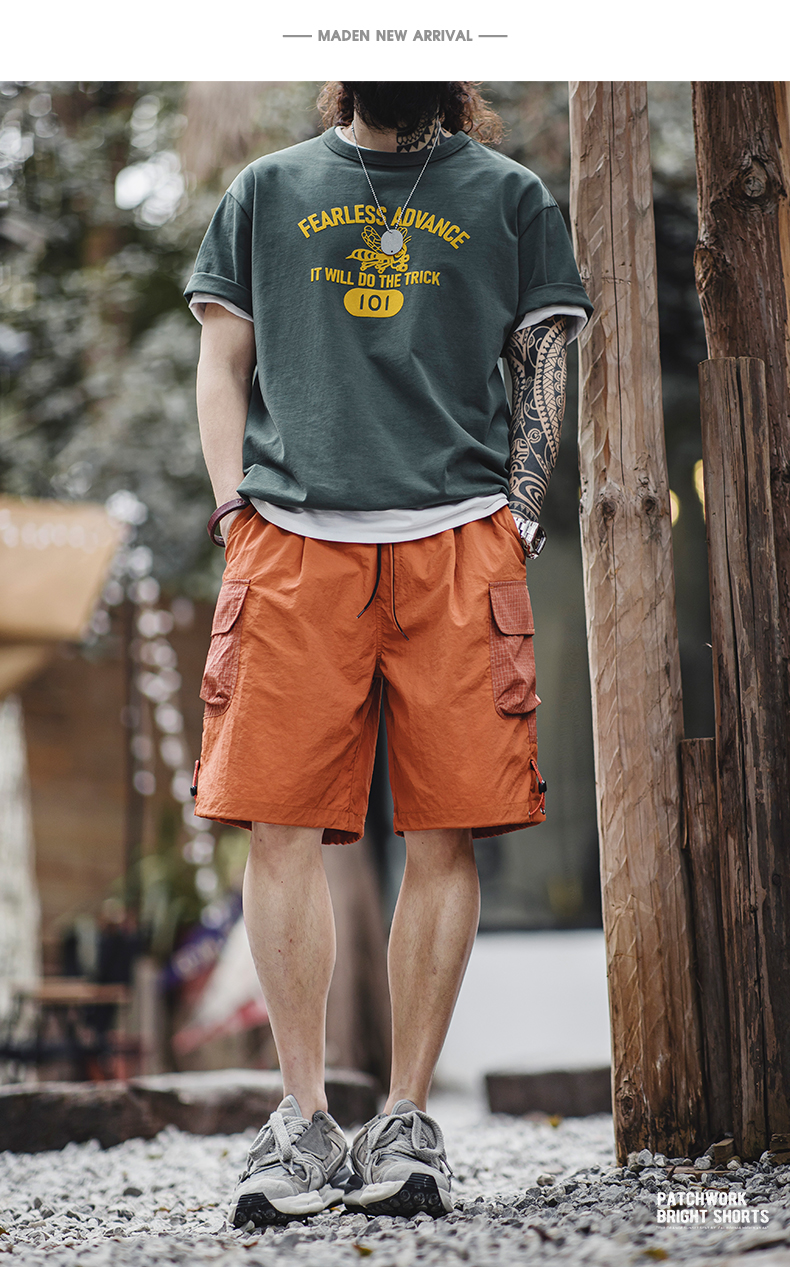 工装优选美式复古落日橘直筒短裤多巴胺宽松尼龙五分沙滩裤男夏薄