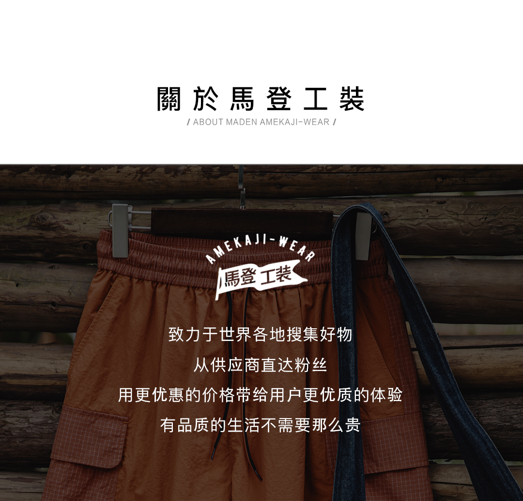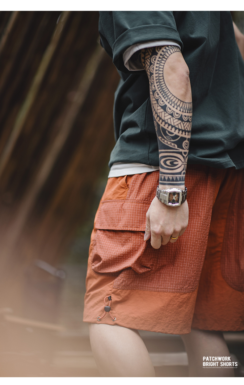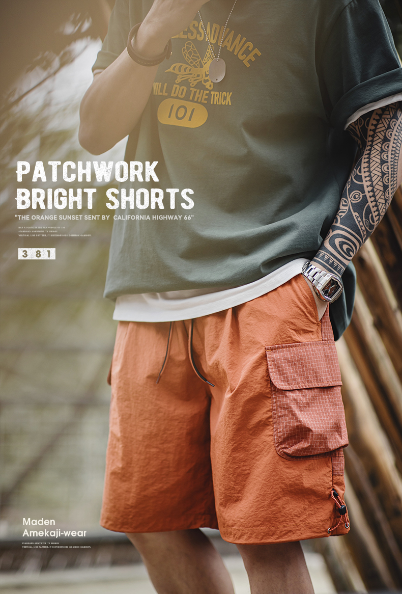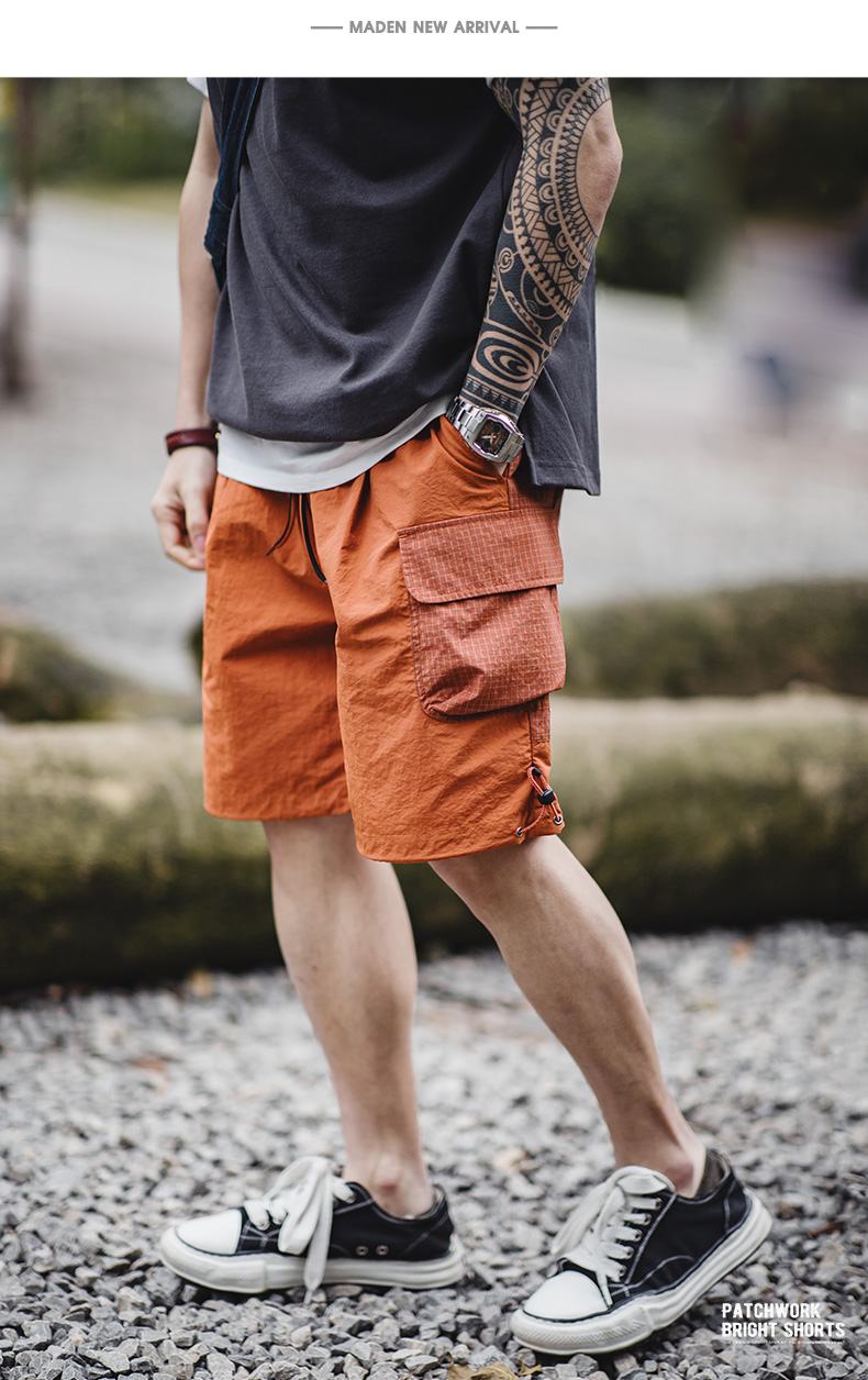 工装优选美式复古落日橘直筒短裤多巴胺宽松尼龙五分沙滩裤男夏薄