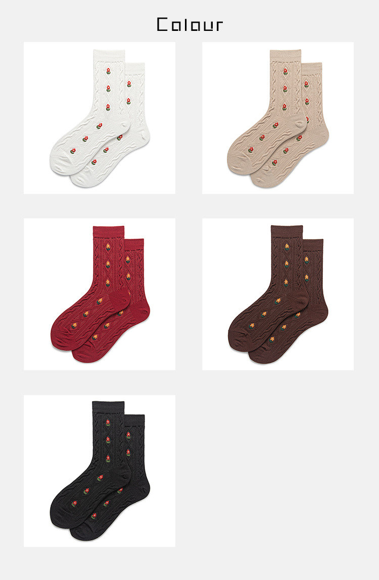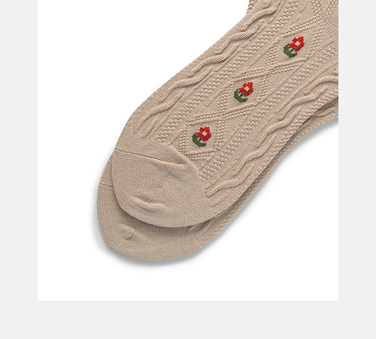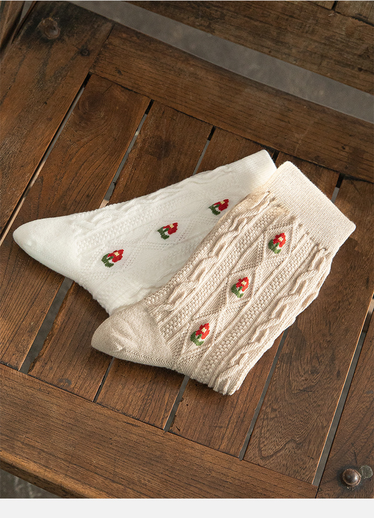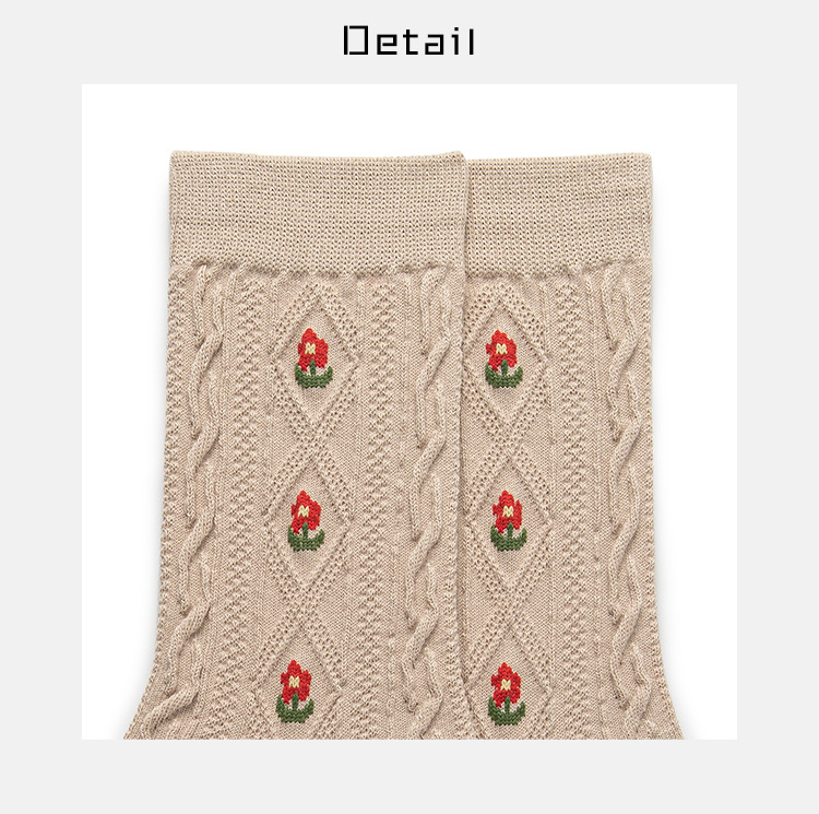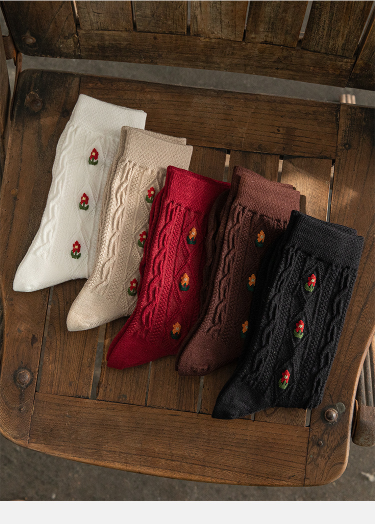 【2双装 优质棉花 不易起球】棉花精神韩国袜子麻花纹针织中筒棉袜秋冬季复古小碎花泫雅风女袜