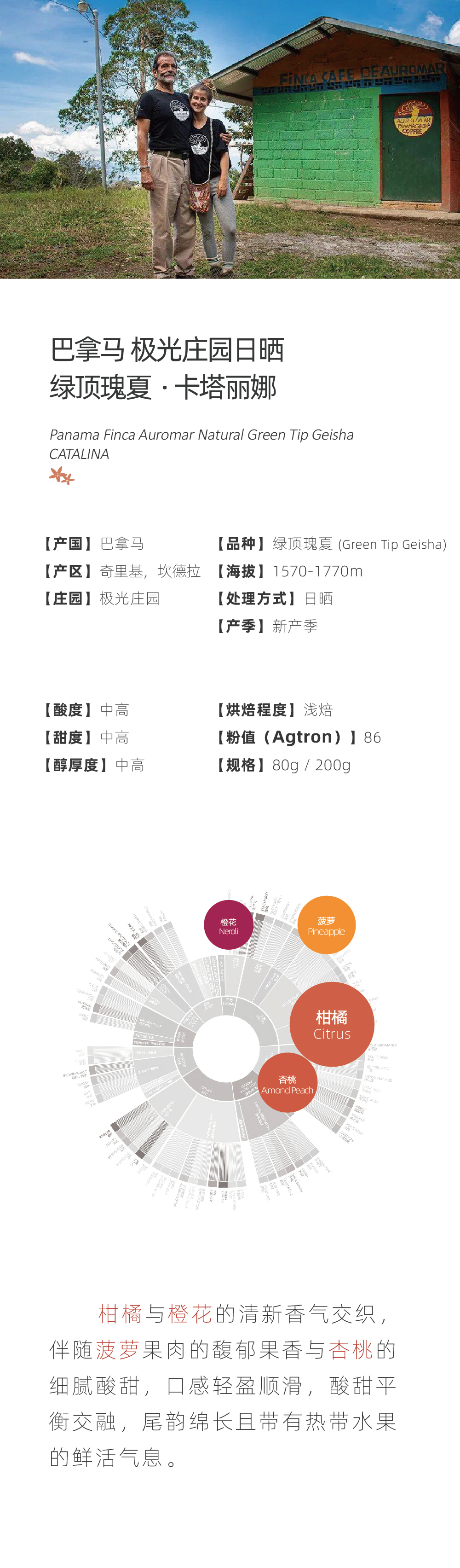 巴拿马极光庄园卡塔丽娜绿顶瑰夏日晒手冲咖啡豆