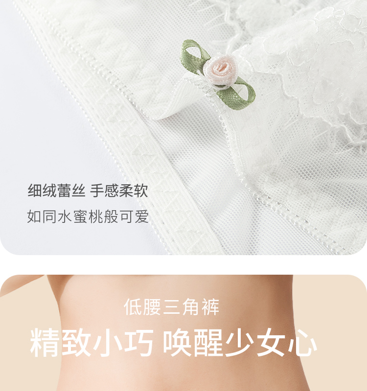 奶糖派白桃配套内裤雪绒蕾丝小裤柔软亲肤低腰三角裤女