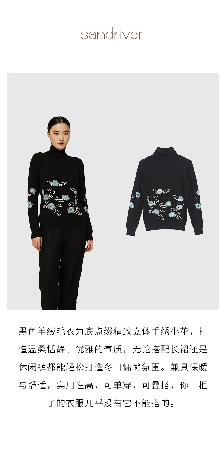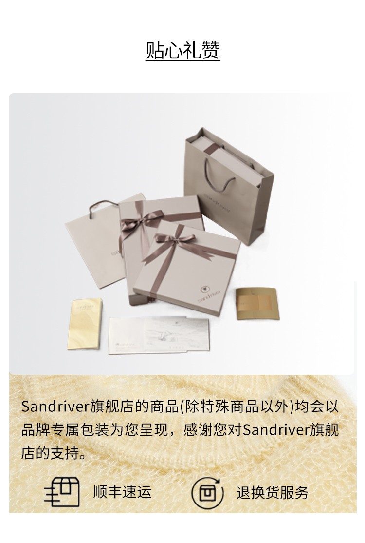 历年在巴黎时装周亮相,享誉世界的艺术羊绒品牌[Sandriver 沙涓]由羊绒布道者郭秀玲女士创立。阿拉善自有牧场纯种羔羊绒,日本国宝设计师小筱顺子,上海自有基地精工细作。承载羊绒情怀,坚持匠人品质。