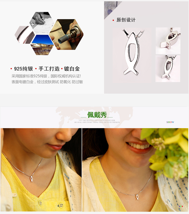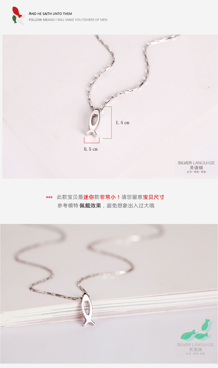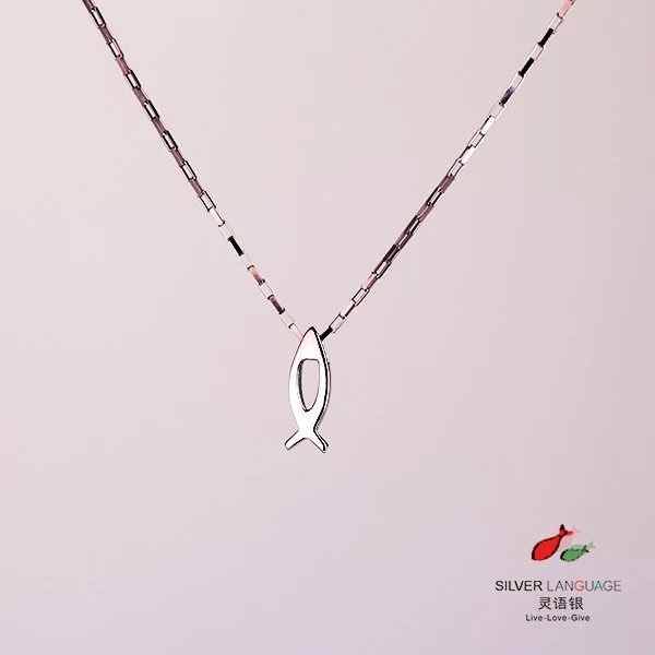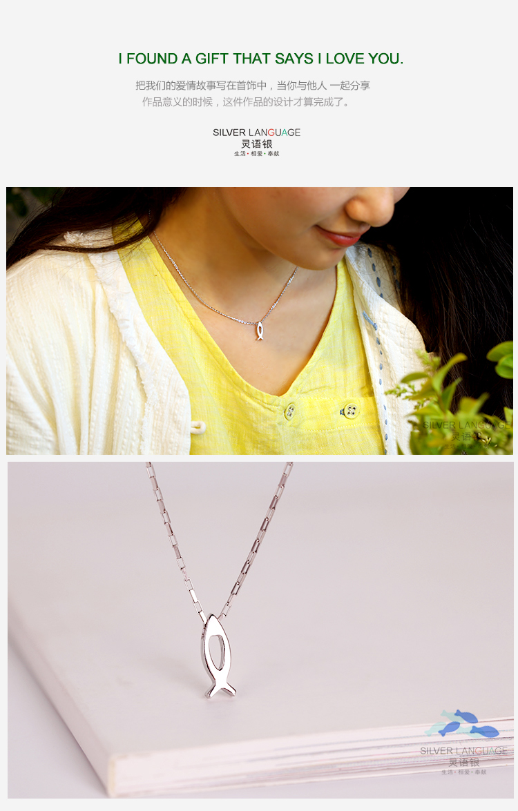 925纯银小鱼女款项链,搭配45cm圆圈链,时尚吊坠,手工打造,镀白金项坠,礼盒装