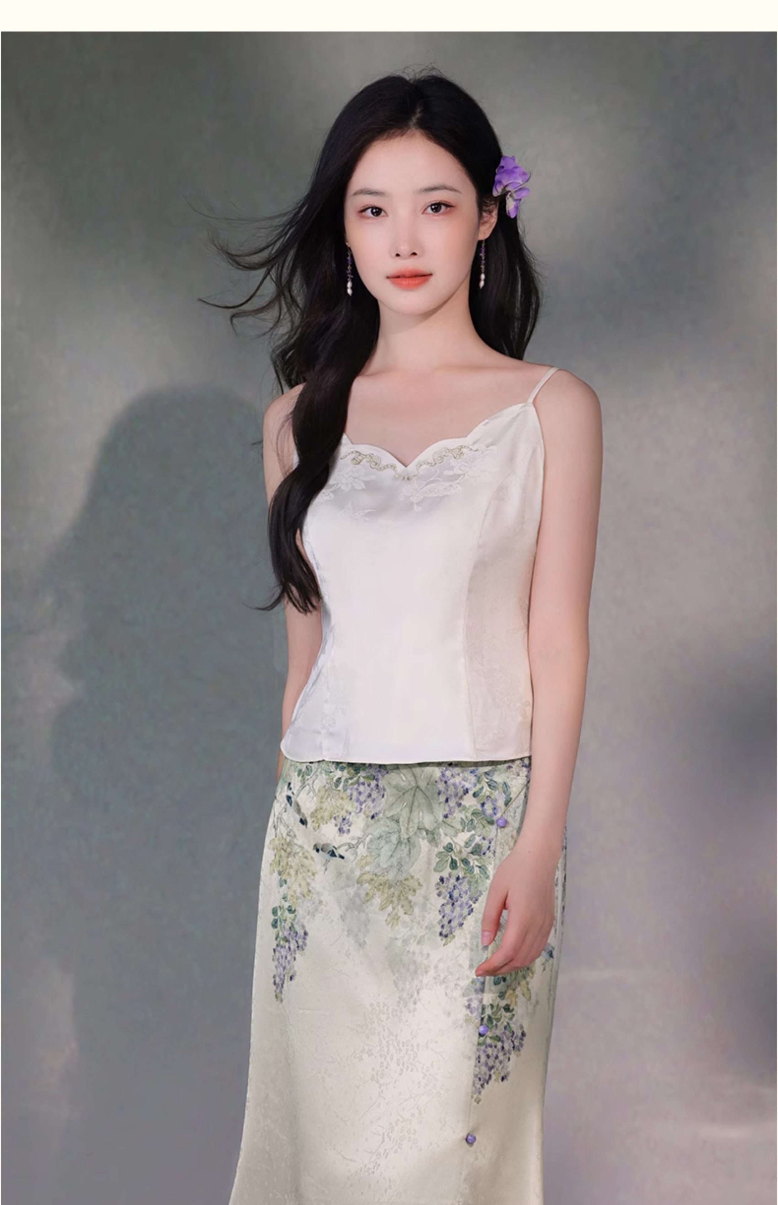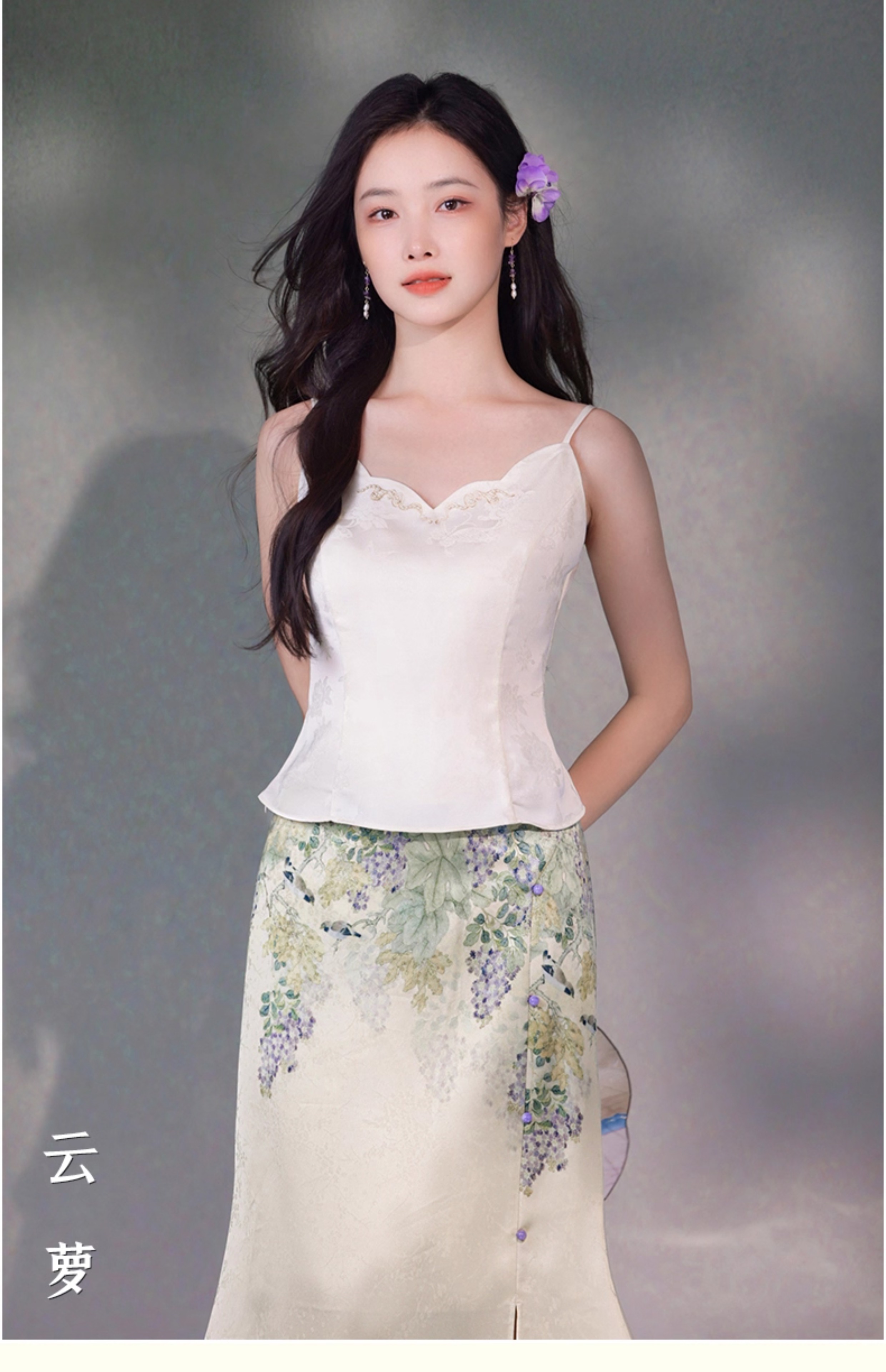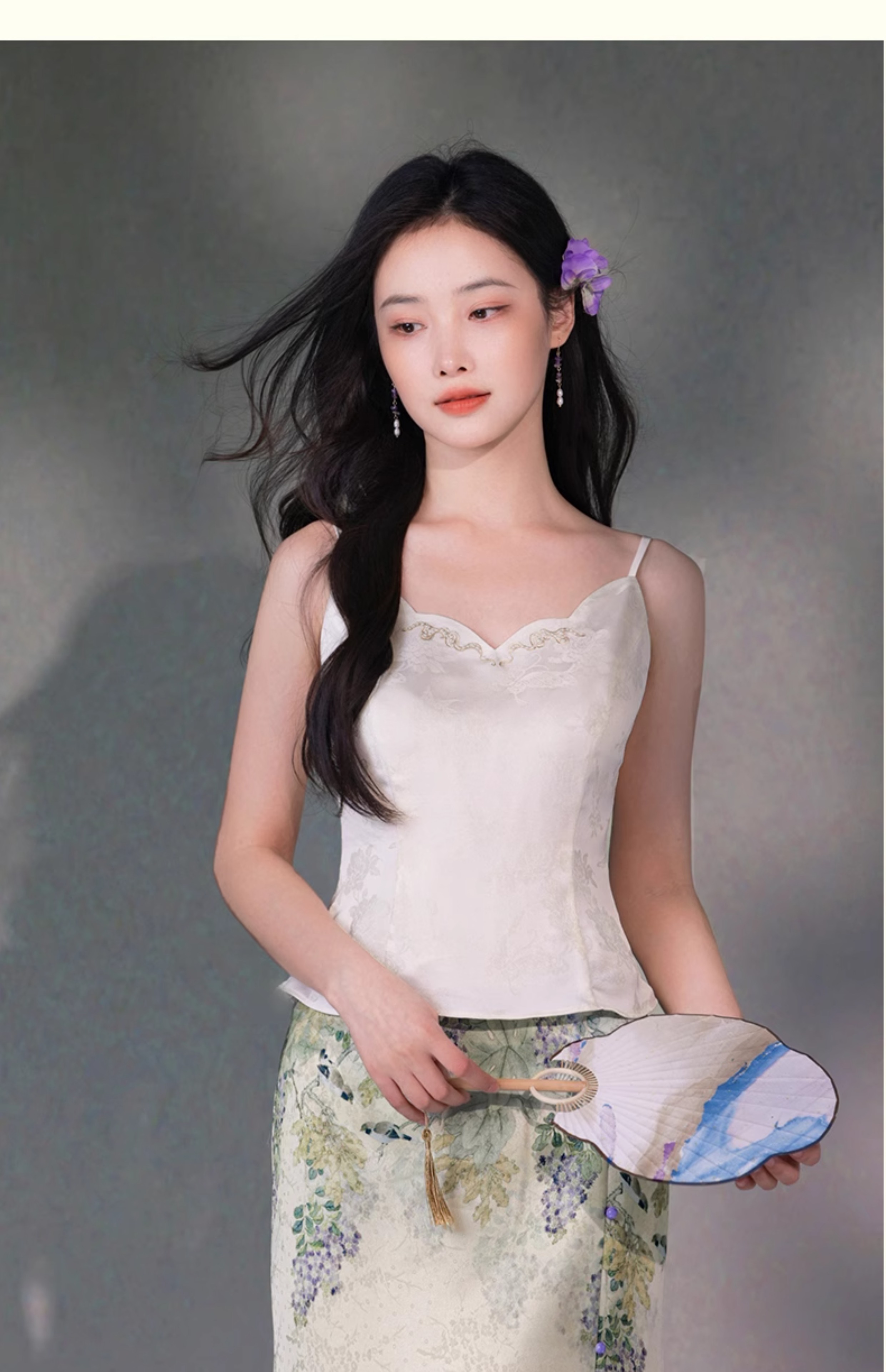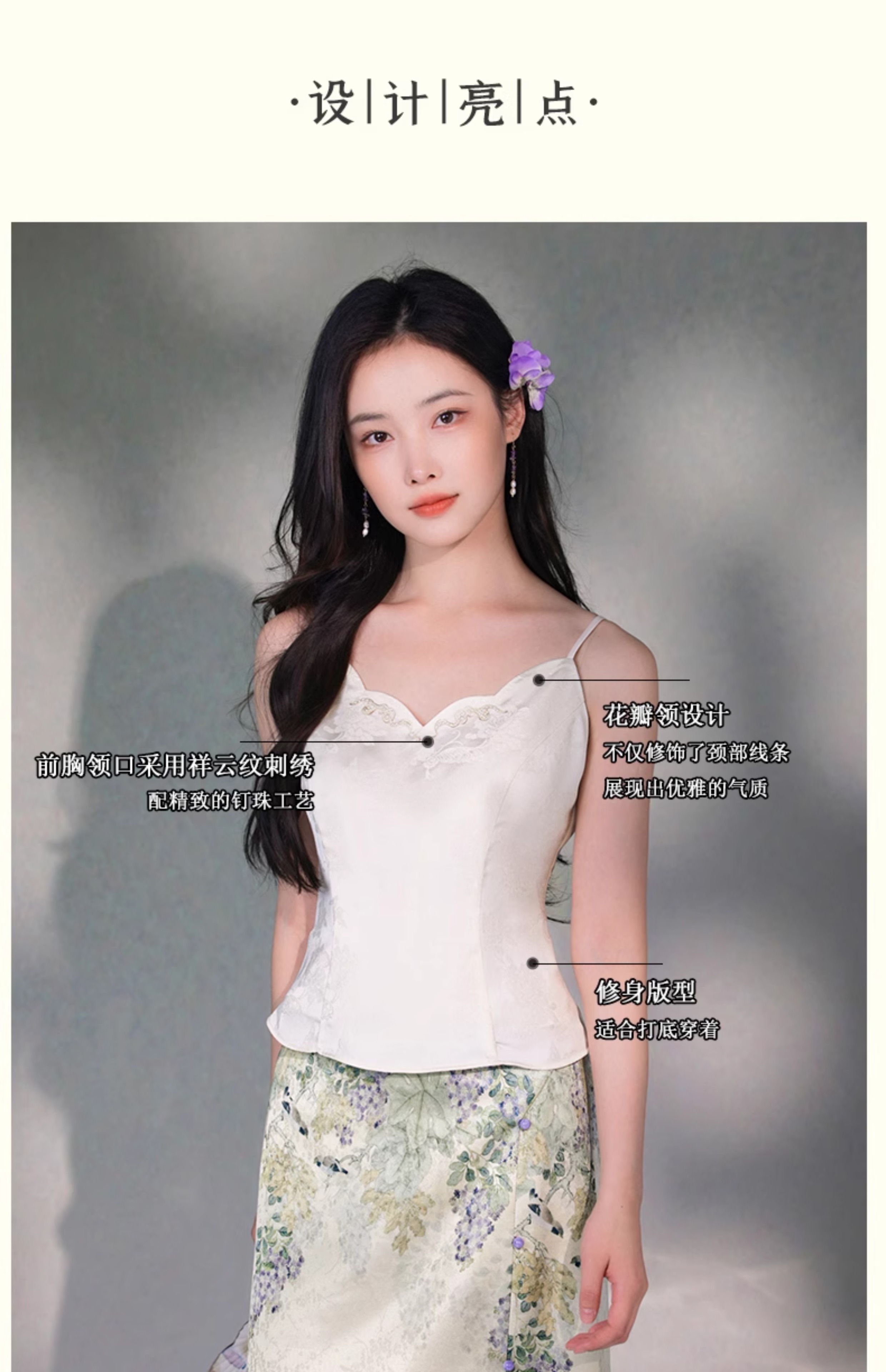 逸红颜 云萝 2025夏新款花瓣领祥云纹刺绣钉珠新中式吊带上衣女