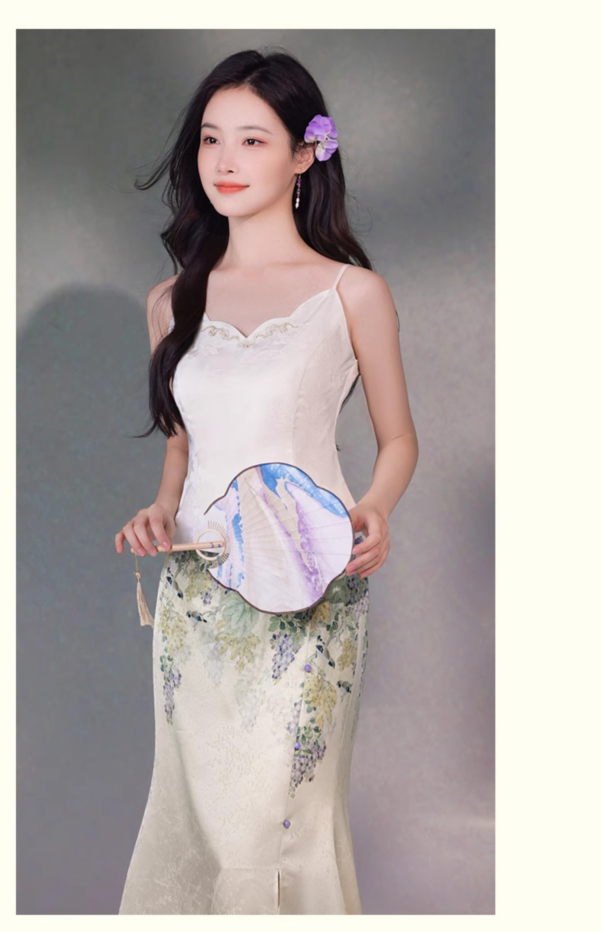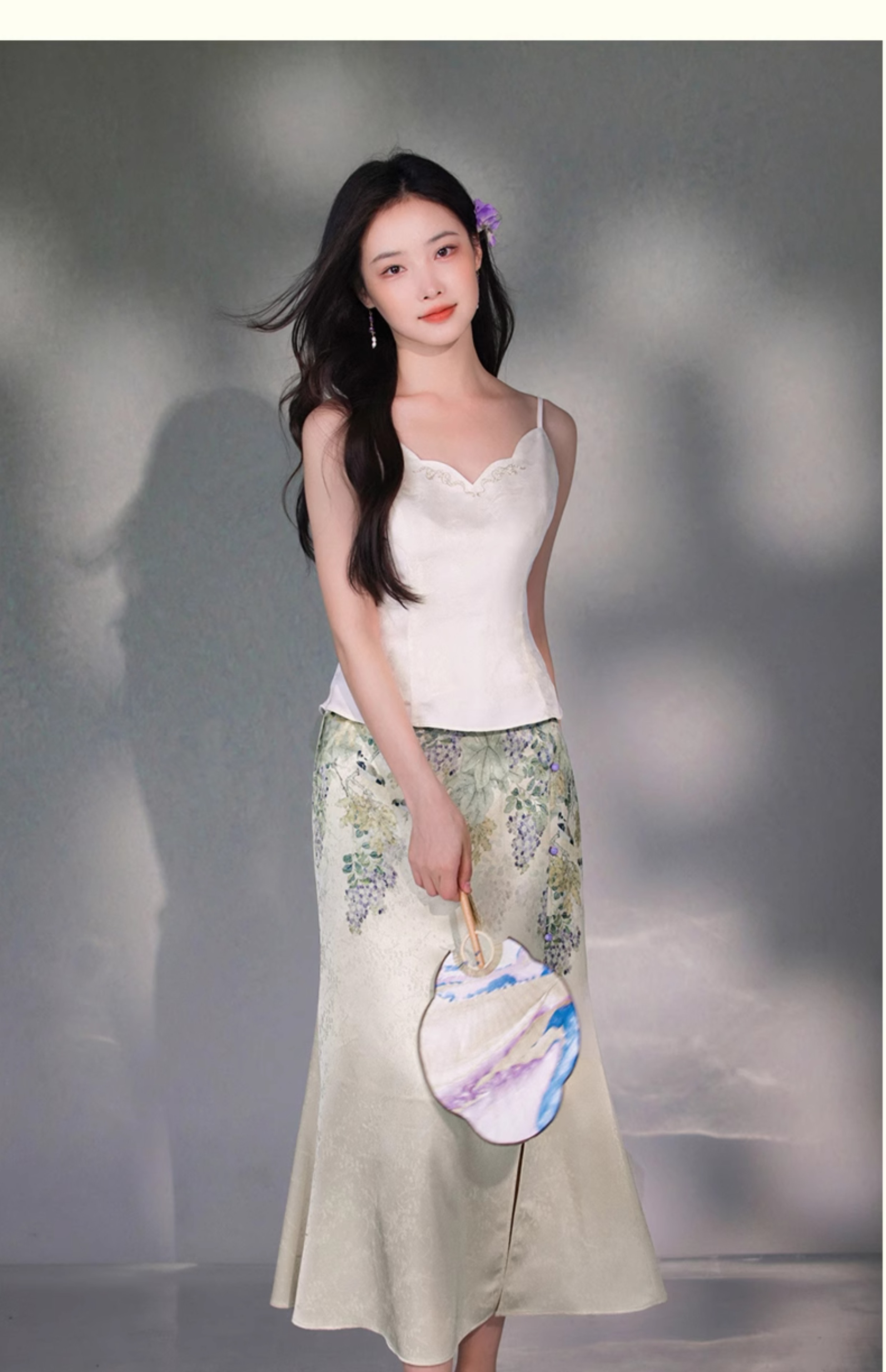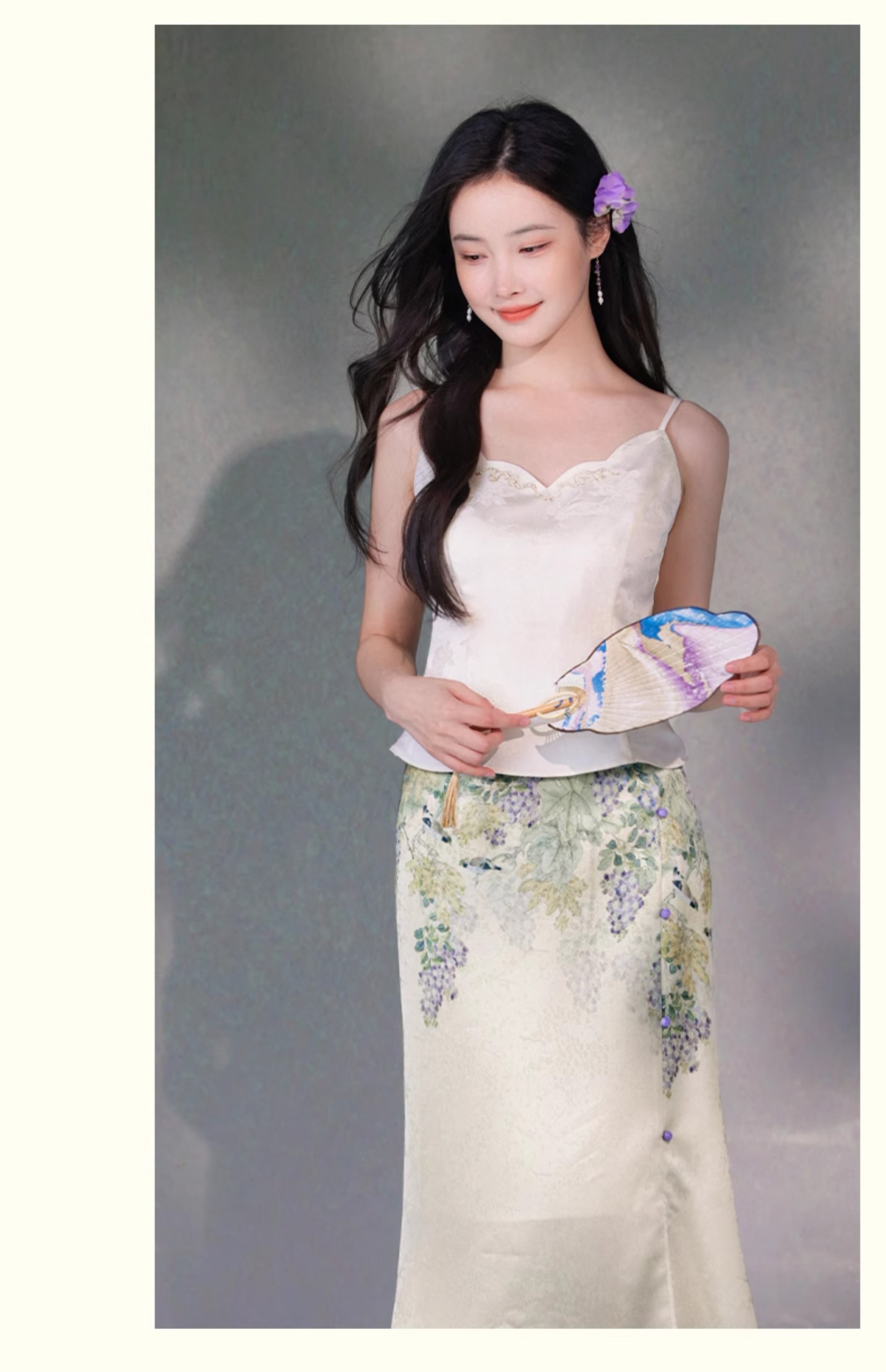 逸红颜 云萝 2025夏新款花瓣领祥云纹刺绣钉珠新中式吊带上衣女