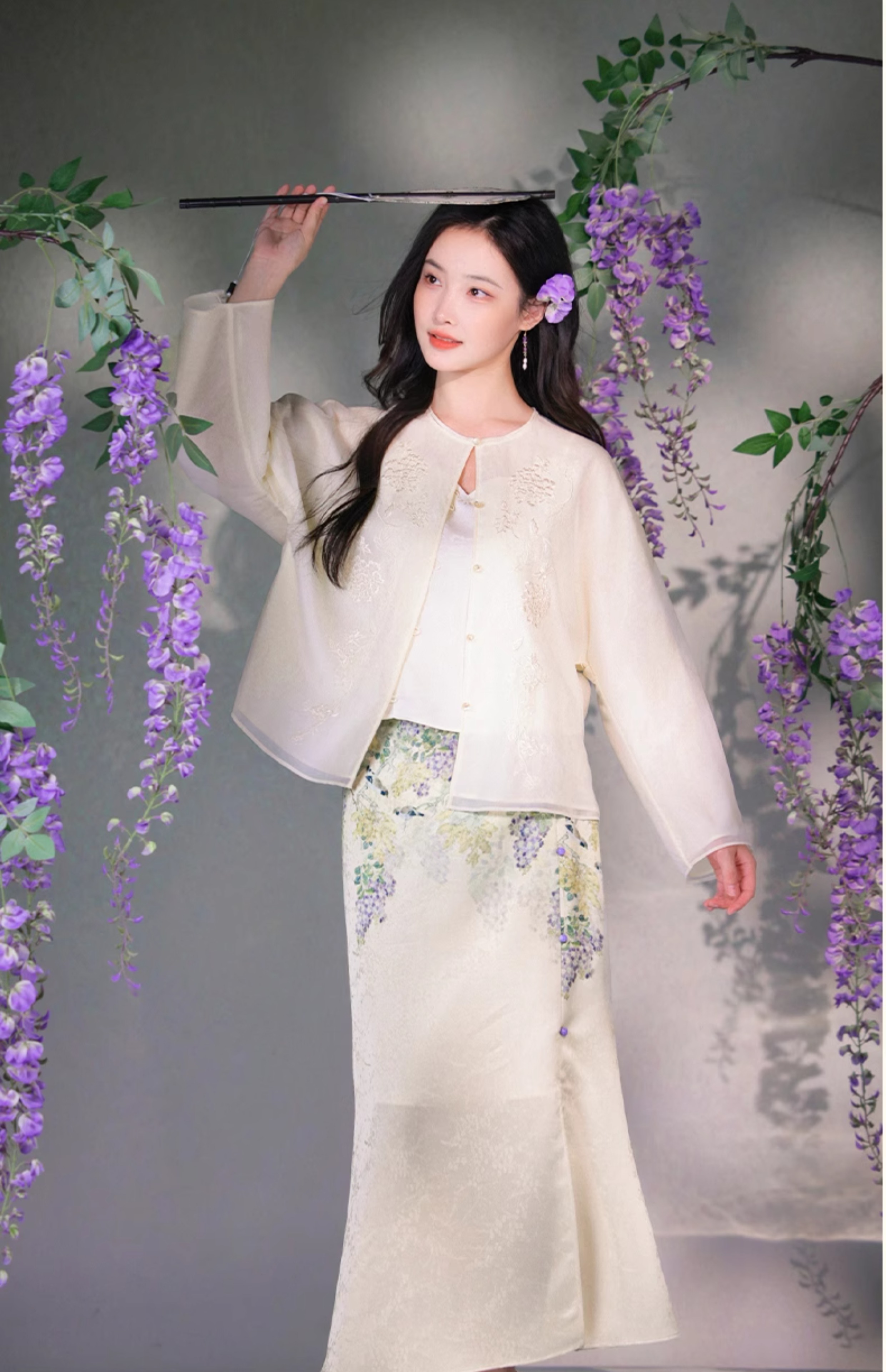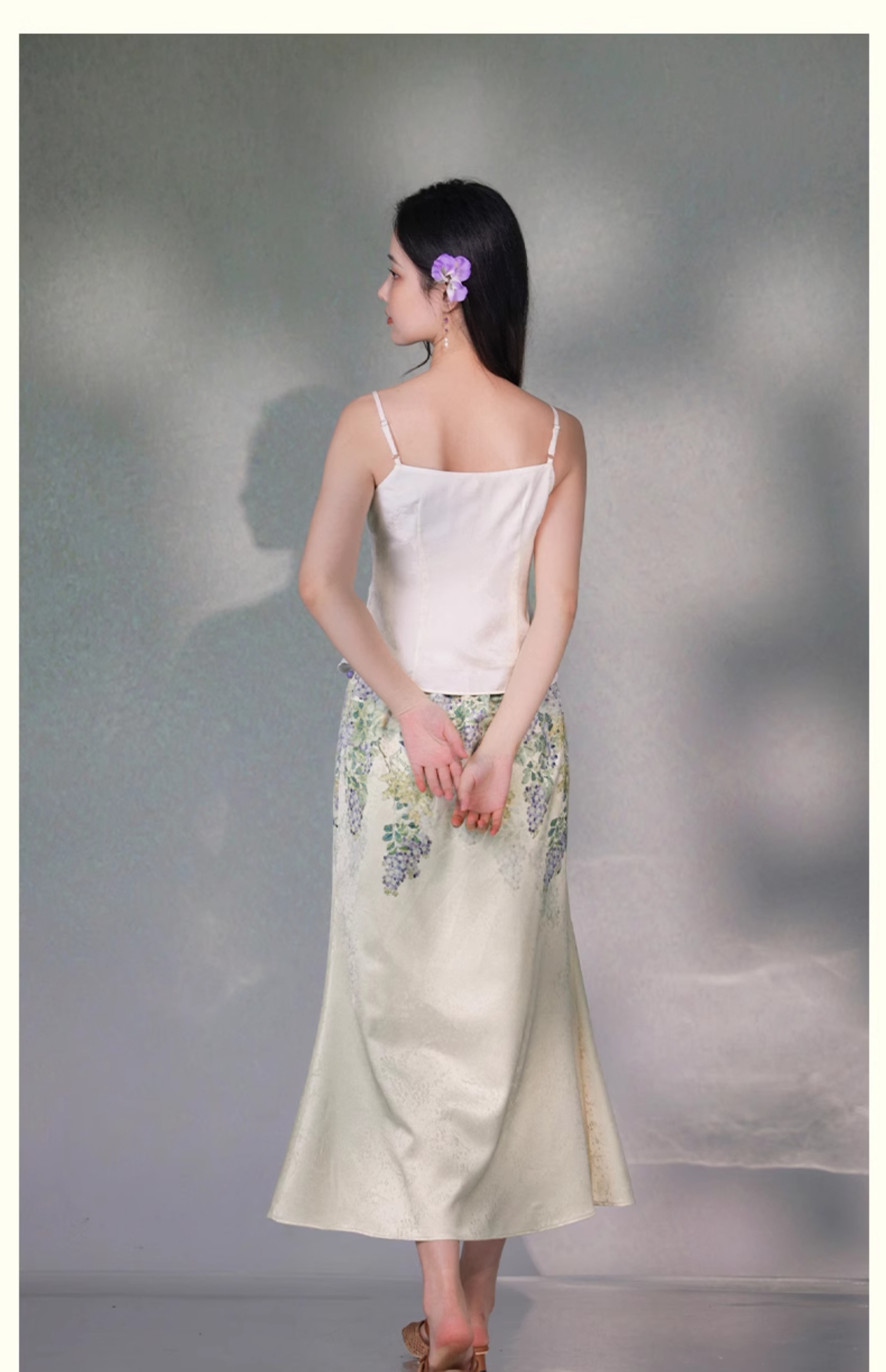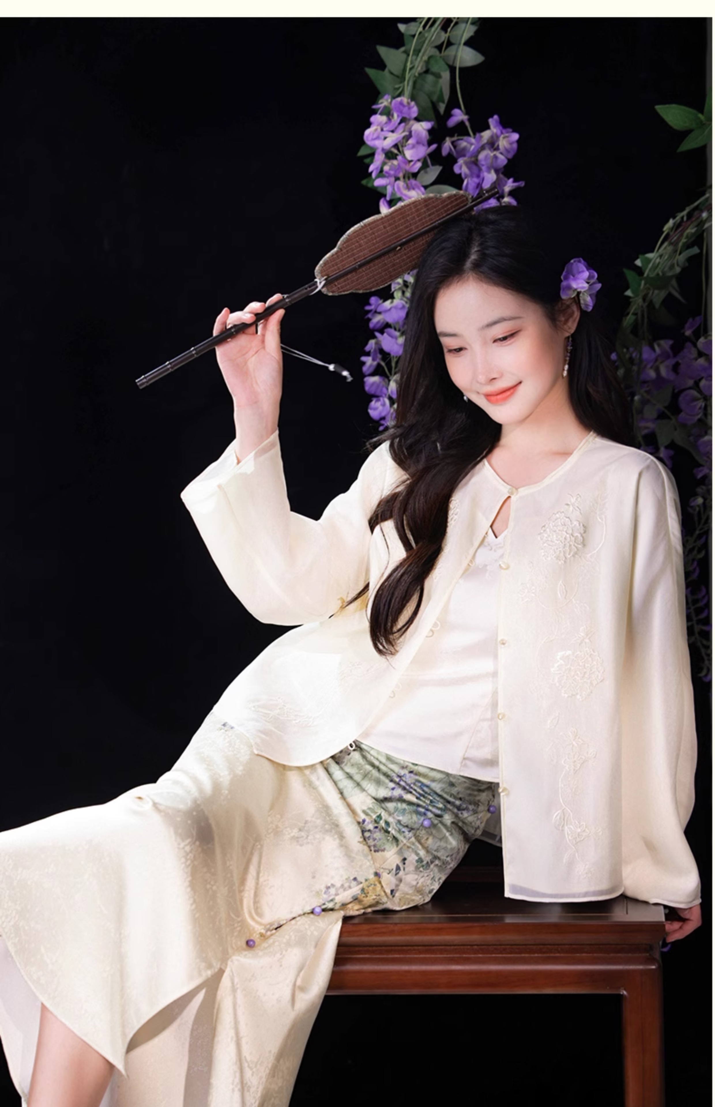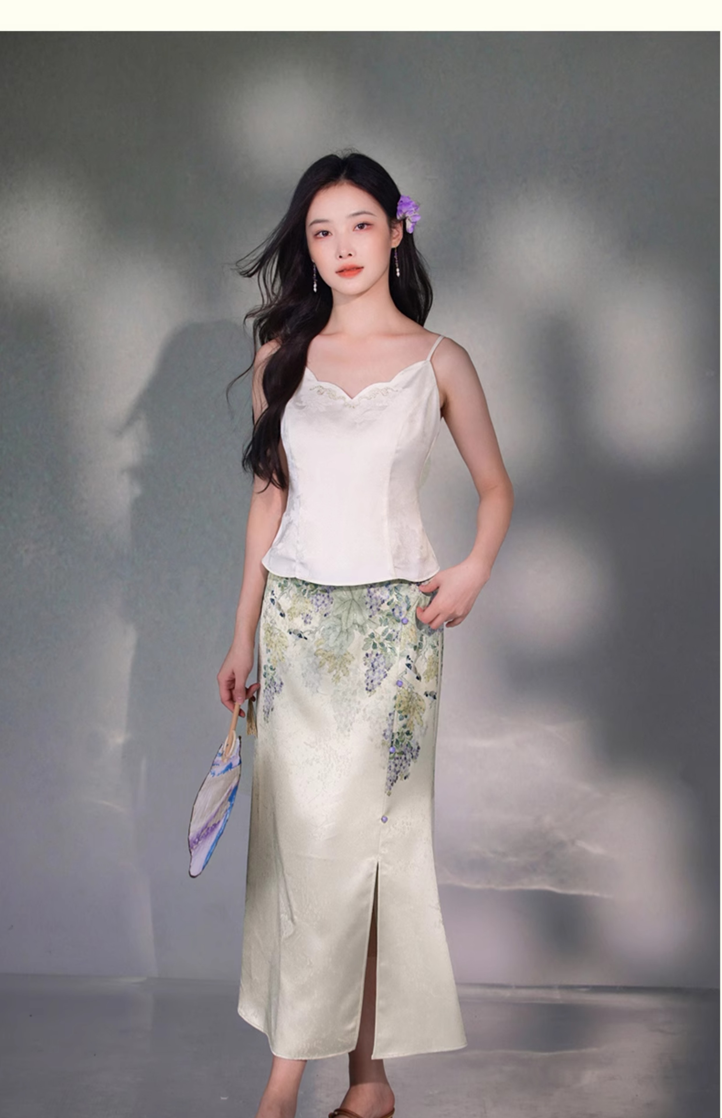 逸红颜 云萝 2025夏新款花瓣领祥云纹刺绣钉珠新中式吊带上衣女
