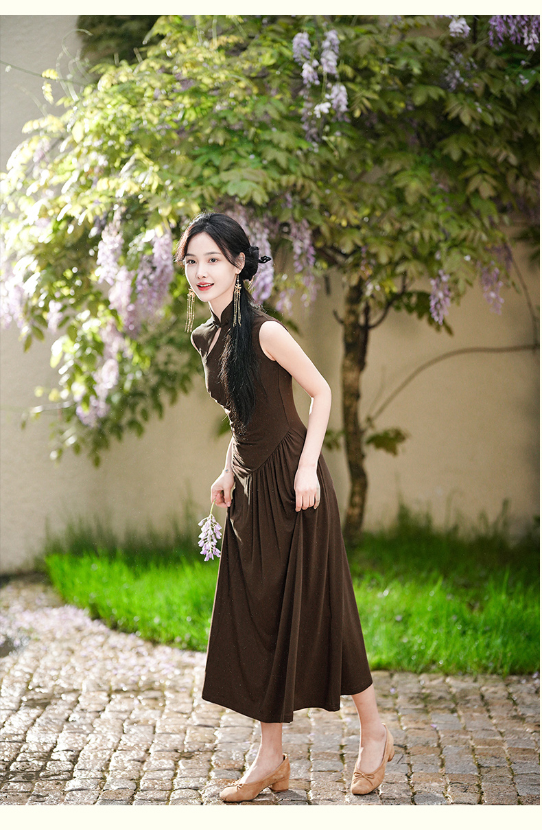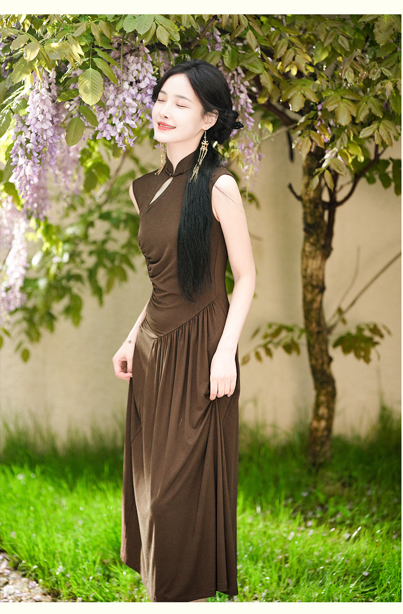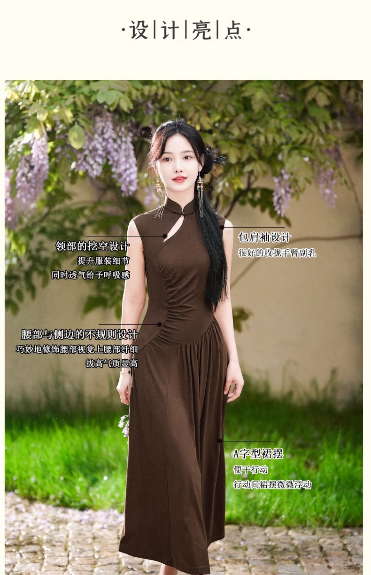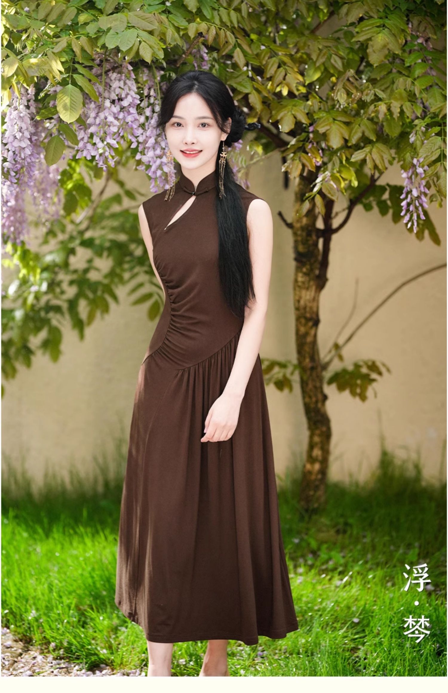 逸红颜浮棽2025年夏季新款针织新中式抽褶显瘦旗袍改良连衣裙女