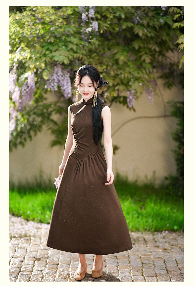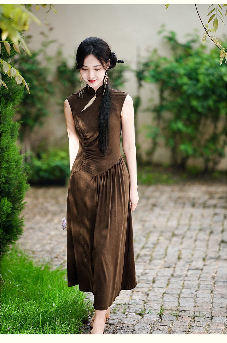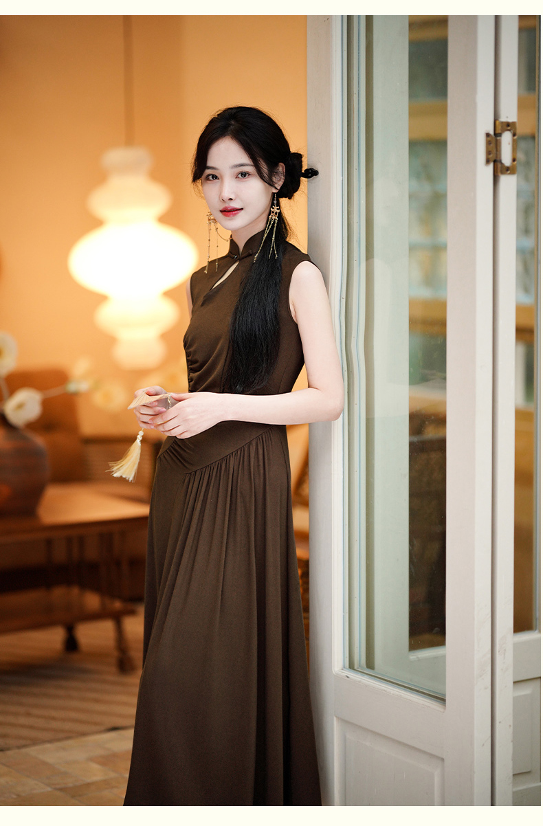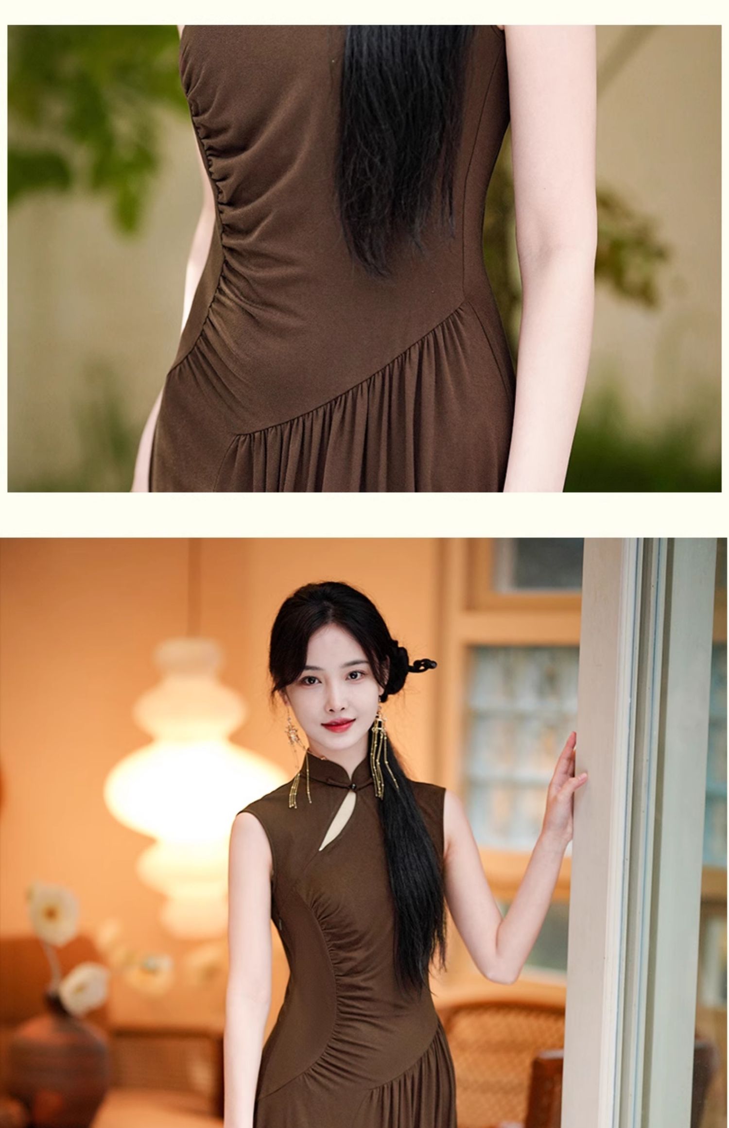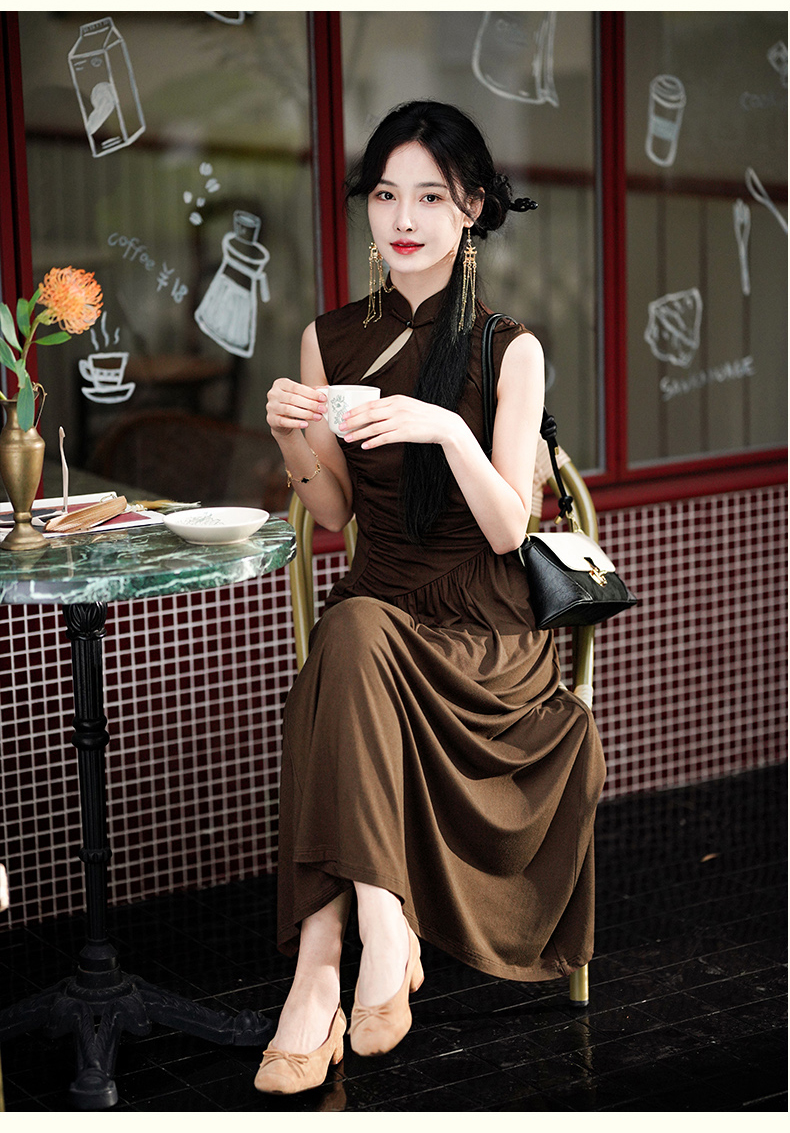 逸红颜浮棽2025年夏季新款针织新中式抽褶显瘦旗袍改良连衣裙女
