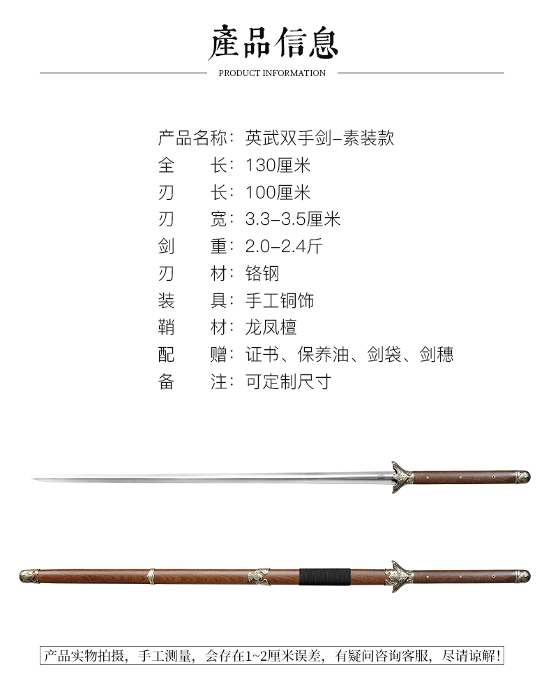 英武双手剑 素装 八卦剑 螳螂剑 长剑 双手练习刀剑 沈广隆剑 未开刃