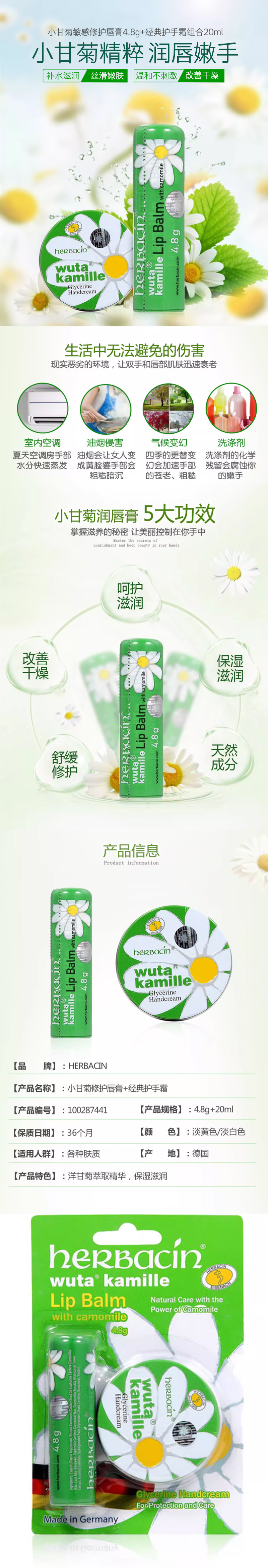 小甘菊敏感修护唇膏+经典护手霜组合4.8g+20ml【30157583】