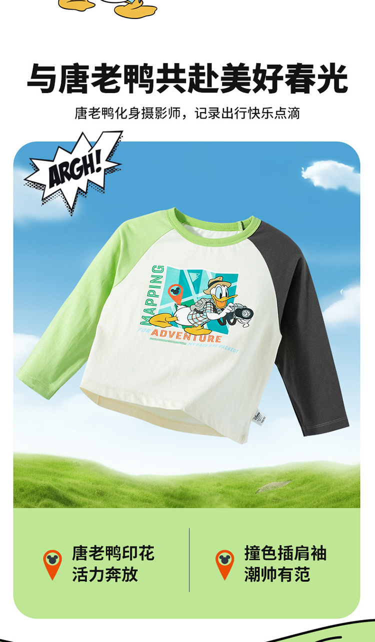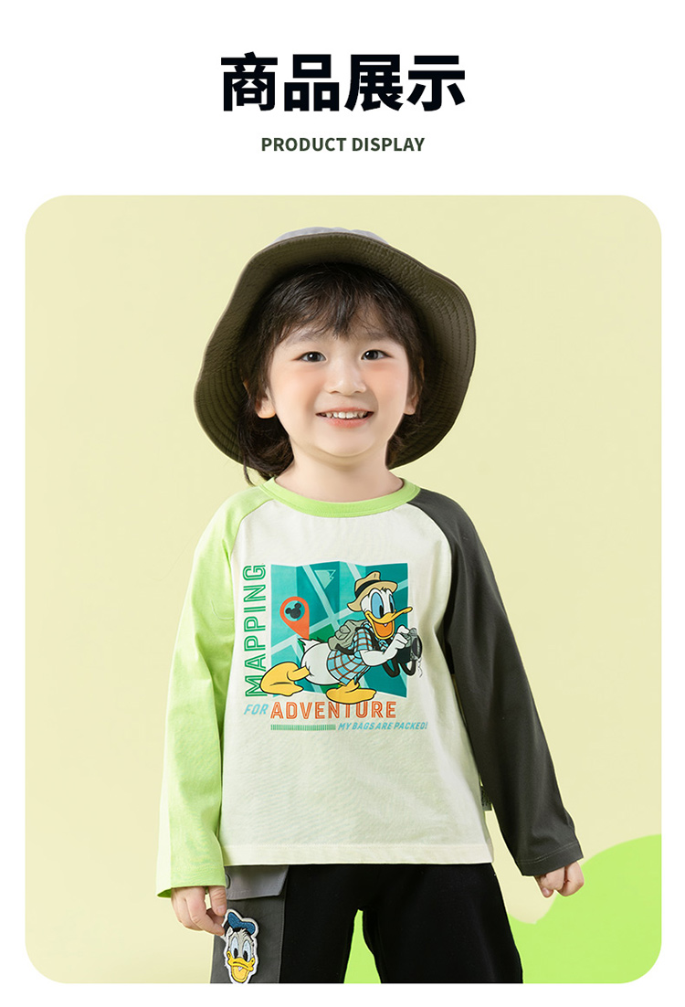 迪士尼春秋男童长袖T恤纯棉卡通打底上衣居家空调服长袖T恤ZD1ES020