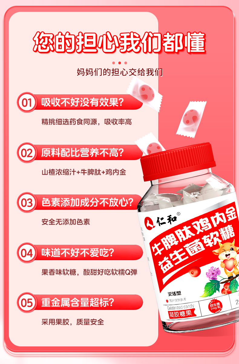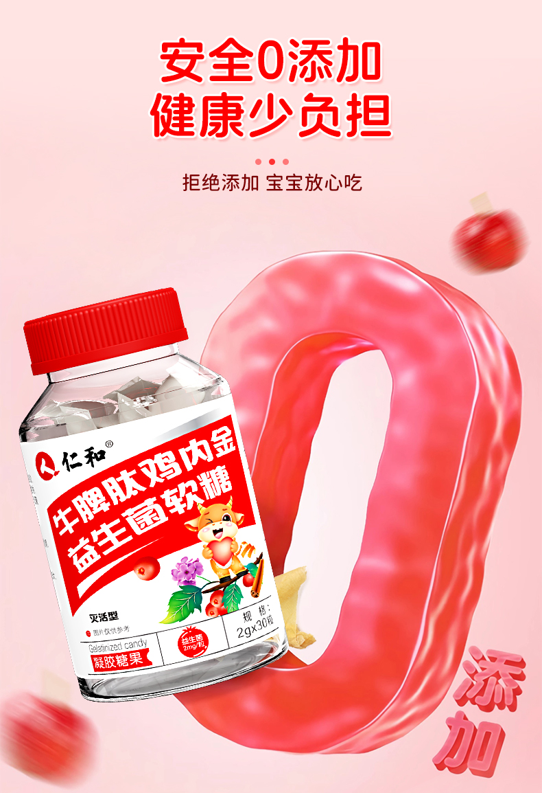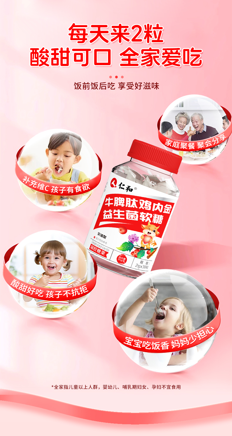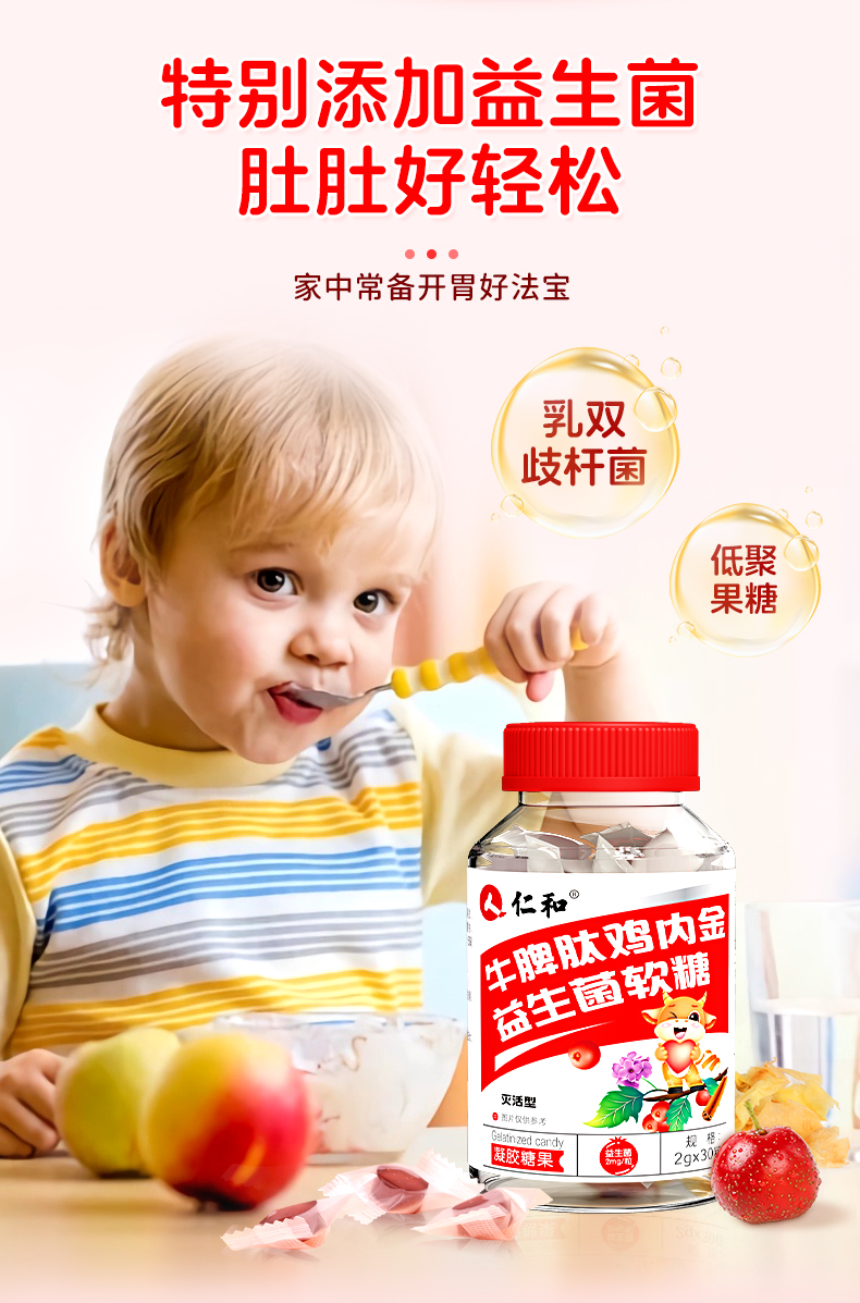 仁和牛脾肽鸡内金益生菌软糖30粒助消化