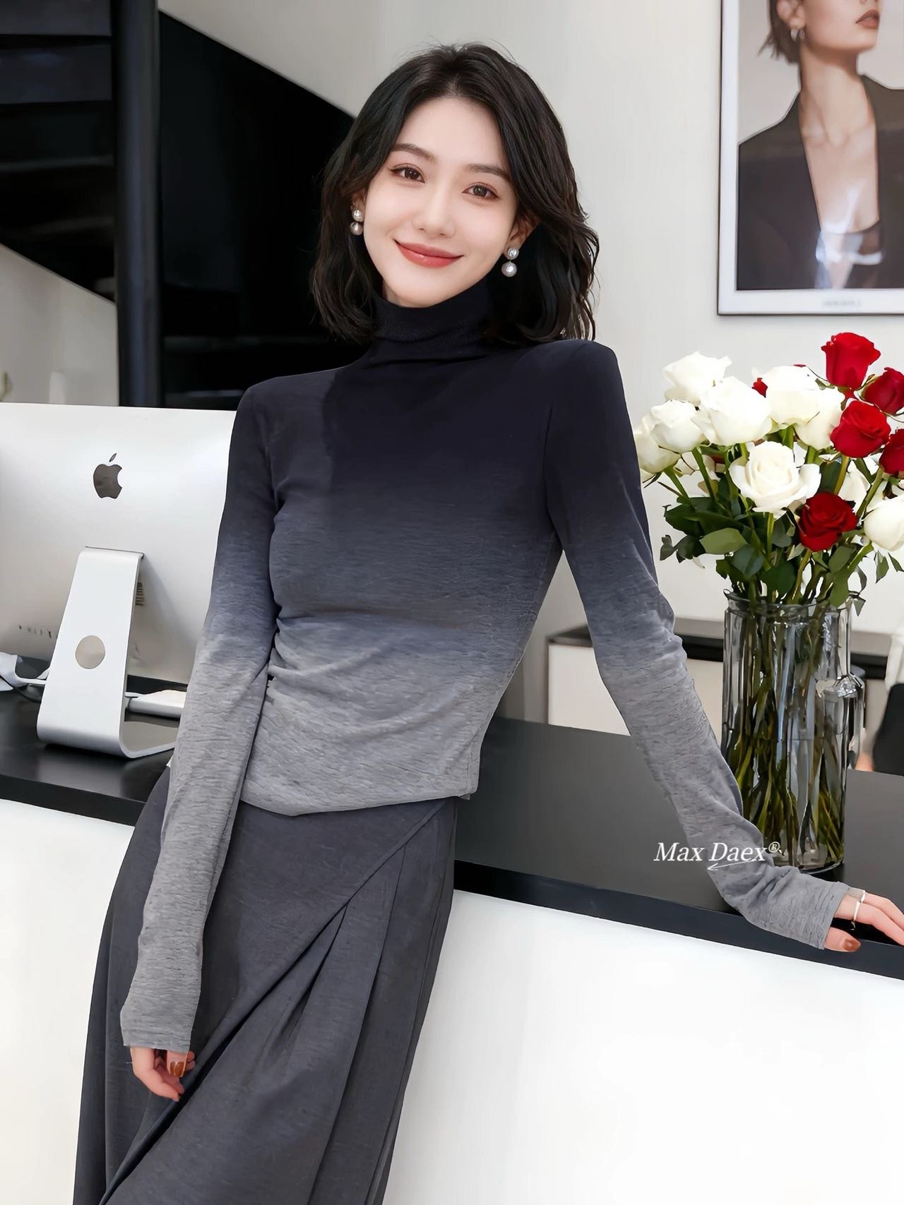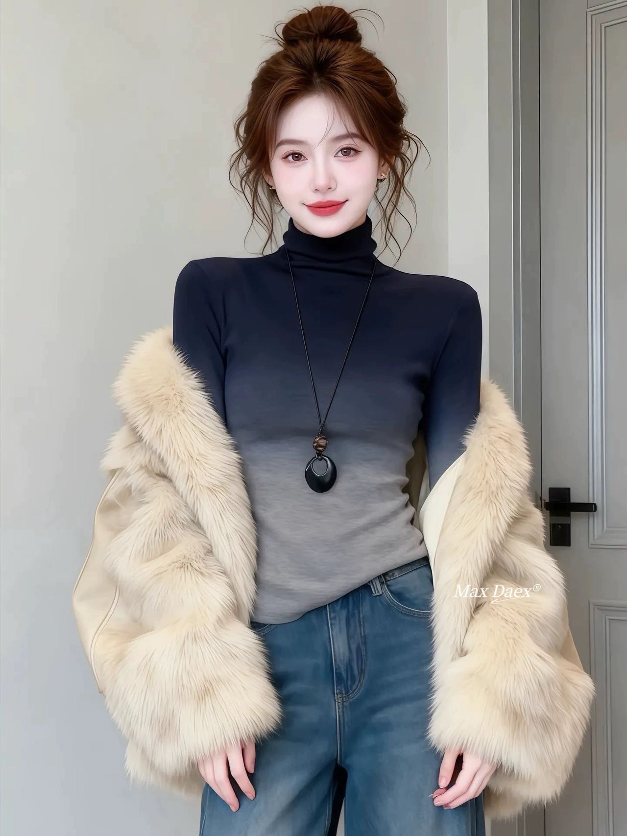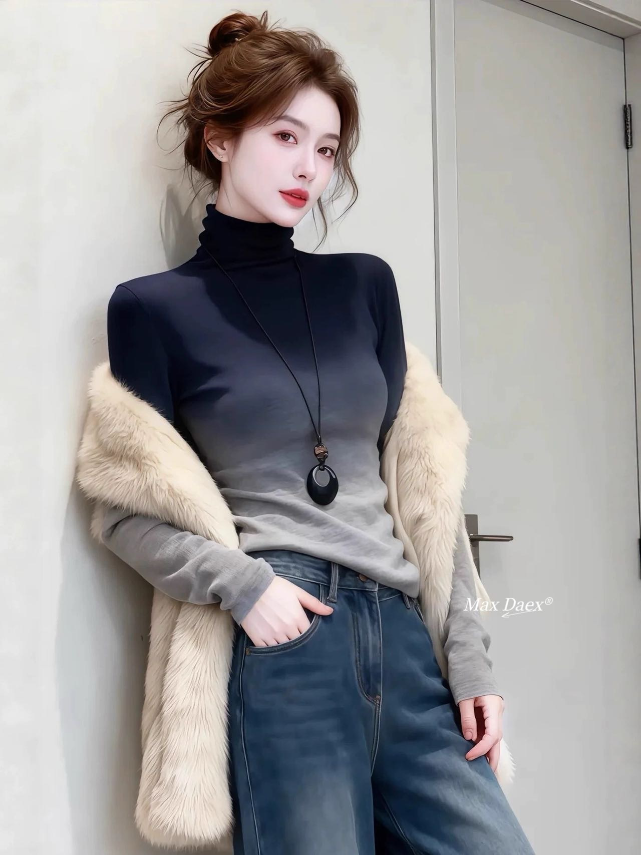 这件渐变高领针织衫真的把氛围感焊在身上了~
