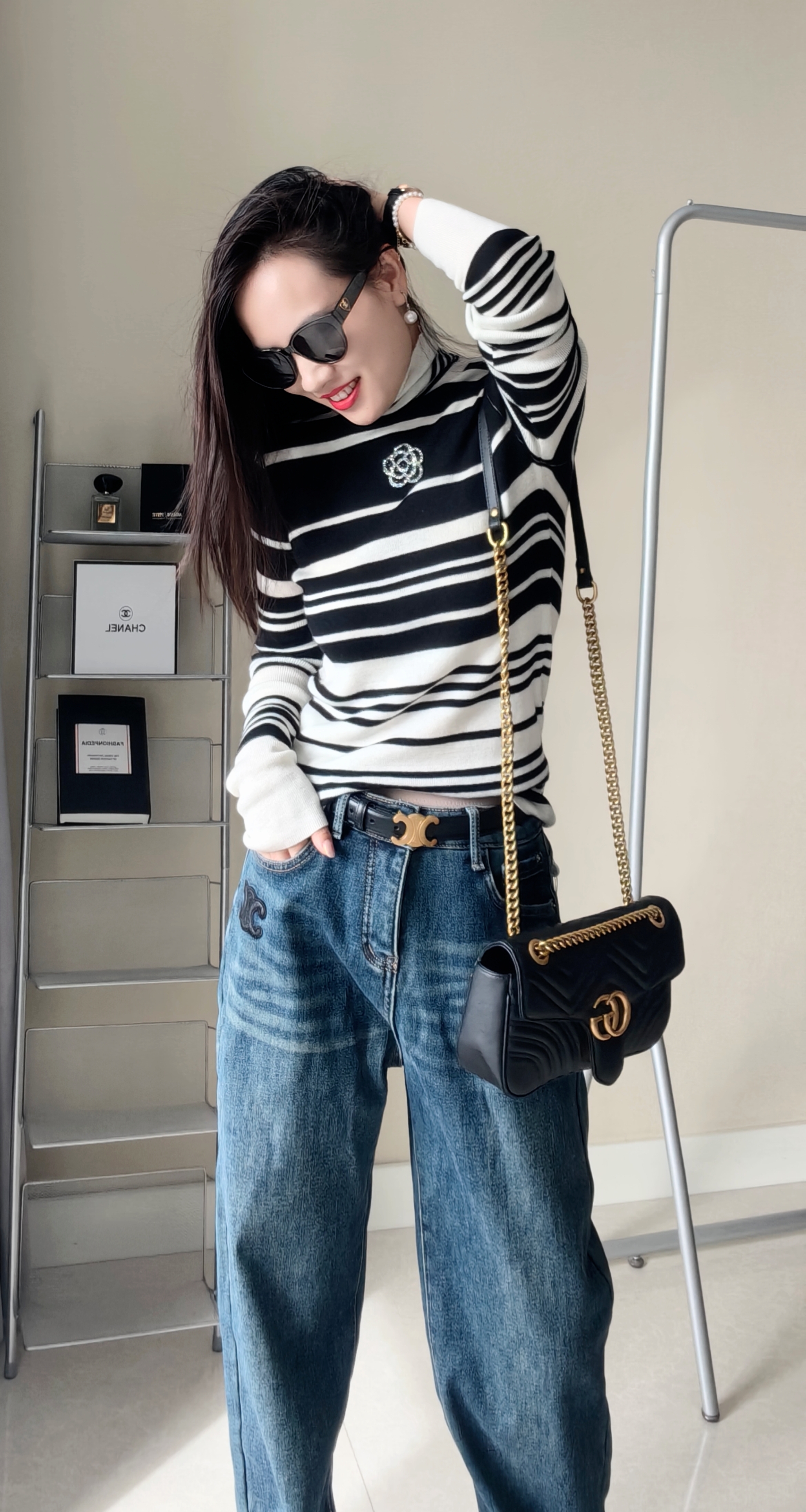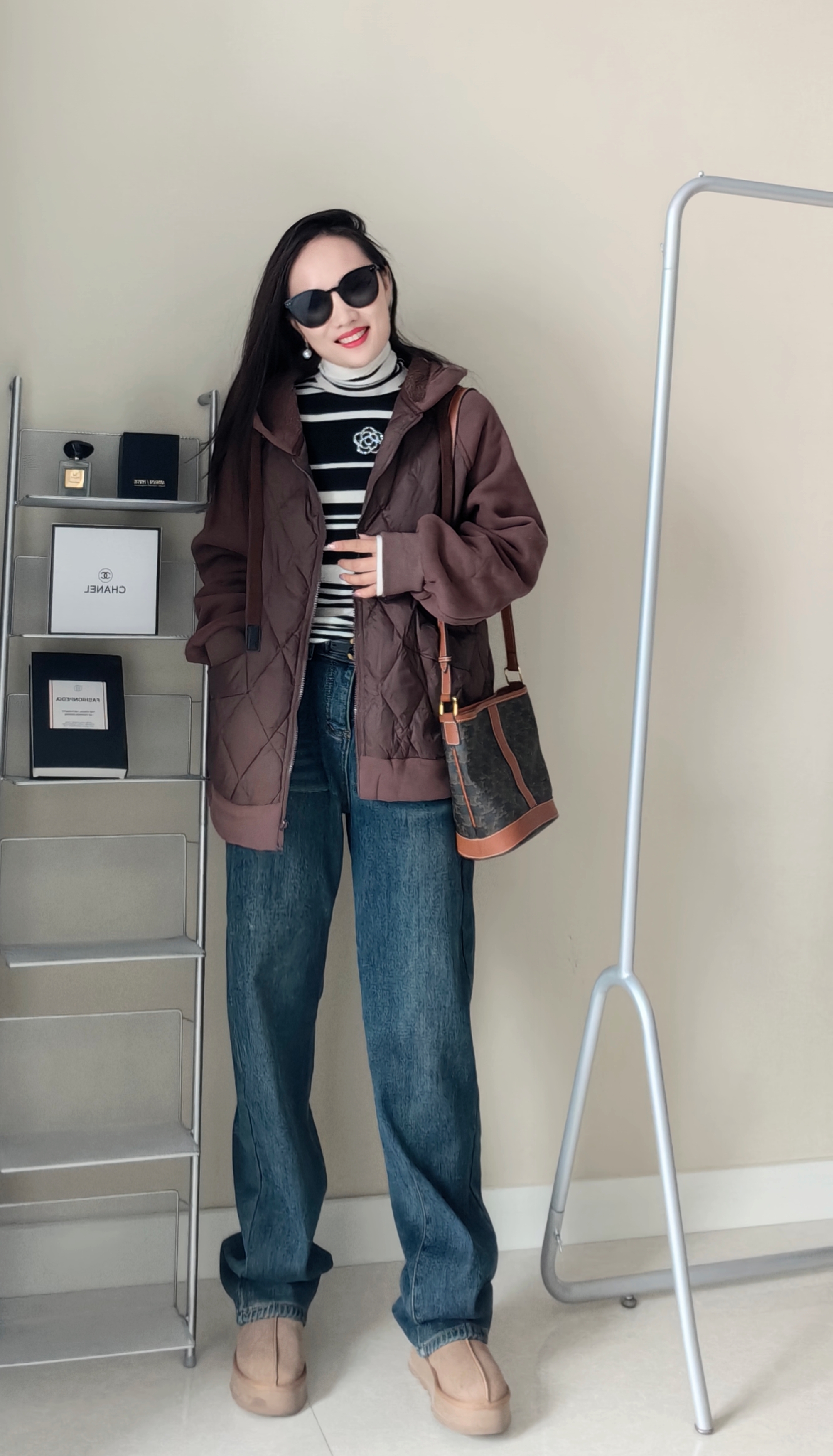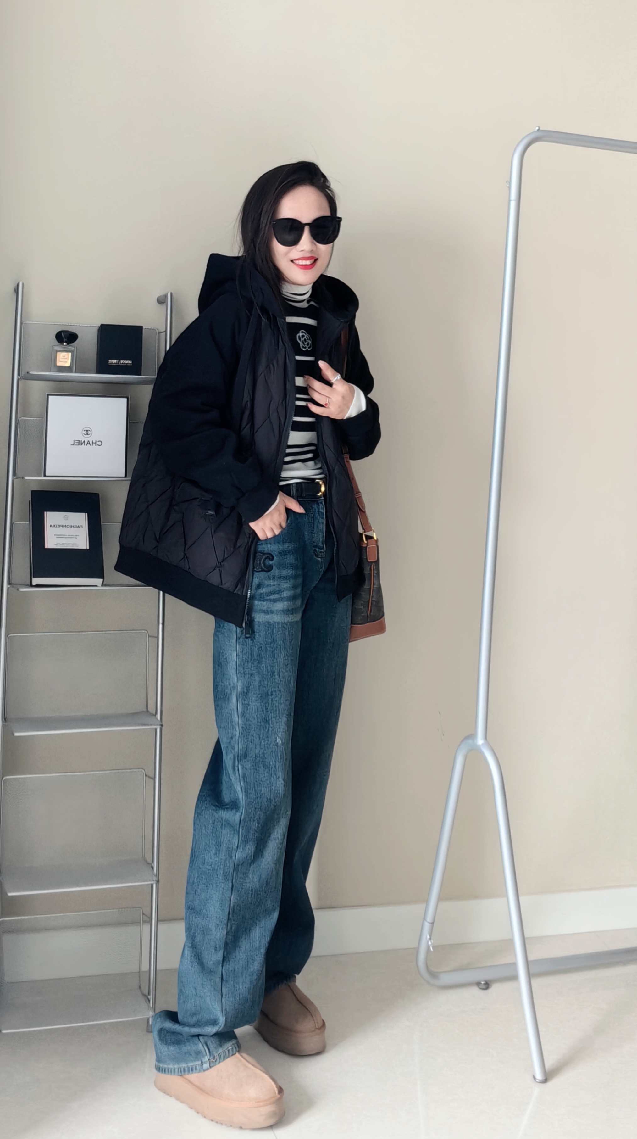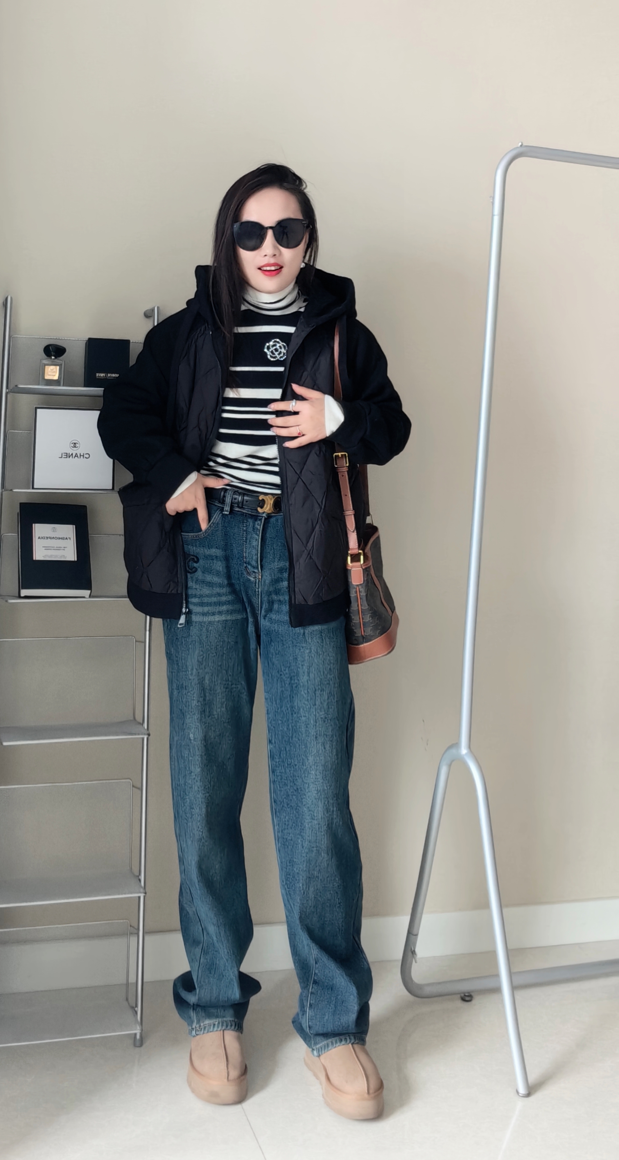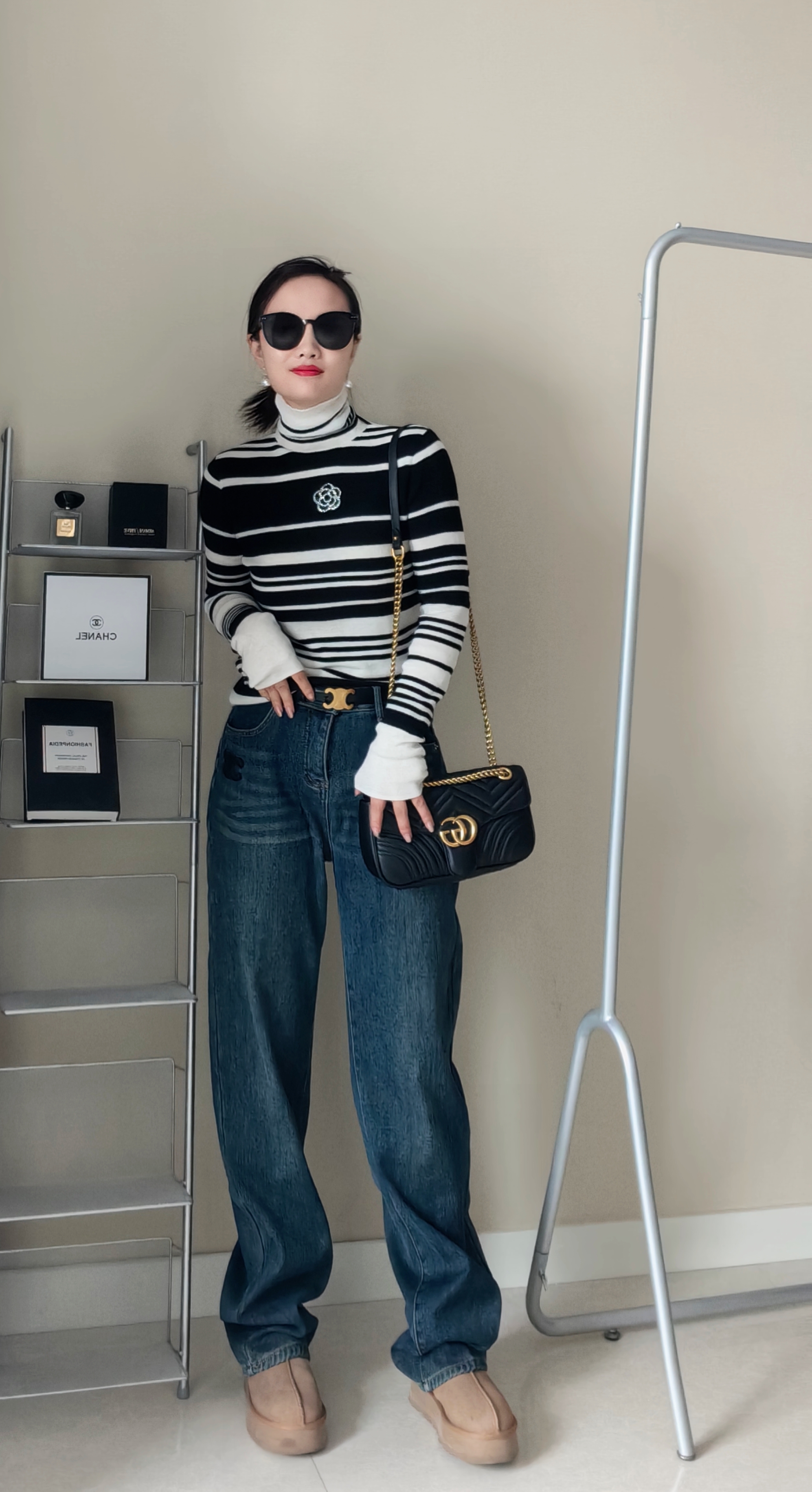 100超细羊毛,非常细腻亲肤,贴身柔和,定位织条纹,版型非常显瘦。
