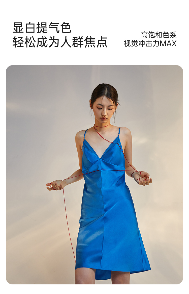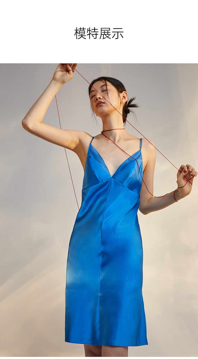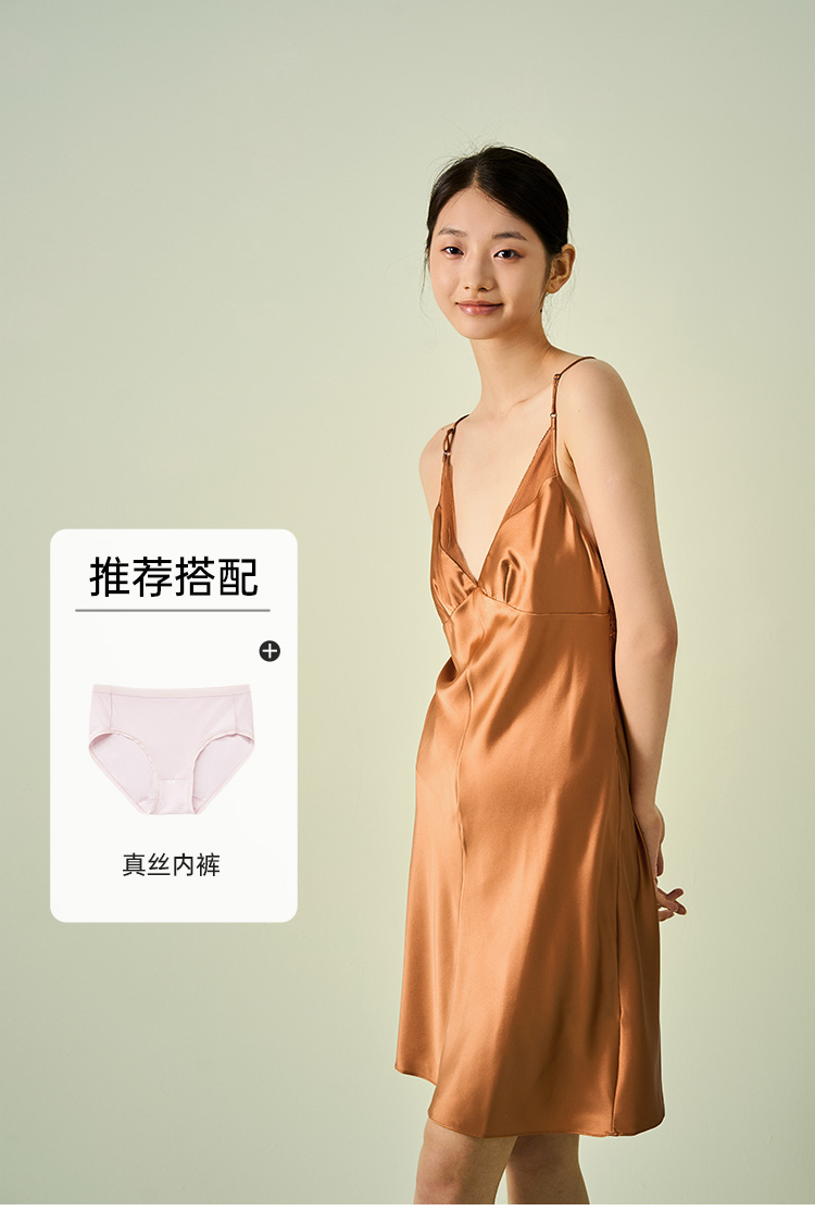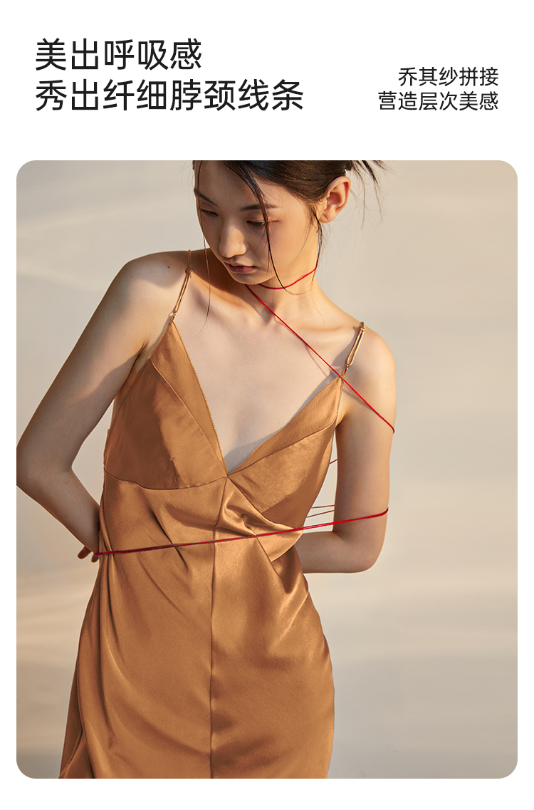 桑罗真丝吊带睡裙女V领露背性感睡衣蕾丝拼接收腰显瘦2024年新款