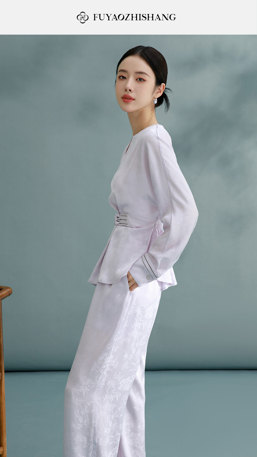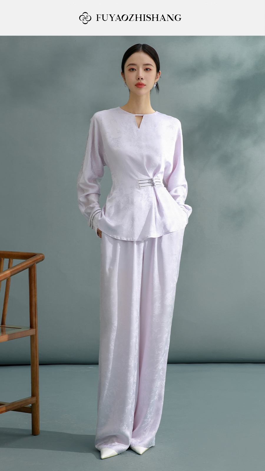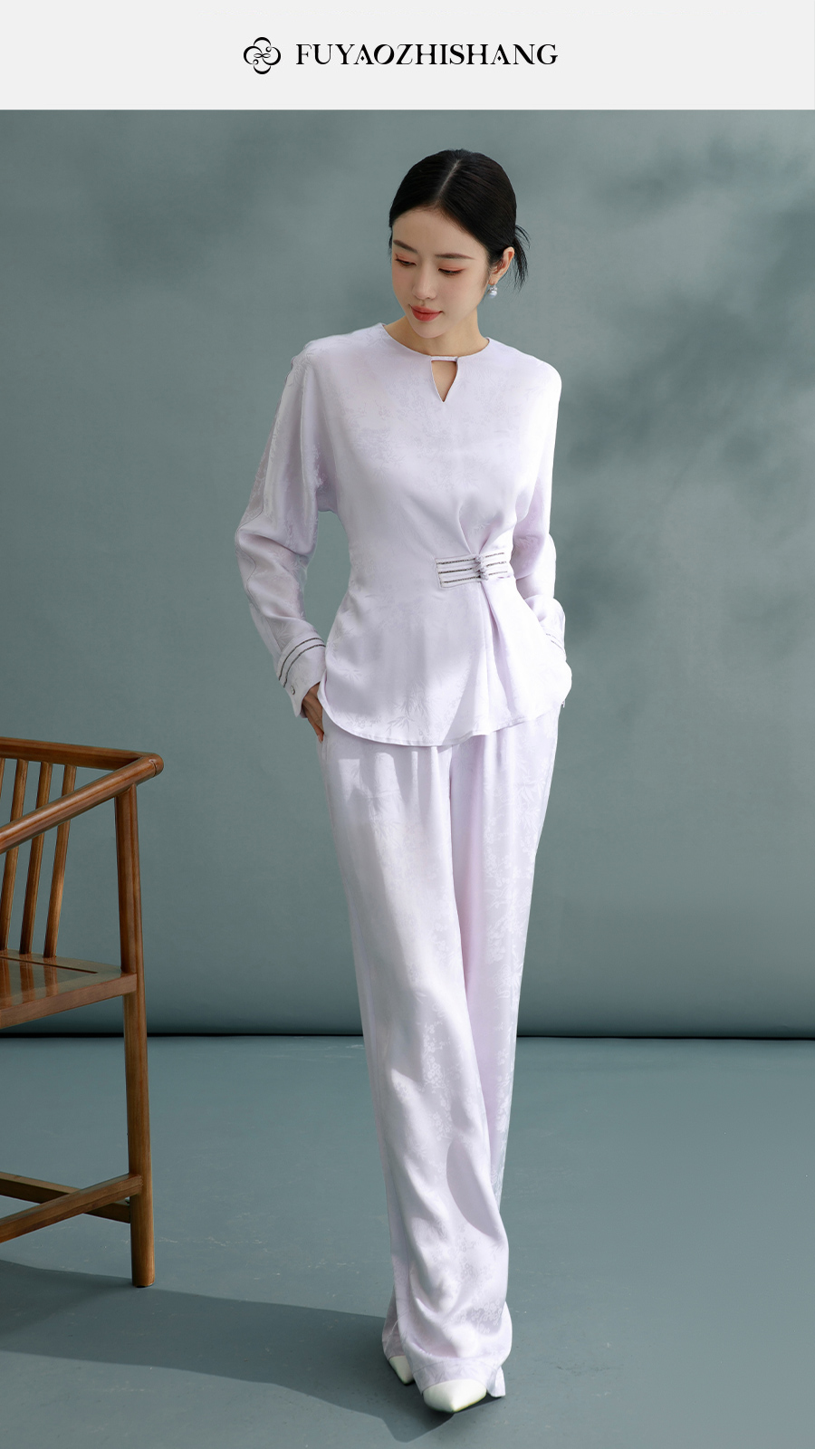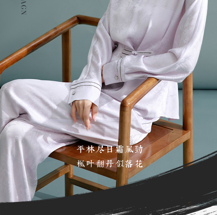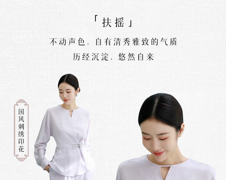 FUYAO扶摇 鎏金盘扣衬衫女新中式提花打缆套装文艺禅意风气质衬衣