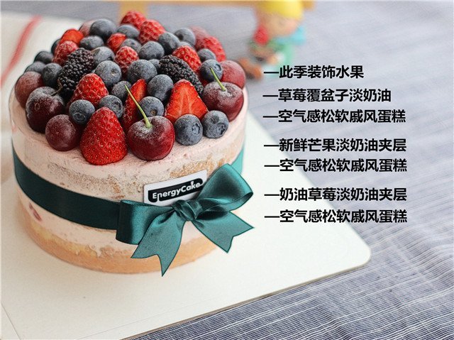 ~温润的三层戚风蛋糕胚,满满的应季水果夹层,草莓覆盆子口味清甜淡奶油~