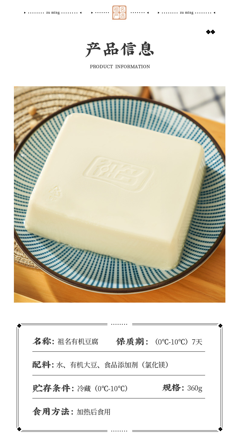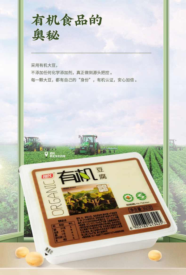 【3天内发货】祖名有机豆腐360g非转基因有机大豆