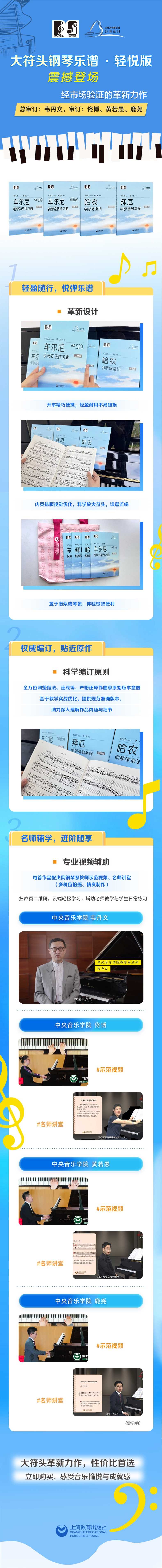 序大符头钢琴乐谱自 2019年面世以来,经过几年间产品的升级、经验的积累以及市场的验证,已形成较为完整的一套教育体系。旗下包含两大核心产品线专注基础训练的;经典系列与拓展演奏曲库的;名曲系列。;经典系列共有20本,包括三大类,即基本功练习和练习曲、复调音乐作品、各种中小型作品和乐曲,基本涵盖了从初级到高级的钢琴学习各阶段。;名曲系列根据曲目类型分为外国钢琴作品、中国钢琴作品、四手联弹钢琴作品、爵士钢琴作品以及当代钢琴作品五大板块。其中所收录的作品多是钢琴学习中的必弹曲目、经典曲目,作品由浅入深,适合钢琴启蒙阶段至八级程度的学生弹奏,并均可与;经典系列配套使用。现在,;经典系列新增;轻悦版乐谱,带来三大实用体验:一、轻盈随行,悦弹乐谱;轻悦版聚焦用户体验,在;经典系列的基础上实施双重革新:对整本乐谱的外形及纸张进行优化,开本更加精巧,纸张质感轻盈并兼顾耐用性,翻阅时不易粘连或破损。无论是置于钢琴谱架还是装入随身琴袋,都能为使用者提供便利舒适的使用体验。内页排版经过视觉优化,符头在经过科学比例放大后仍保持音符间距的舒适比例,使五线谱的阅读自然流畅。二、权威编订,贴近原作;轻悦版对不同类别的乐谱做了全方位更科学、合理、精确的编订。如对指法、连线和表情记号等作调整时,始终遵循两个原则:一是尽可能还原作曲家创作时的原始版本,以准确还原作曲家想要表达的原始意图;二是根据教学经验和演奏的实际情况,在尊重作曲家原始意图的基础上对乐谱进行更规范、准确的编订。以上所做的编订,是为了给学习者提供一个更适宜的版本选择。通过使用规范编订的乐谱,学习者能更好地理解作品的音乐内涵和演奏细节。三、名师辅学,进阶随享;轻悦版中的每首作品均配有由中央音乐学院钢琴系教师精心录制的示范视频,多机位拍摄,可边学边赏。且每本乐谱均配有中央音乐学院钢琴系专家团队录制的精讲视频,能够全视角展示更多作品细节。学习者扫一扫扉页上的二维码,根据提示操作便可在手机上观看配套视频(需另购),这为老师的教学和学习者的日常学习提供了方便可靠的辅助资料。;大符头轻悦版作为;经典系列革新力作,希望能为广大琴童和老师提供更具性价比的选择。我们期待这本乐谱能成为学琴路上的实用工具,也希望习琴者通过严谨规范的学习,感受音乐带来的愉悦与成就感。此次编订工作得到了中央音乐学院钢琴系同仁佟博、黄若愚、鹿尧的鼎力相助。在此表示由衷的感谢!韦丹文2025 年9月于北京